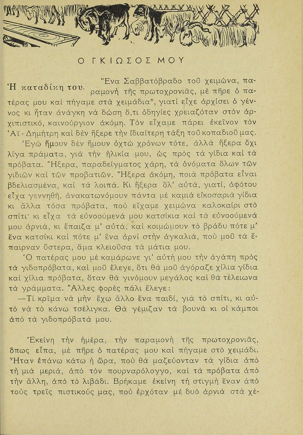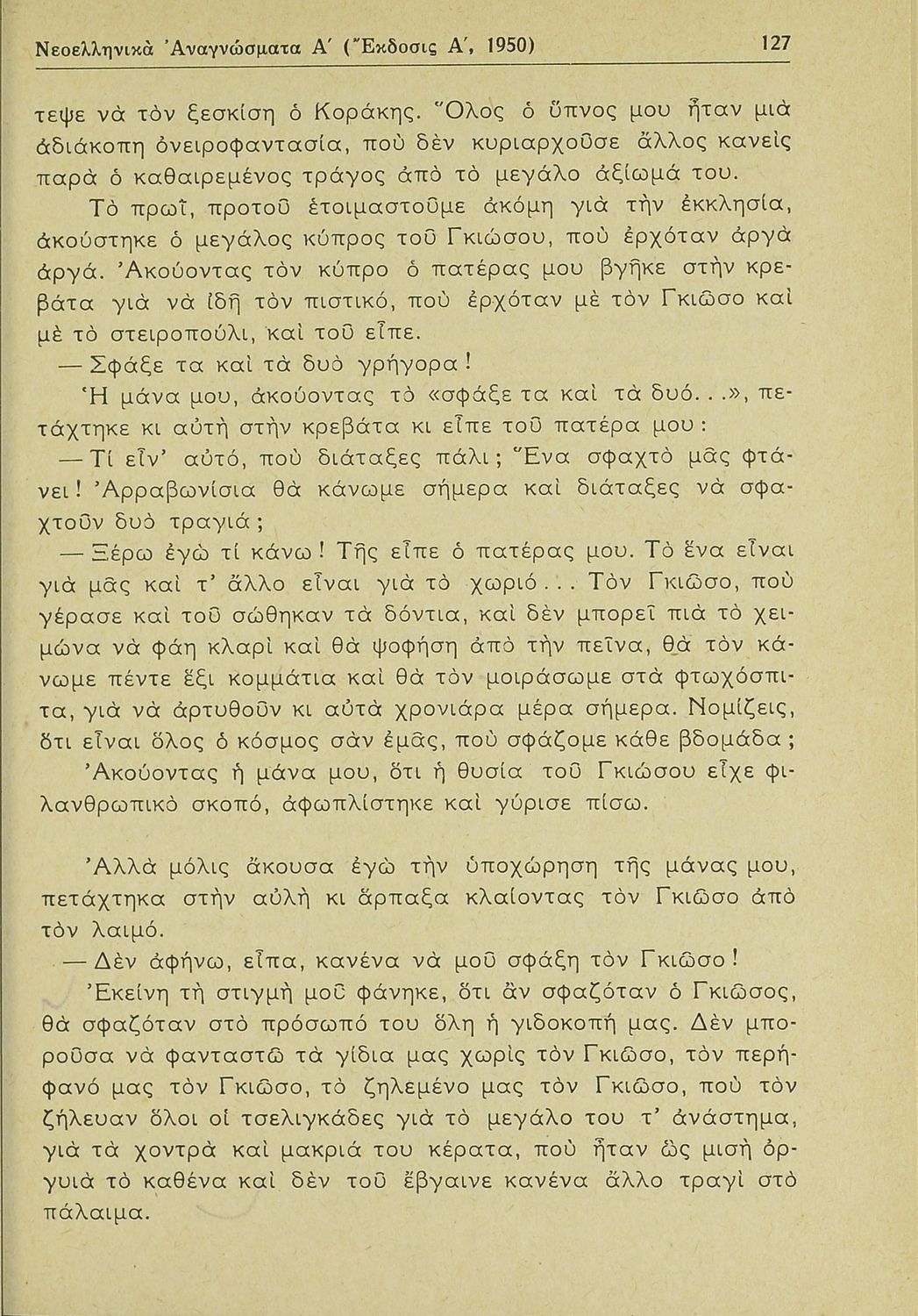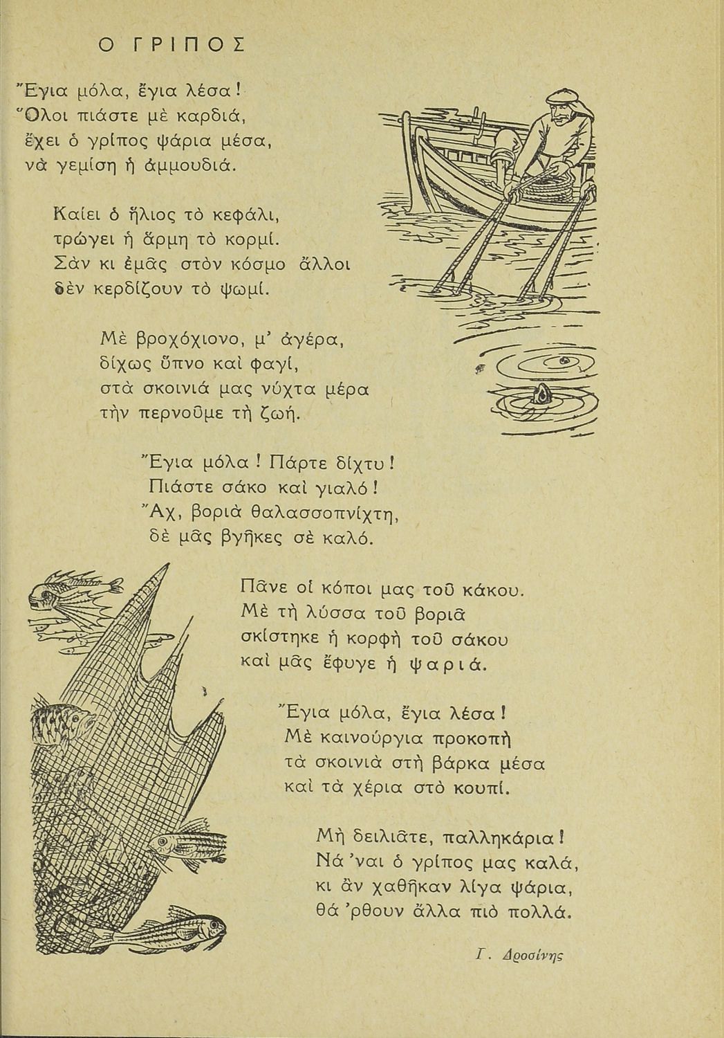 Σχολικό εγχειρίδιο Νέων Ελληνικών Γ΄ Γυμνασίου και Α' Αστικού Σχολείου που περιέχει πεζά και ποιήματα Ελλήνων συγγραφέων εμπνευσμένα από τη θρησκευτική και κοινωνική ζωή, την ελληνική μυθολογία, την αρχαία και