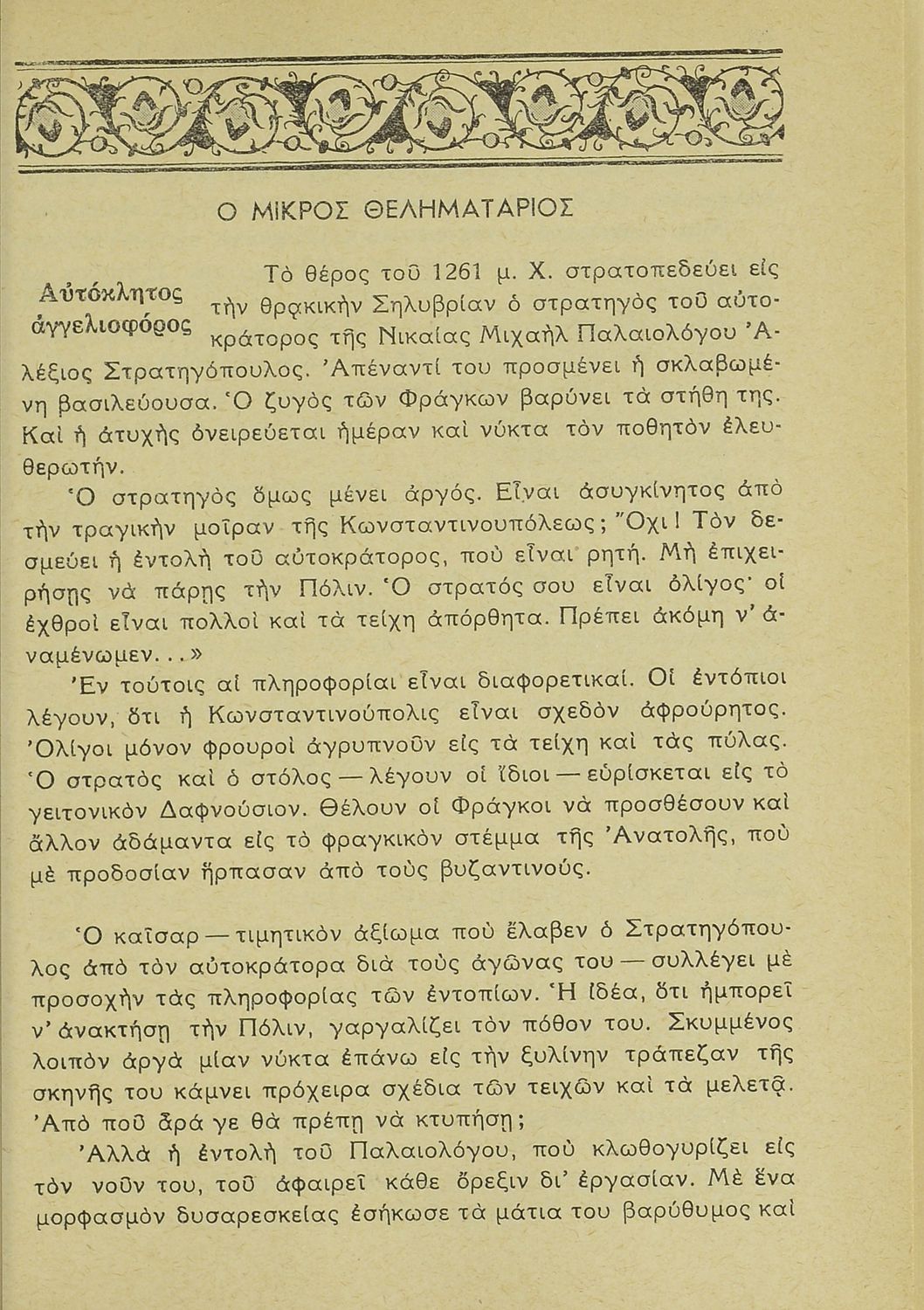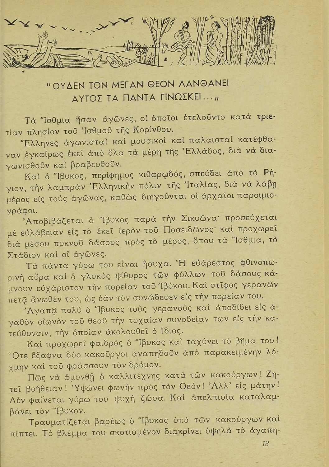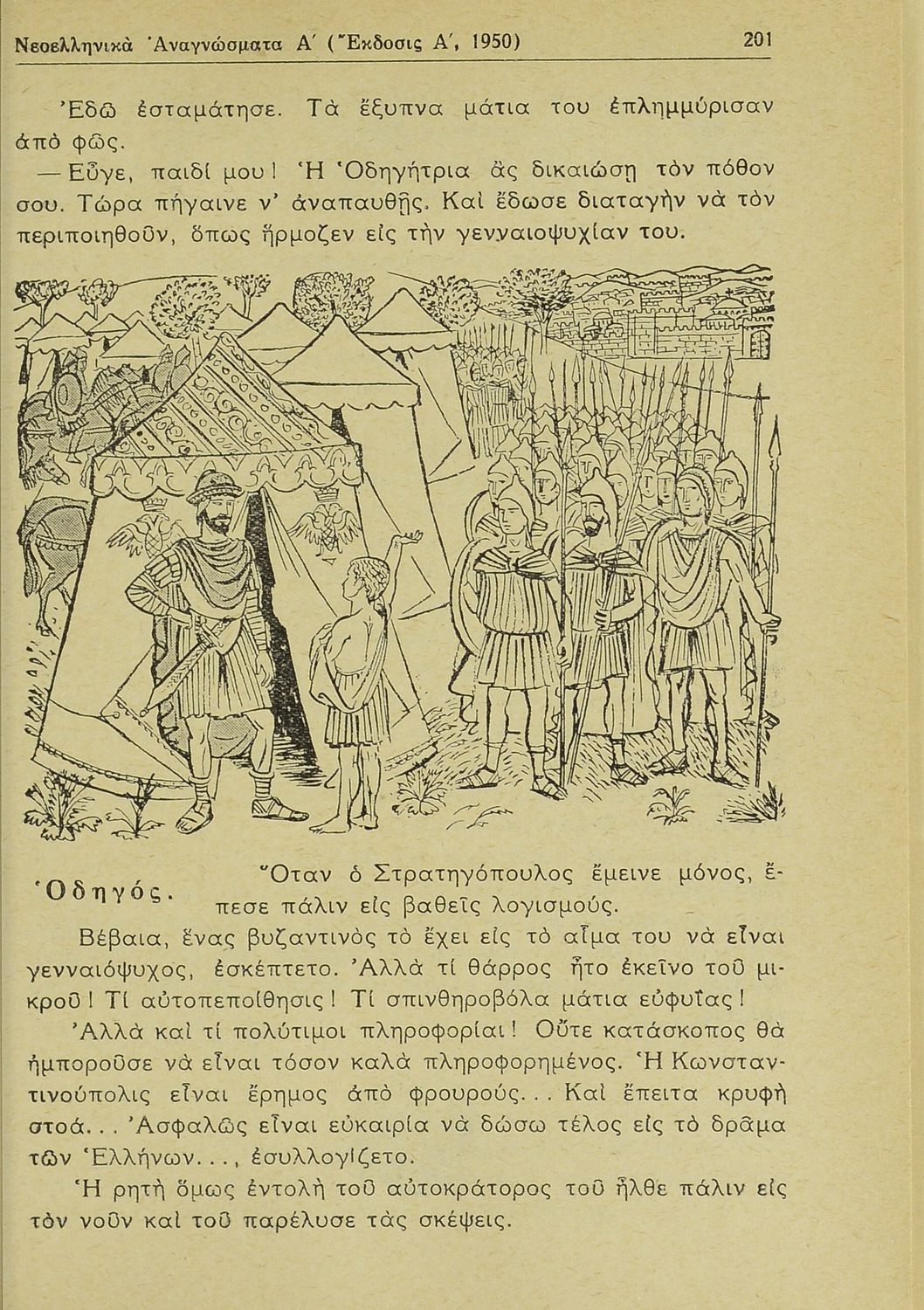 Σχολικό εγχειρίδιο Νέων Ελληνικών Α' Γυμνασίου που περιέχει ποιήματα και πεζά Ελλήνων συγγραφέων εμπνευσμένα από την αρχαία ελληνική ιστορία και μυθολογία, τη βυζαντινή και σύγχρονη ελληνική ιστορία και την καθημερινή ζωή. Περιέχει παράρτημα με βιογραφίες των συγγραφέων και λεξιλόγιο.