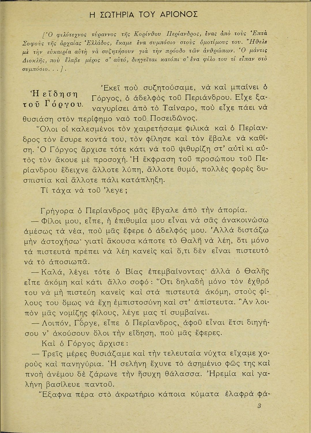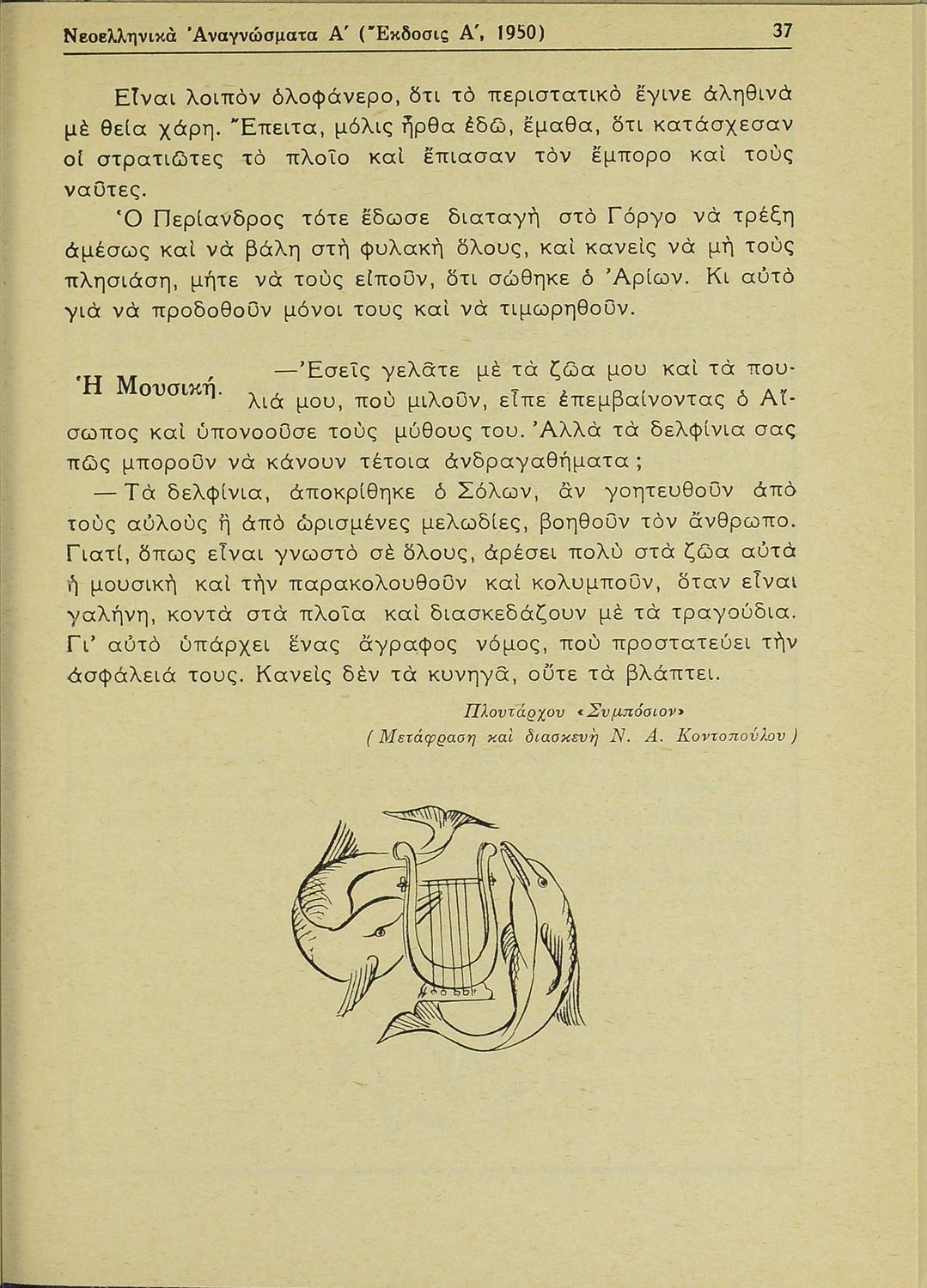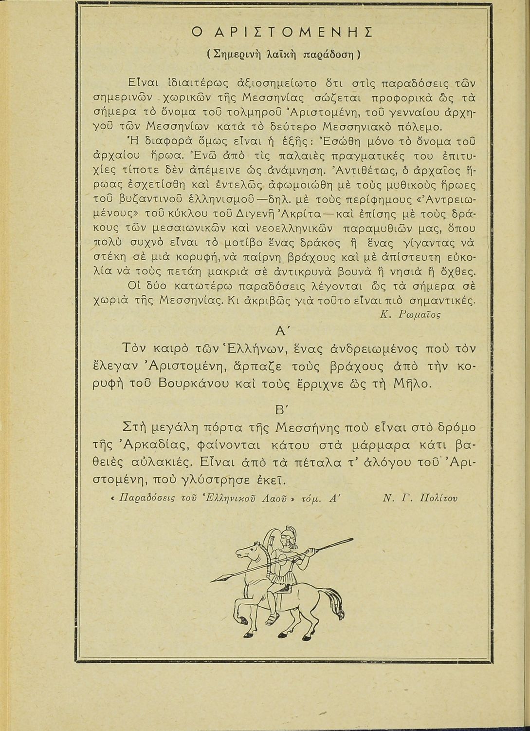 Σχολικό εγχειρίδιο Νέων Ελληνικών Γ΄ Γυμνασίου και Α' Αστικού Σχολείου που περιέχει πεζά και ποιήματα Ελλήνων συγγραφέων εμπνευσμένα από τη θρησκευτική και κοινωνική ζωή, την ελληνική μυθολογία, την αρχαία και