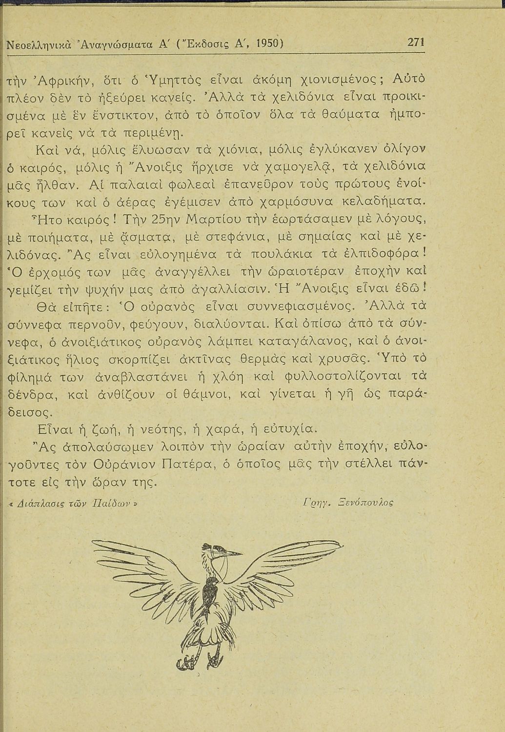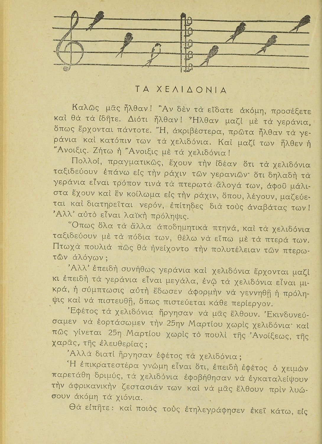 Σχολικό εγχειρίδιο Νέων Ελληνικών Γ΄ Γυμνασίου και Α' Αστικού Σχολείου που περιέχει πεζά και ποιήματα Ελλήνων συγγραφέων εμπνευσμένα από τη θρησκευτική και κοινωνική ζωή, την ελληνική μυθολογία, την αρχαία και