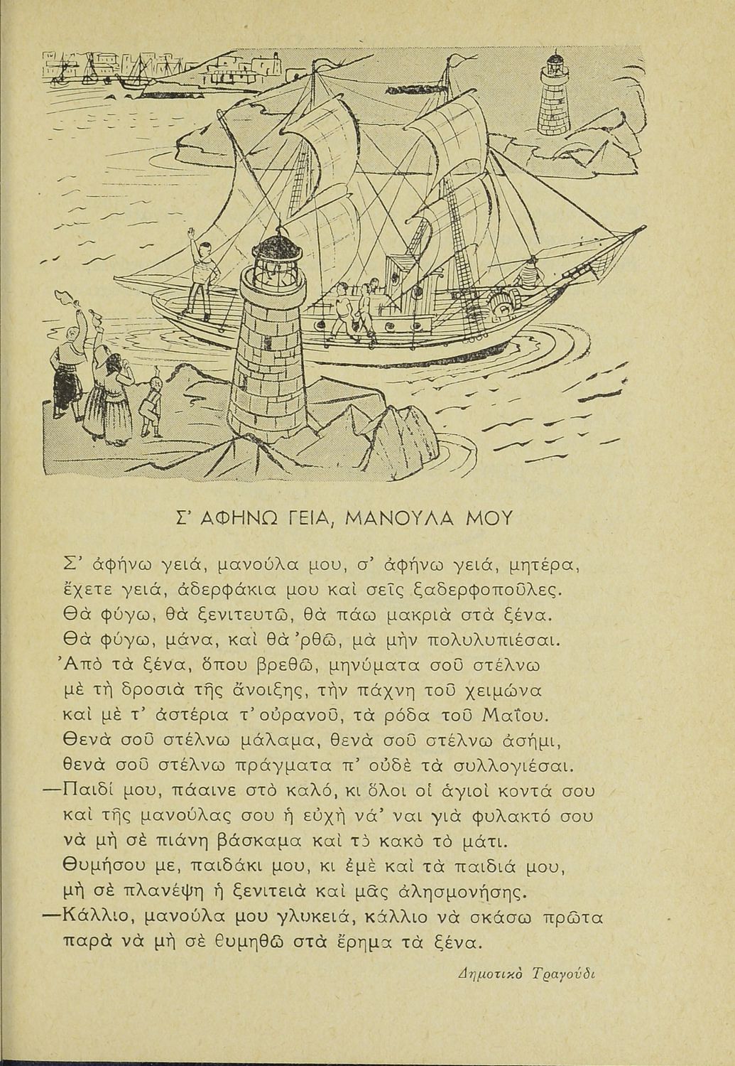 Σχολικό εγχειρίδιο Νέων Ελληνικών Α΄ Γυμνασίου που περιέχει πεζά και ποιήματα Ελλήνων συγγραφέων και δημοτικά τραγούδια εμπνευσμένα από την σύγχρονη ελληνική ιστορία, τη βυζαντινή ιστορία, την οικογενειακή και