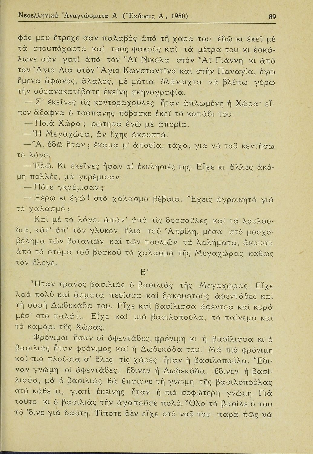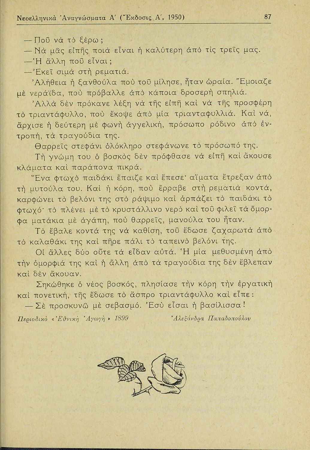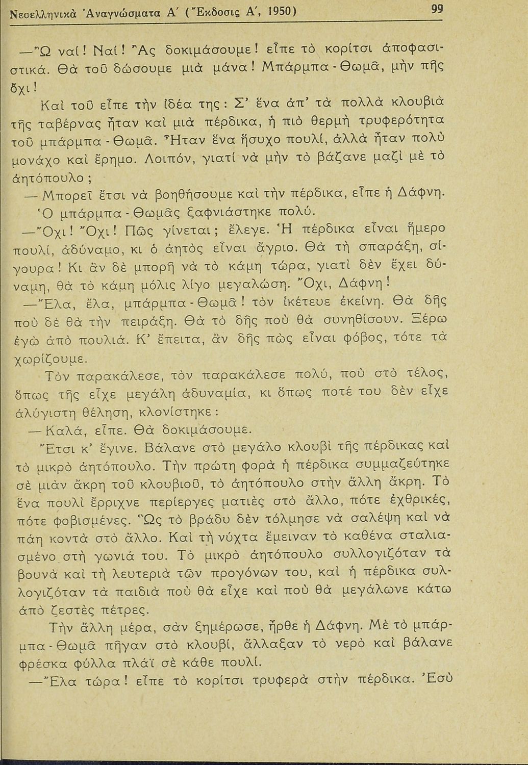 Σχολικό εγχειρίδιο Νέων Ελληνικών Γ΄ Γυμνασίου και Α' Αστικού Σχολείου που περιέχει πεζά και ποιήματα Ελλήνων συγγραφέων εμπνευσμένα από τη θρησκευτική και κοινωνική ζωή, την ελληνική μυθολογία, την αρχαία και
