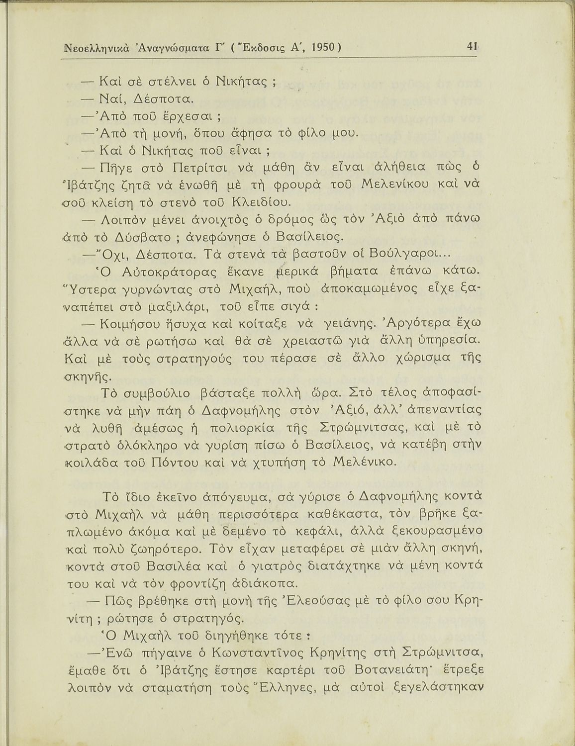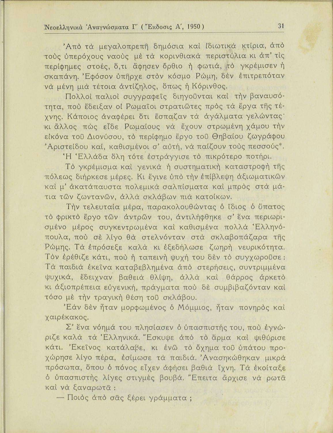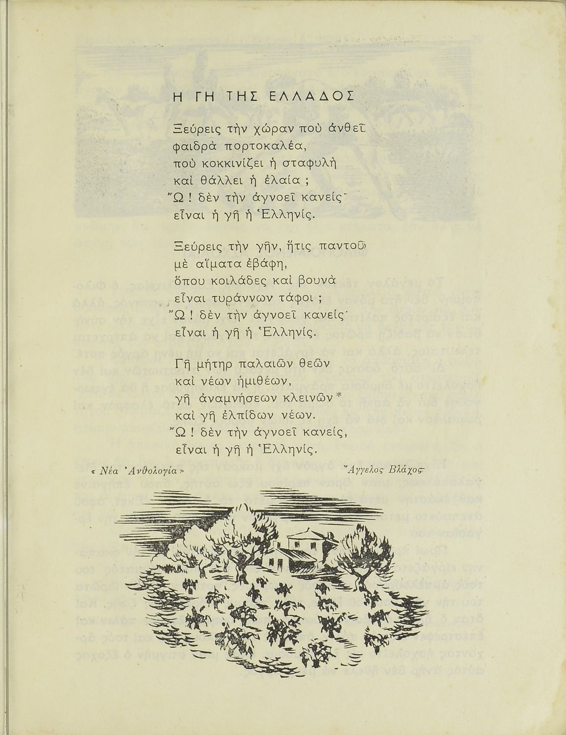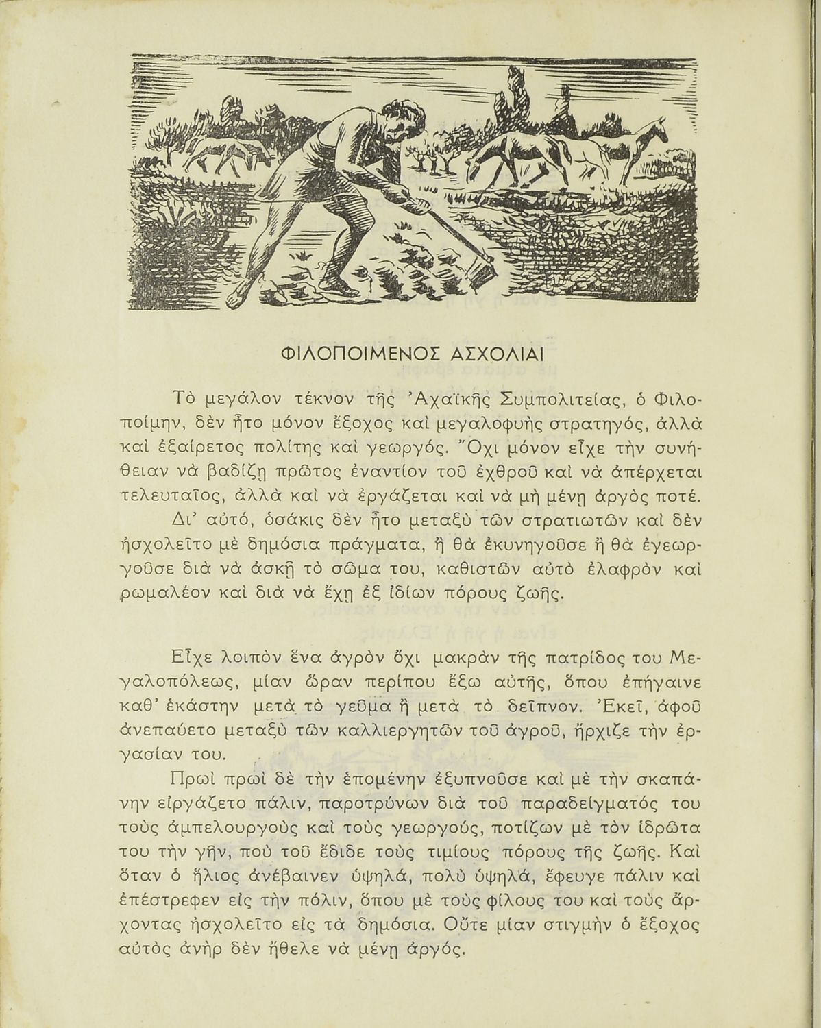 Σχολικό εγχειρίδιο Νέων Ελληνικών Γ΄ Γυμνασίου και Α' Αστικού Σχολείου που περιέχει πεζά και ποιήματα Ελλήνων συγγραφέων εμπνευσμένα από τη θρησκευτική και κοινωνική ζωή, την ελληνική μυθολογία, την αρχαία και