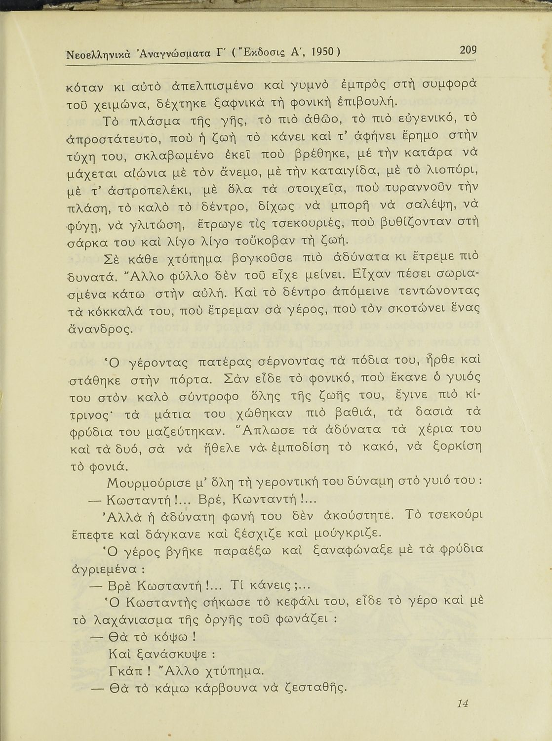 Σχολικό εγχειρίδιο Νέων Ελληνικών Γ΄ Γυμνασίου και Α' Αστικού Σχολείου που περιέχει πεζά και ποιήματα Ελλήνων συγγραφέων εμπνευσμένα από τη θρησκευτική και κοινωνική ζωή, την ελληνική μυθολογία, την αρχαία και