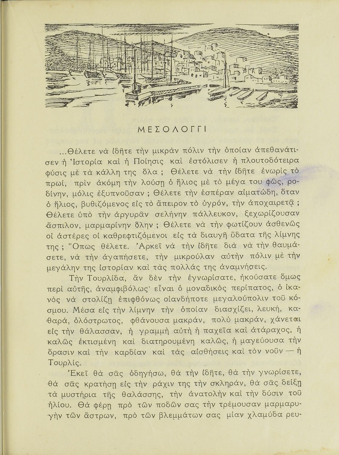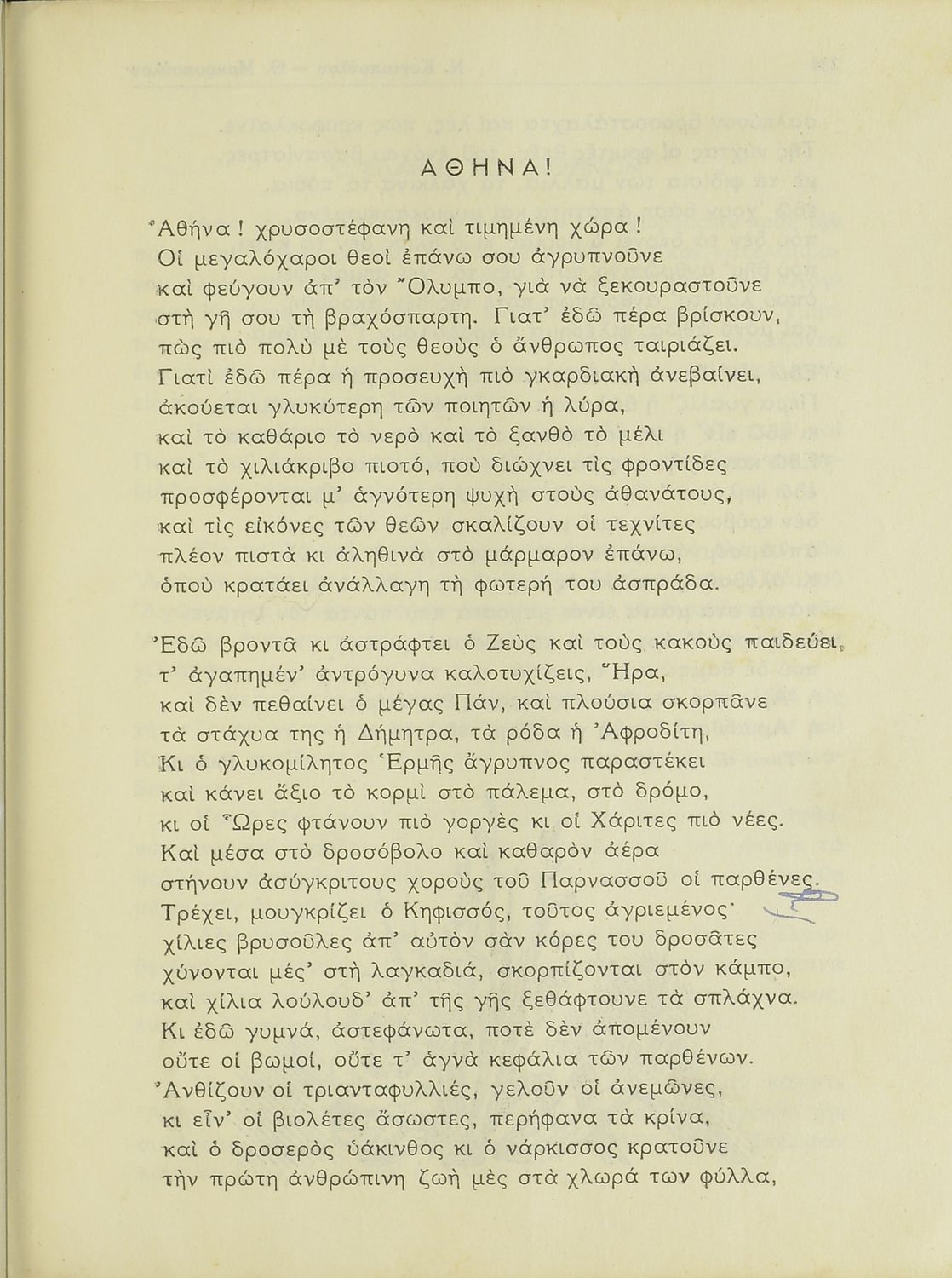 Σχολικό εγχειρίδιο Νέων Ελληνικών Γ΄ Γυμνασίου και Α' Αστικού Σχολείου που περιέχει πεζά και ποιήματα Ελλήνων συγγραφέων εμπνευσμένα από τη θρησκευτική και κοινωνική ζωή, την ελληνική μυθολογία, την αρχαία και