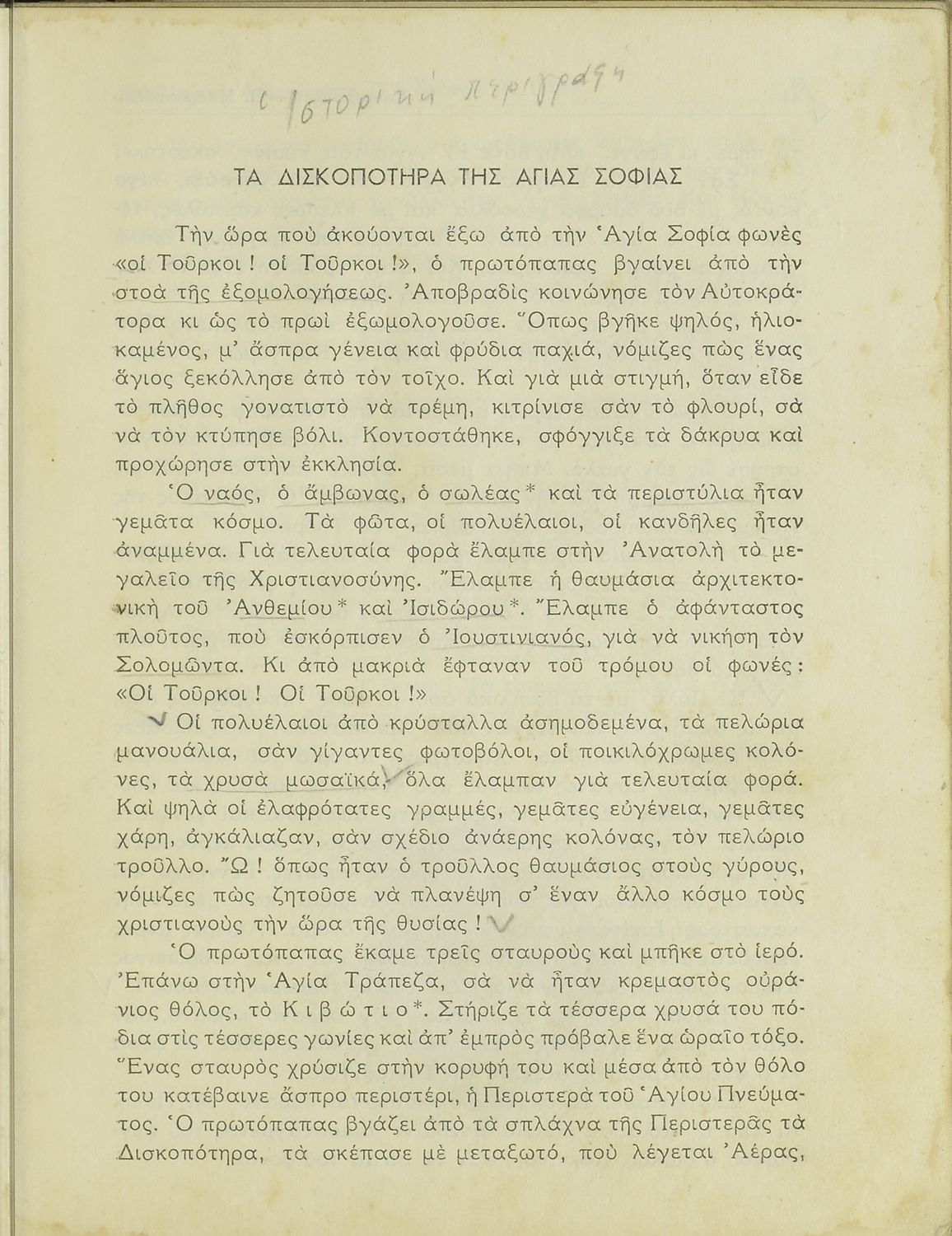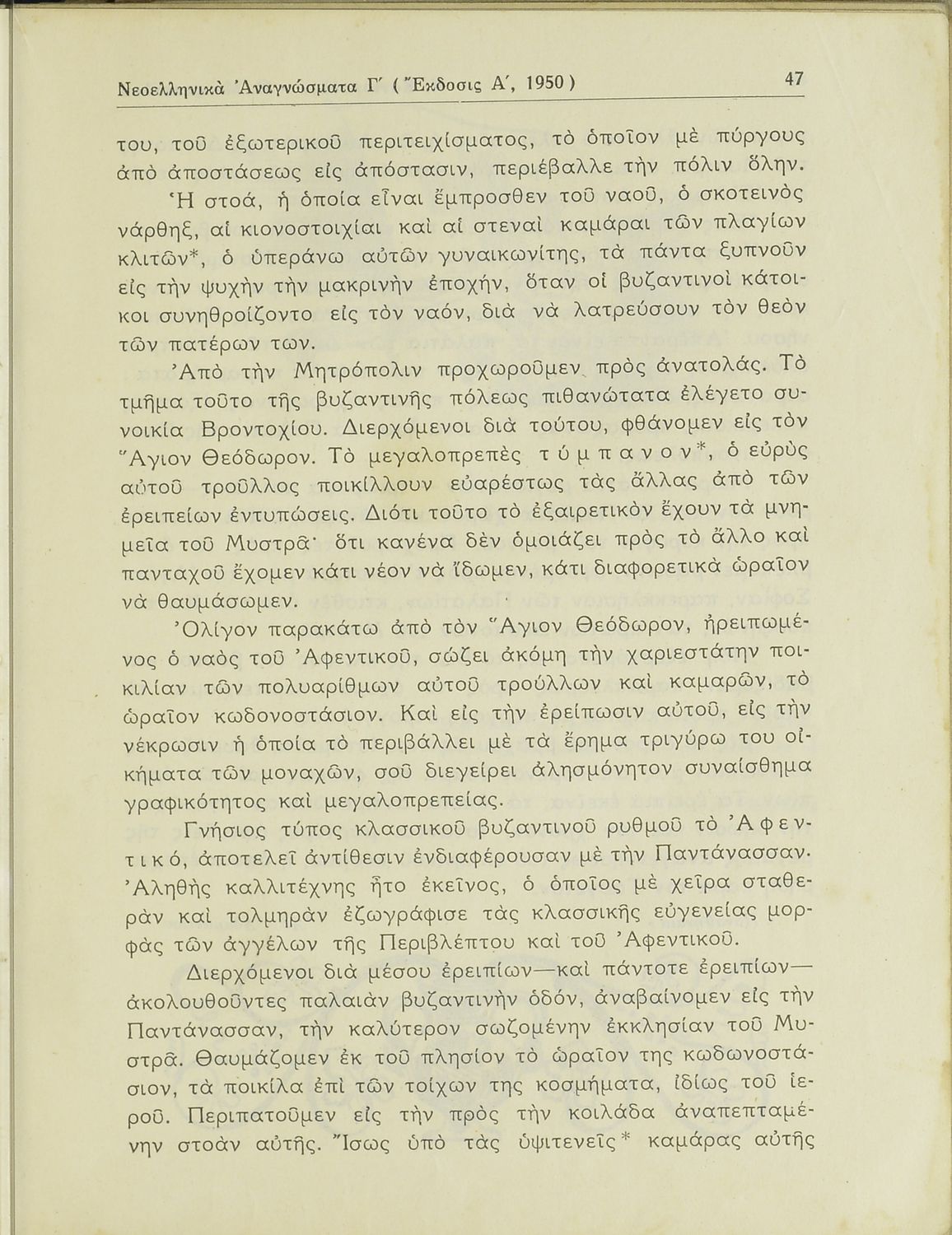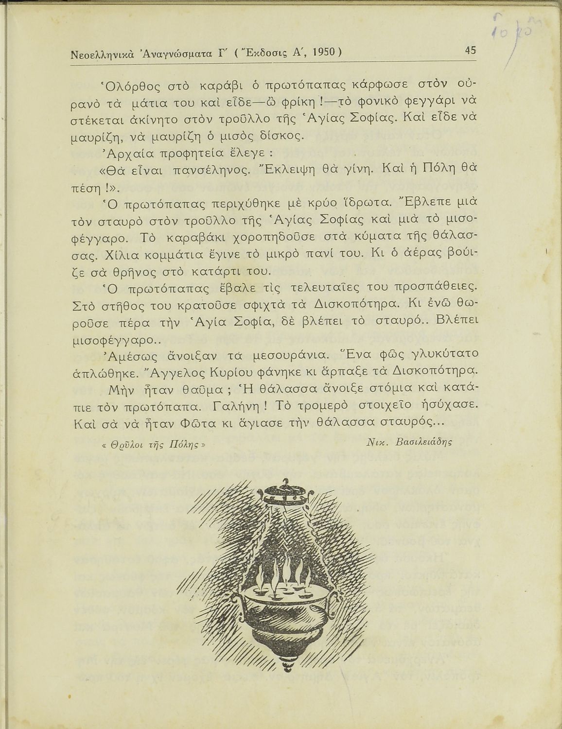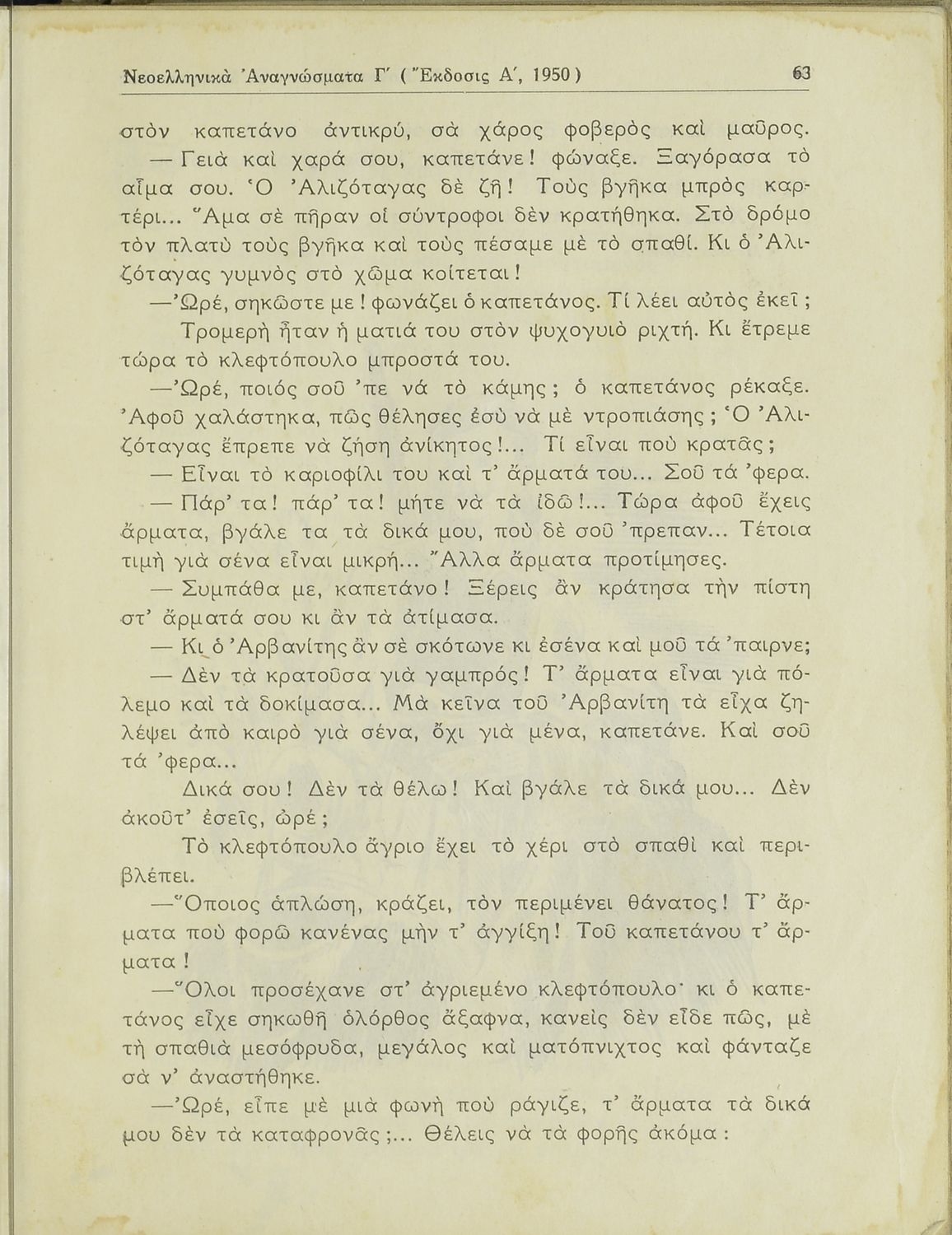 Σχολικό εγχειρίδιο Νέων Ελληνικών Γ΄ Γυμνασίου και Α' Αστικού Σχολείου που περιέχει πεζά και ποιήματα Ελλήνων συγγραφέων εμπνευσμένα από τη θρησκευτική και κοινωνική ζωή, την ελληνική μυθολογία, την αρχαία και