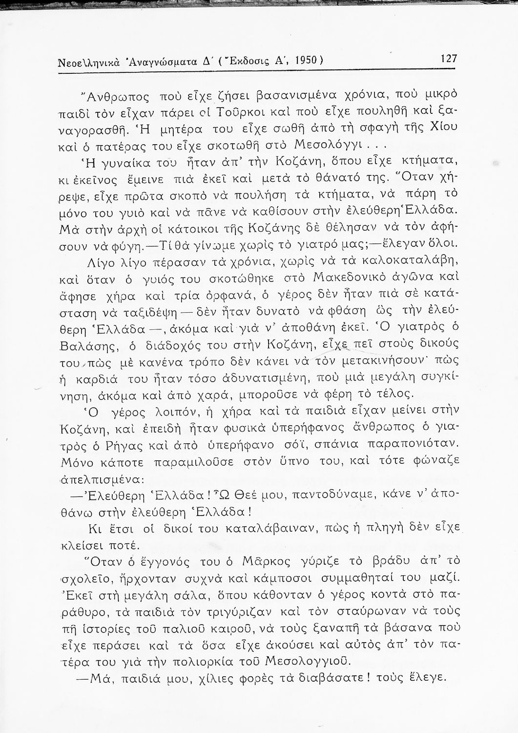 Τίτλος: Νεοελληνικά αναγνώσματα διά την 4ην τάξιν των Γυμνασίων