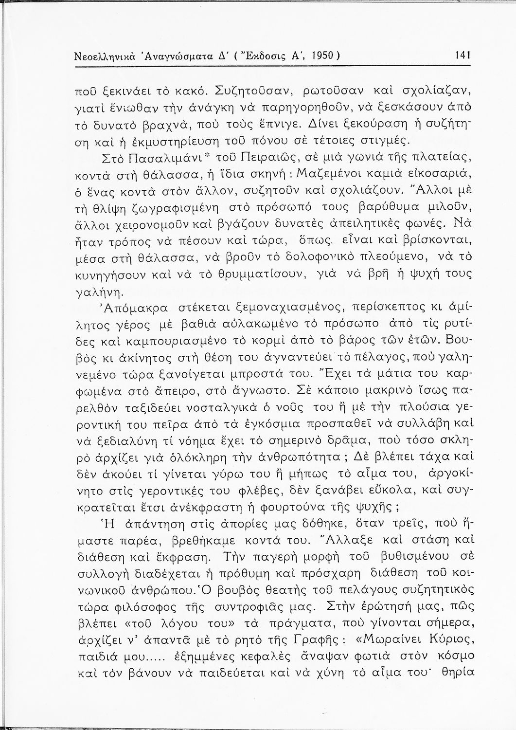 Σχολικό εγχειρίδιο Νέων Ελληνικών Δ΄ Γυμνασίου και Β΄ Αστικού Σχολείου που περιέχει πεζά και ποιήματα Ελλήνων συγγραφέων εμπνευσμένα από τη θρησκευτική και κοινωνική ζωή, την ελληνική μυθολογία, την αρχαία και
