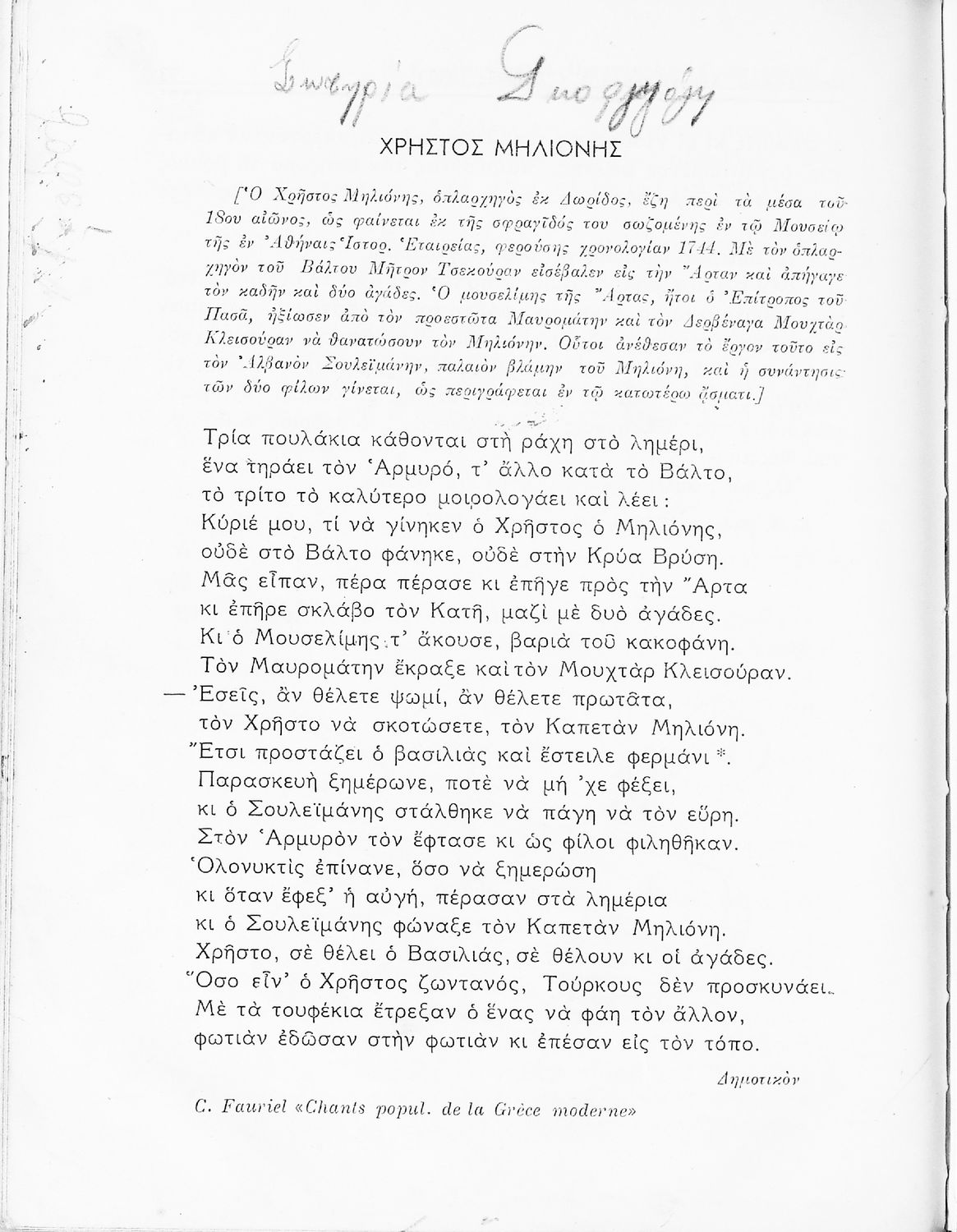 Σχολικό εγχειρίδιο Νέων Ελληνικών Γ΄ Γυμνασίου και Α' Αστικού Σχολείου που περιέχει πεζά και ποιήματα Ελλήνων συγγραφέων εμπνευσμένα από τη θρησκευτική και κοινωνική ζωή, την ελληνική μυθολογία, την αρχαία και