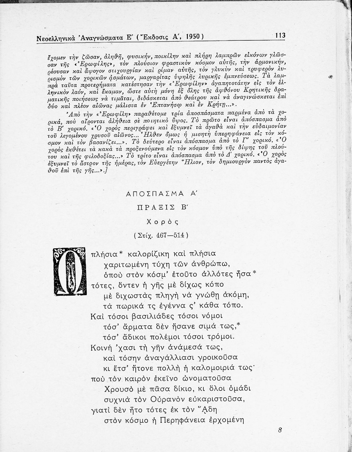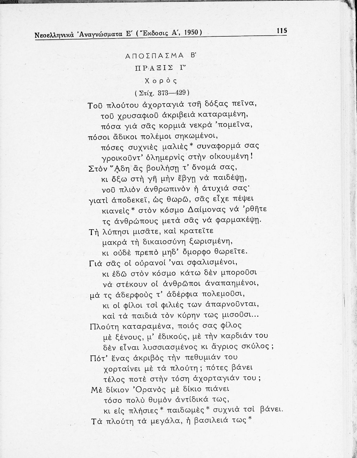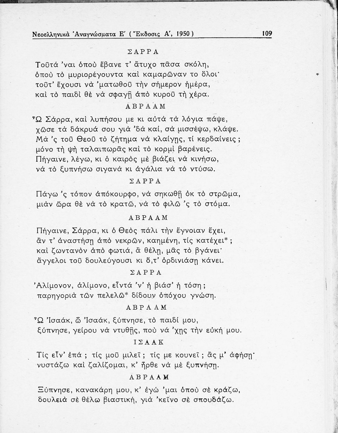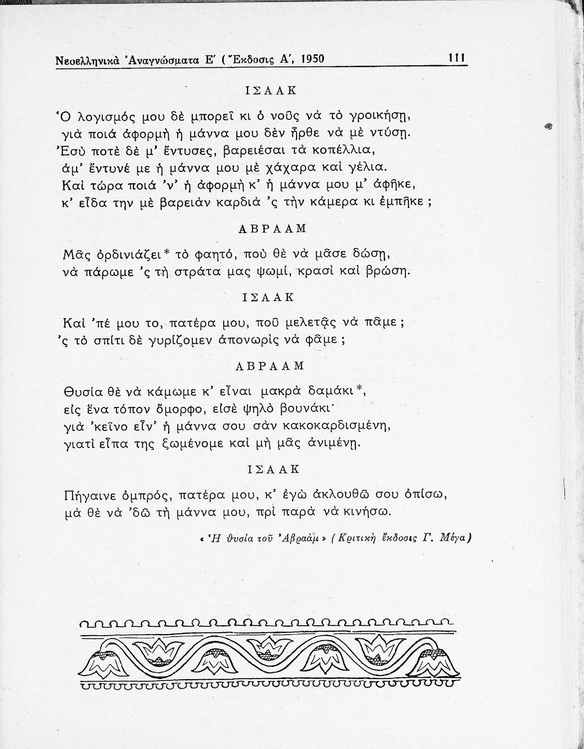 Σχολικό εγχειρίδιο Νέων Ελληνικών Ε΄ Γυμνασίου που περιέχει πεζά και ποιήματα συγγραφέων της βυζαντινής και μεταβυζαντινής περιόδου πατριωτικού και θρησκευτικού περιεχομένου. Περιλαμβάνει και πεζά και ποιήματα