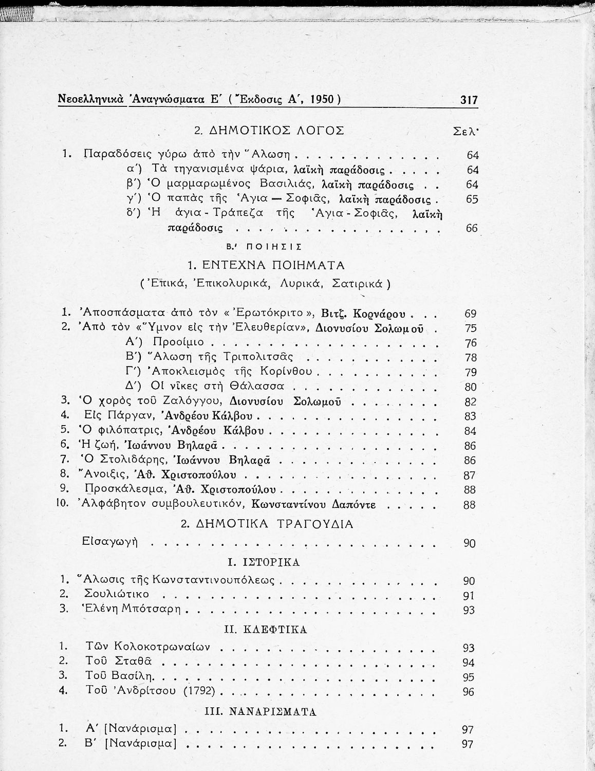Σχολικό εγχειρίδιο Νέων Ελληνικών Ε΄ Γυμνασίου που περιέχει πεζά και ποιήματα συγγραφέων της βυζαντινής και μεταβυζαντινής περιόδου πατριωτικού και θρησκευτικού περιεχομένου. Περιλαμβάνει και πεζά και ποιήματα