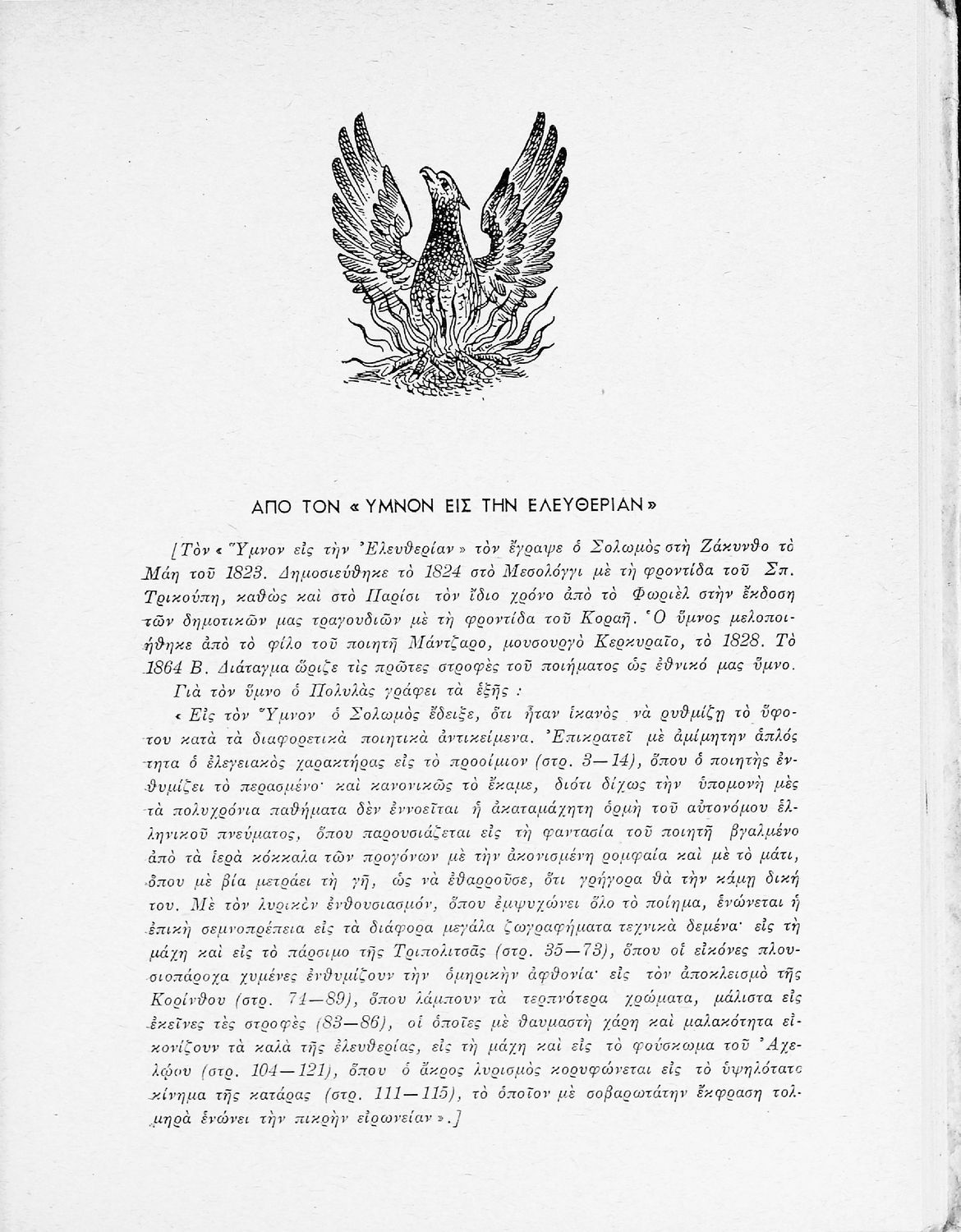 Σχολικό εγχειρίδιο Νέων Ελληνικών Ε΄ Γυμνασίου που περιέχει πεζά και ποιήματα Ελλήνων και ξένων συγγραφέων εμπνευσμένα από την αρχαία και σύγχρονη ελληνική ιστορία, τη βυζαντινή ιστορία, τη θρησκευτική ...