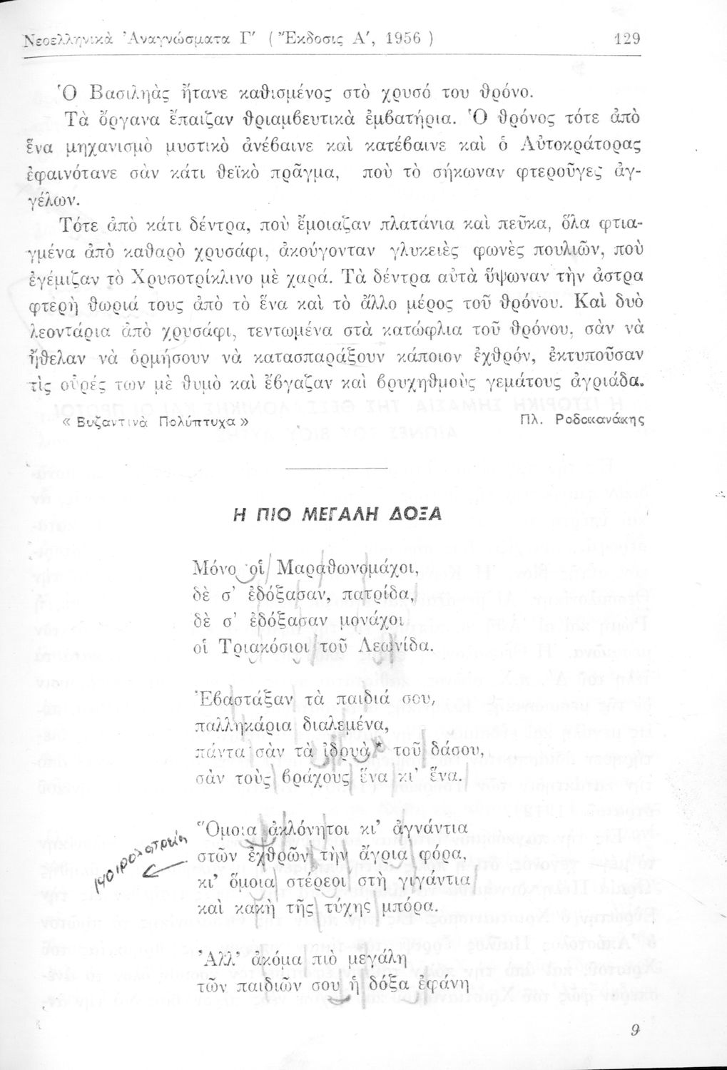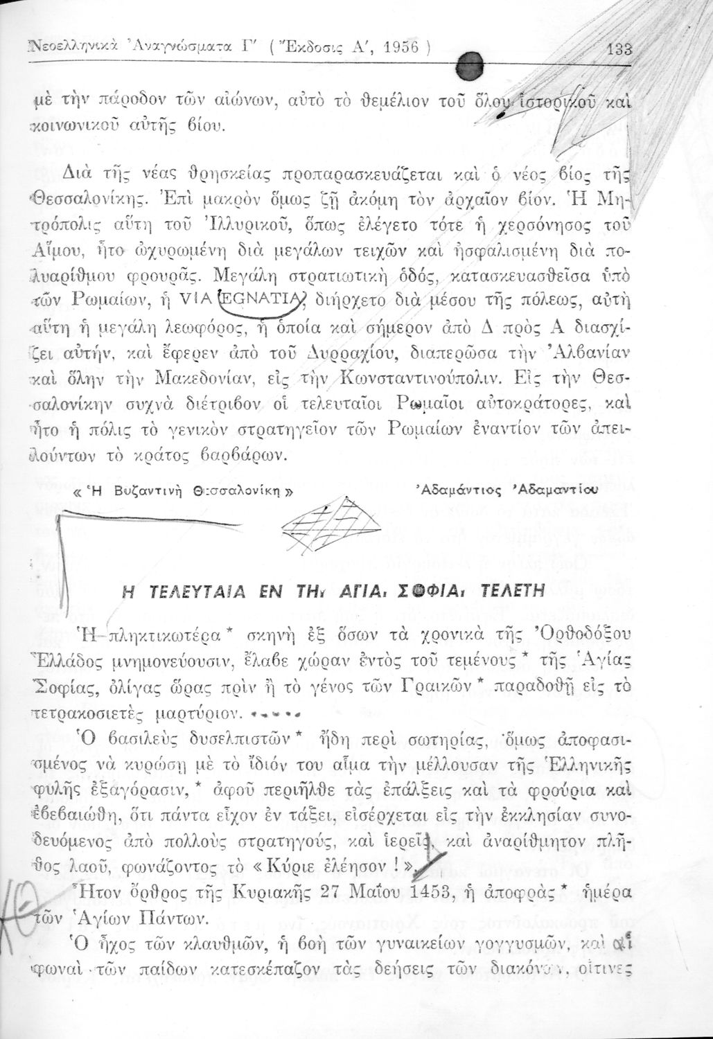 Σχολικό εγχειρίδιο Νέων Ελληνικών Γ΄ Γυμνασίου και Α' Αστικού Σχολείου που περιέχει πεζά και ποιήματα Ελλήνων συγγραφέων εμπνευσμένα από τη θρησκευτική και κοινωνική ζωή, την ελληνική μυθολογία, την αρχαία και
