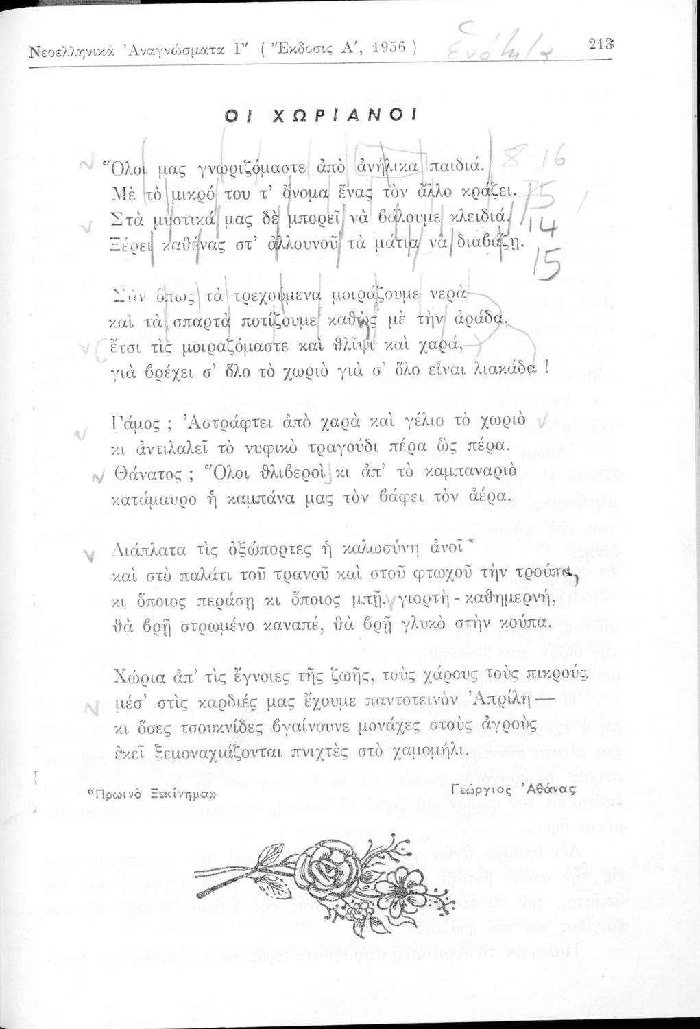 Σχολικό εγχειρίδιο Νέων Ελληνικών Γ΄ Γυμνασίου που περιέχει ποιήματα και πεζά Ελλήνων συγγραφέων εμπνευσμένα από τη θρησκευτική, οικογενειακή και κοινωνική ζωή, την σύγχρονή ελληνική ιστορία και την ελληνική ...