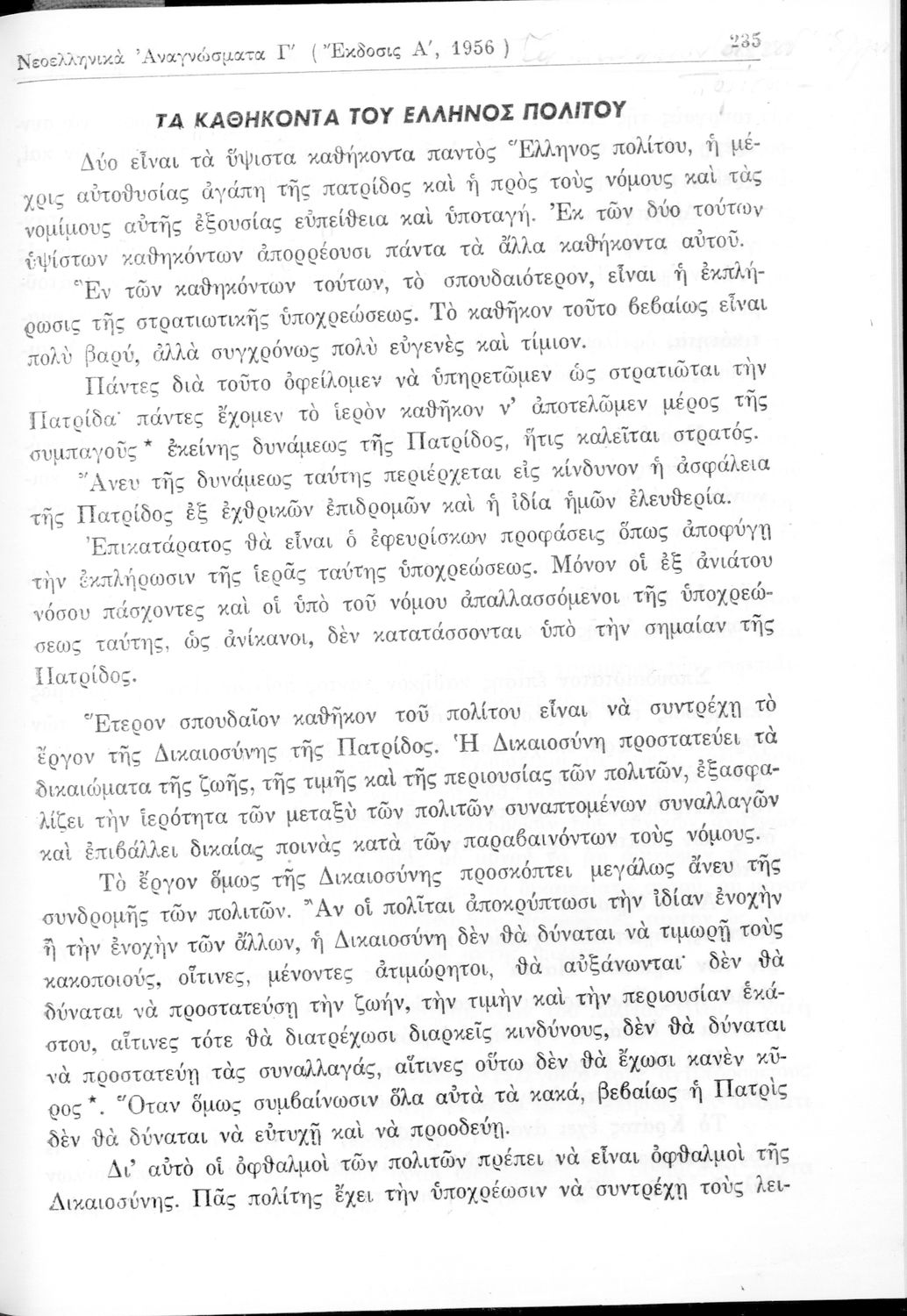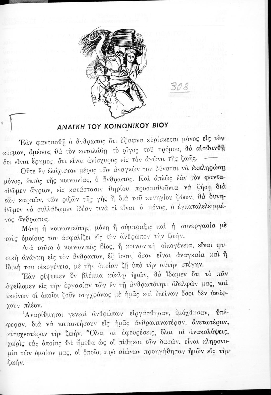 Σχολικό εγχειρίδιο Νέων Ελληνικών Γ΄ Γυμνασίου και Α' Αστικού Σχολείου που περιέχει πεζά και ποιήματα Ελλήνων συγγραφέων εμπνευσμένα από τη θρησκευτική και κοινωνική ζωή, την ελληνική μυθολογία, την αρχαία και