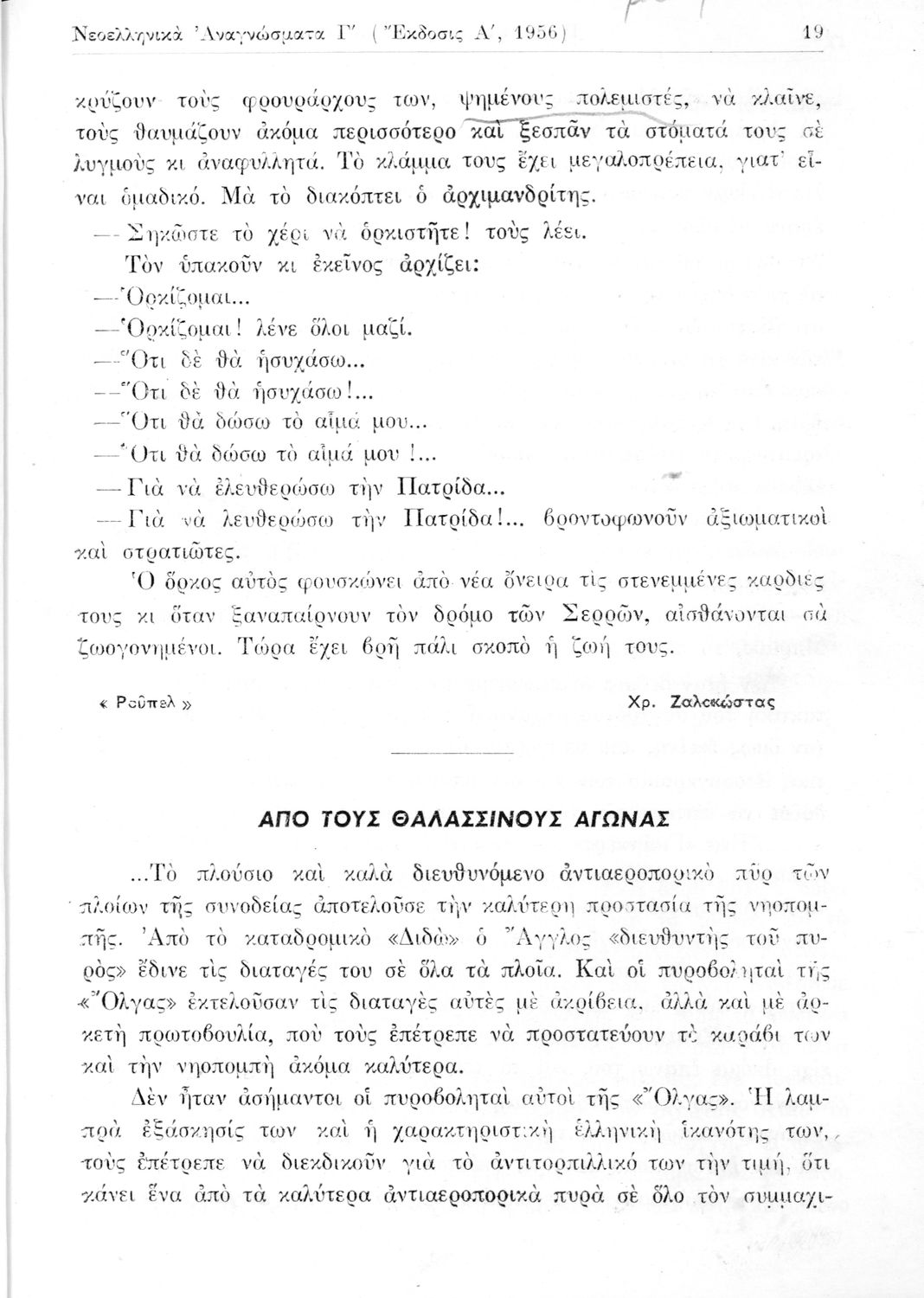 Σχολικό εγχειρίδιο Νέων Ελληνικών Γ΄ Γυμνασίου και Α' Αστικού Σχολείου που περιέχει πεζά και ποιήματα Ελλήνων συγγραφέων εμπνευσμένα από τη θρησκευτική και κοινωνική ζωή, την ελληνική μυθολογία, την αρχαία και
