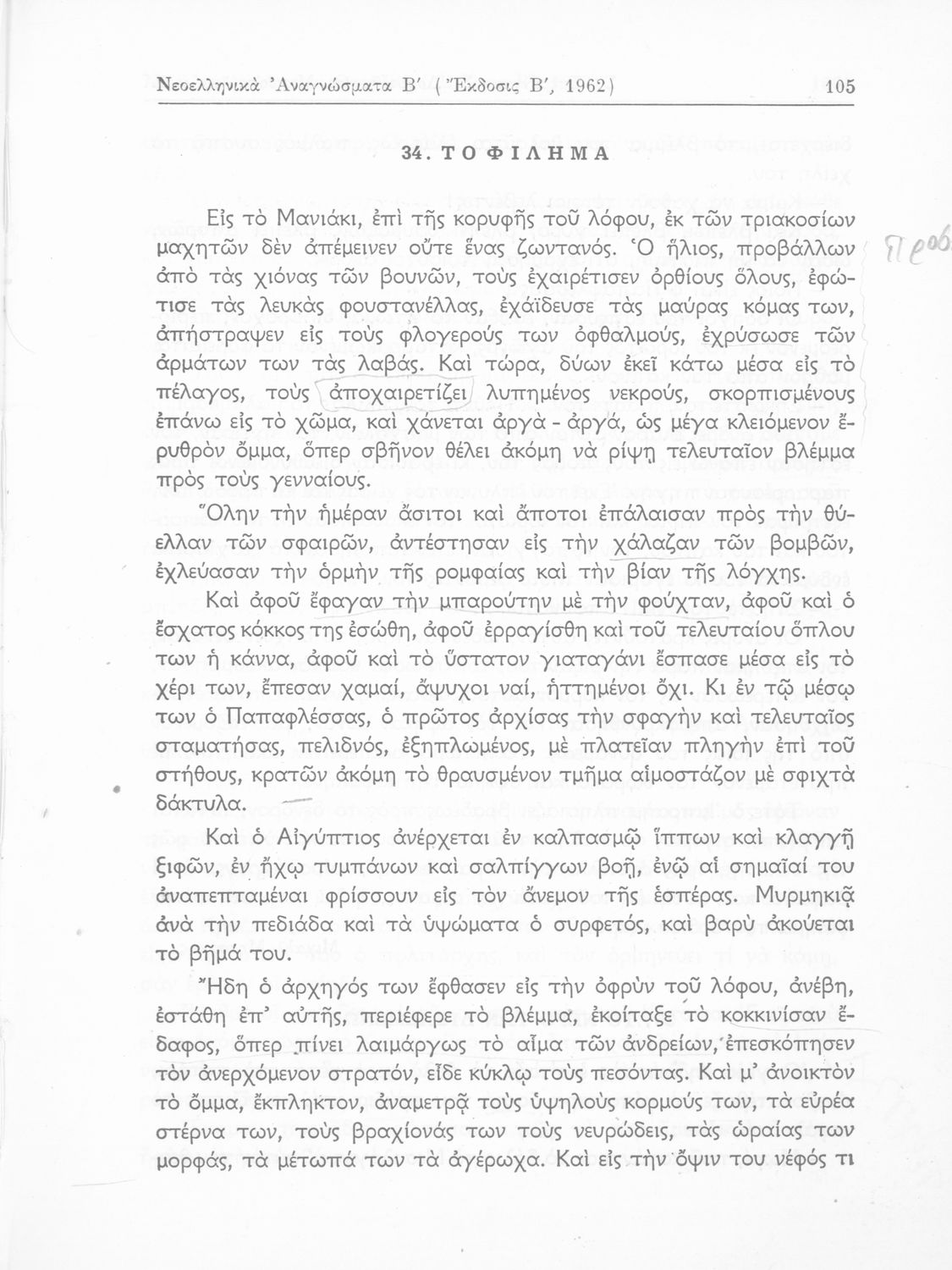 Σχολικό εγχειρίδιο Νέων Ελληνικών Δ΄ Γυμνασίου και Β΄ Αστικού Σχολείου που περιέχει πεζά και ποιήματα Ελλήνων συγγραφέων εμπνευσμένα από τη θρησκευτική και κοινωνική ζωή, την ελληνική μυθολογία, την αρχαία και