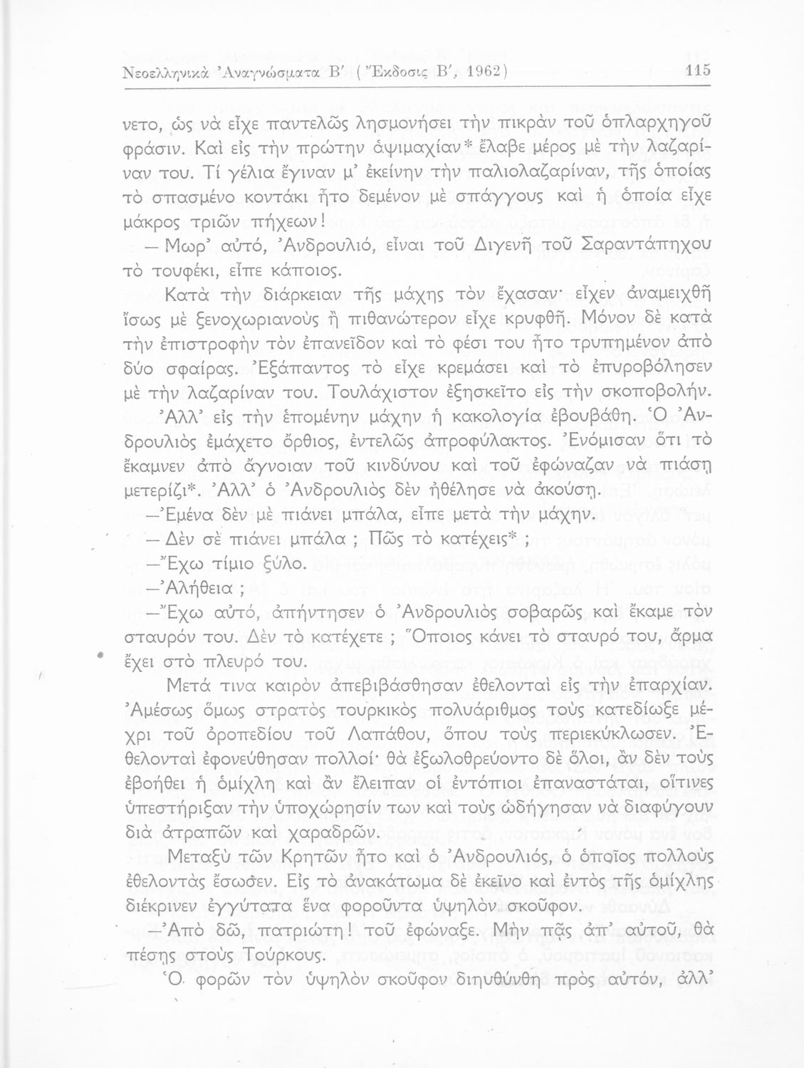 Σχολικό εγχειρίδιο Νέων Ελληνικών Β΄ Εξατάξιου Γυμνασίου που περιλαμβάνει ποιήματα και πεζά Ελλήνων συγγραφέων και δημοτικά τραγούδια εμπνευσμένα από την σύγχρονη ελληνική ιστορία, τη βυζαντινή ιστορία, την ...