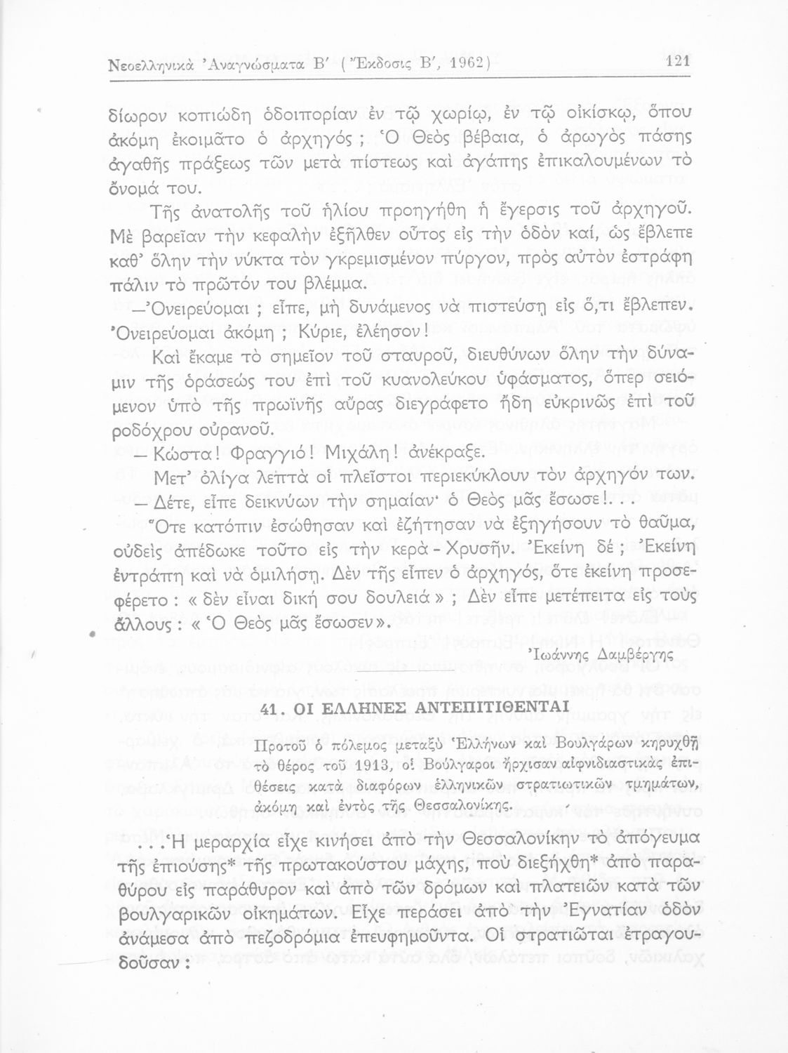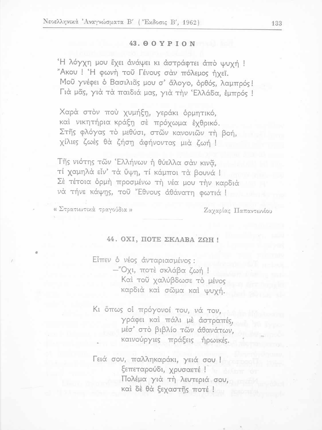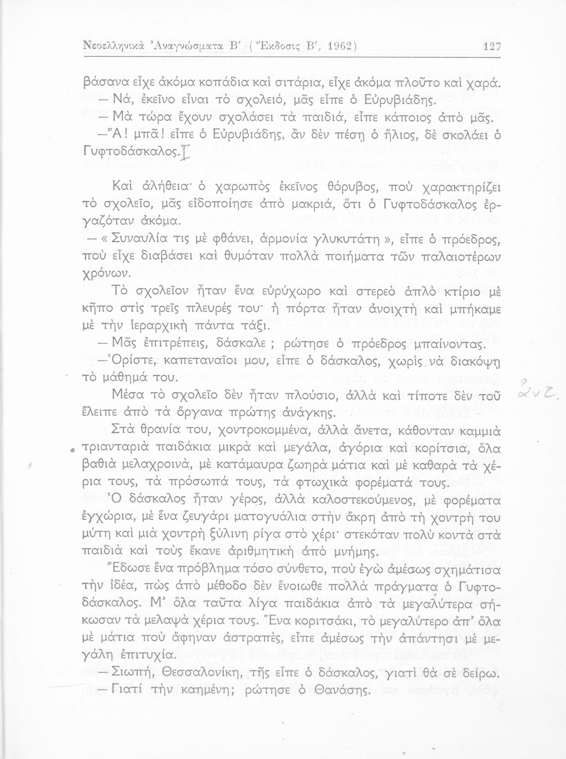 Σχολικό εγχειρίδιο Νέων Ελληνικών Δ΄ Γυμνασίου και Β΄ Αστικού Σχολείου που περιέχει πεζά και ποιήματα Ελλήνων συγγραφέων εμπνευσμένα από τη θρησκευτική και κοινωνική ζωή, την ελληνική μυθολογία, την αρχαία και