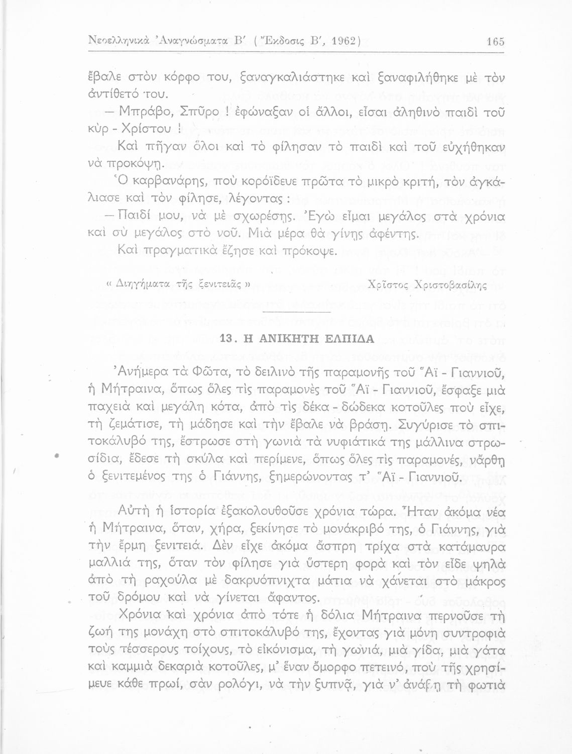 Σχολικό εγχειρίδιο Νέων Ελληνικών Β΄ Γυμνασίου που περιλαμβάνει πεζά και ποιήματα Ελλήνων συγγραφέων εμπνευσμένα από την σύγχρονη ελληνική ιστορία, τη θρησκευτική παράδοση, την οικογενειακή ζωή, και την ...