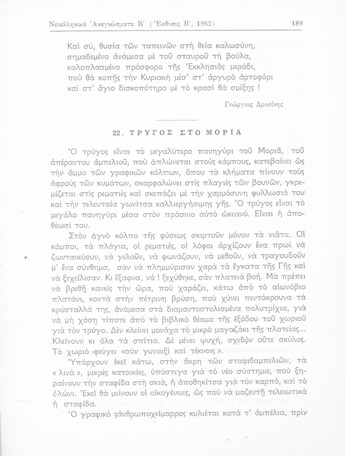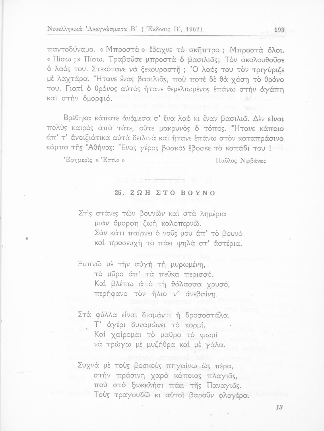Σχολικό εγχειρίδιο Νέων Ελληνικών Β' Γυμνασίου που περιέχει ποιήματα και πεζά Ελλήνων συγγραφέων εμπνευσμένα από τη θρησκευτική, εθνική, οικογενειακή και κοινωνική ζωή και την ελληνική φύση. Περιέχει παράρτημα