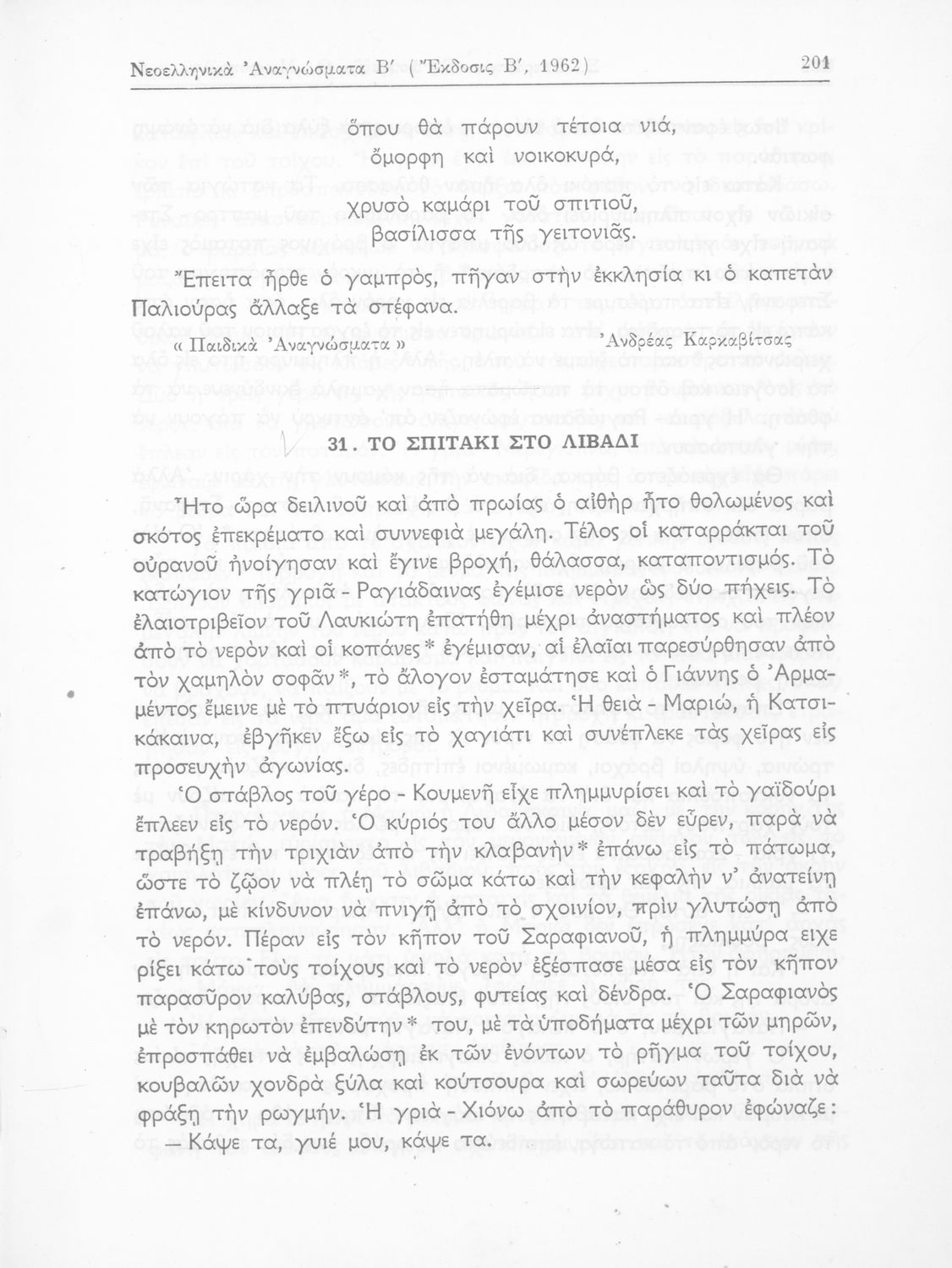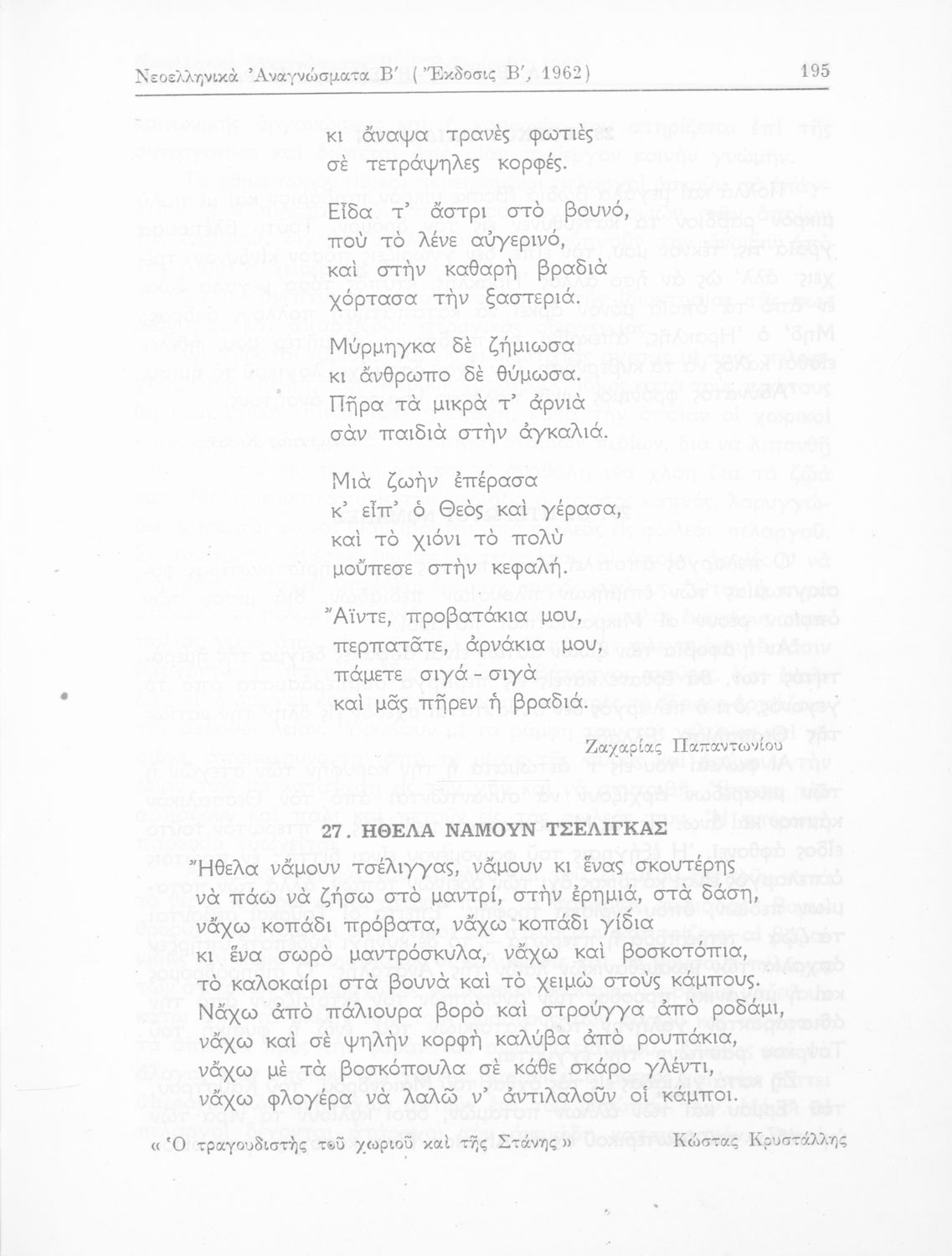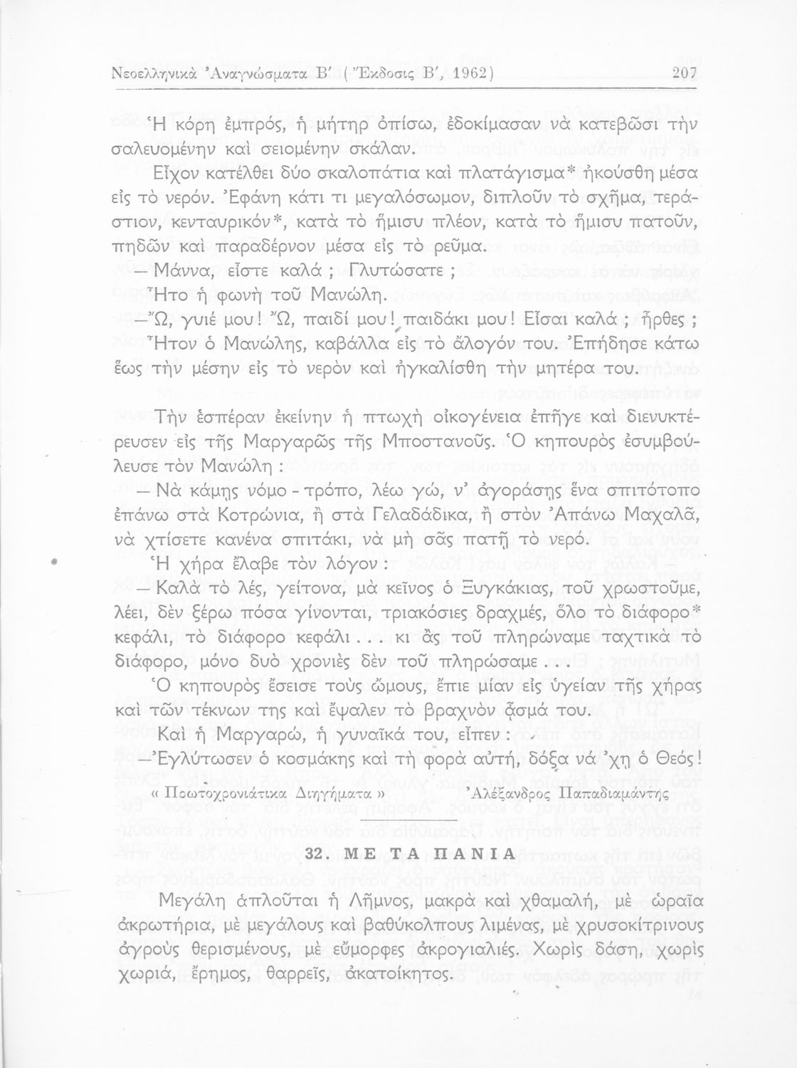 Σχολικό εγχειρίδιο Νέων Ελληνικών Δ΄ Γυμνασίου και Β΄ Αστικού Σχολείου που περιέχει πεζά και ποιήματα Ελλήνων συγγραφέων εμπνευσμένα από τη θρησκευτική και κοινωνική ζωή, την ελληνική μυθολογία, την αρχαία και