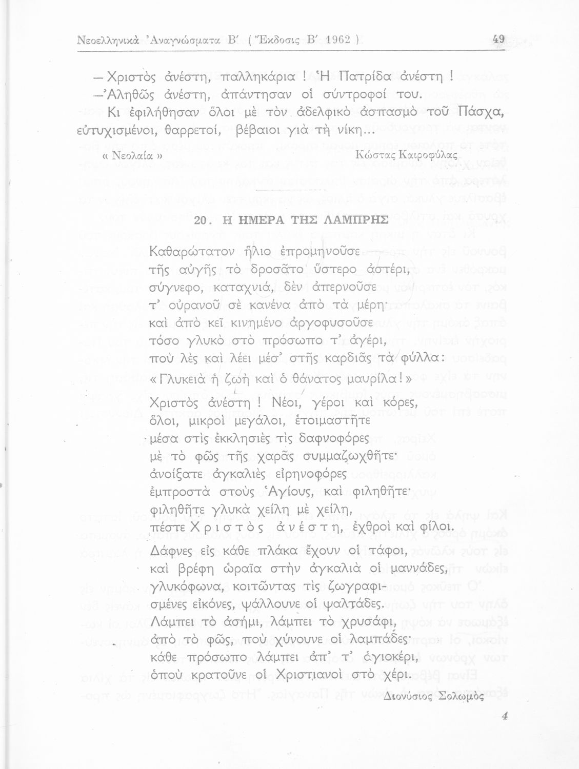 Σχολικό εγχειρίδιο Νέων Ελληνικών Δ΄ Γυμνασίου και Β΄ Αστικού Σχολείου που περιέχει πεζά και ποιήματα Ελλήνων συγγραφέων εμπνευσμένα από τη θρησκευτική και κοινωνική ζωή, την ελληνική μυθολογία, την αρχαία και