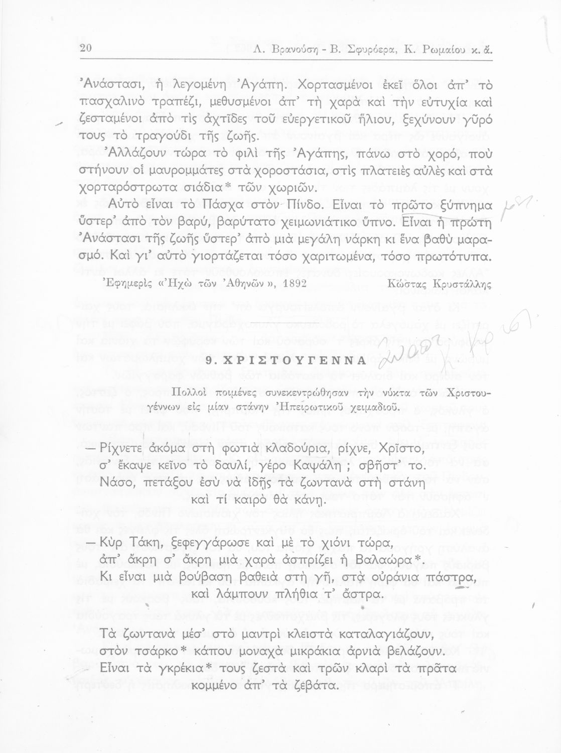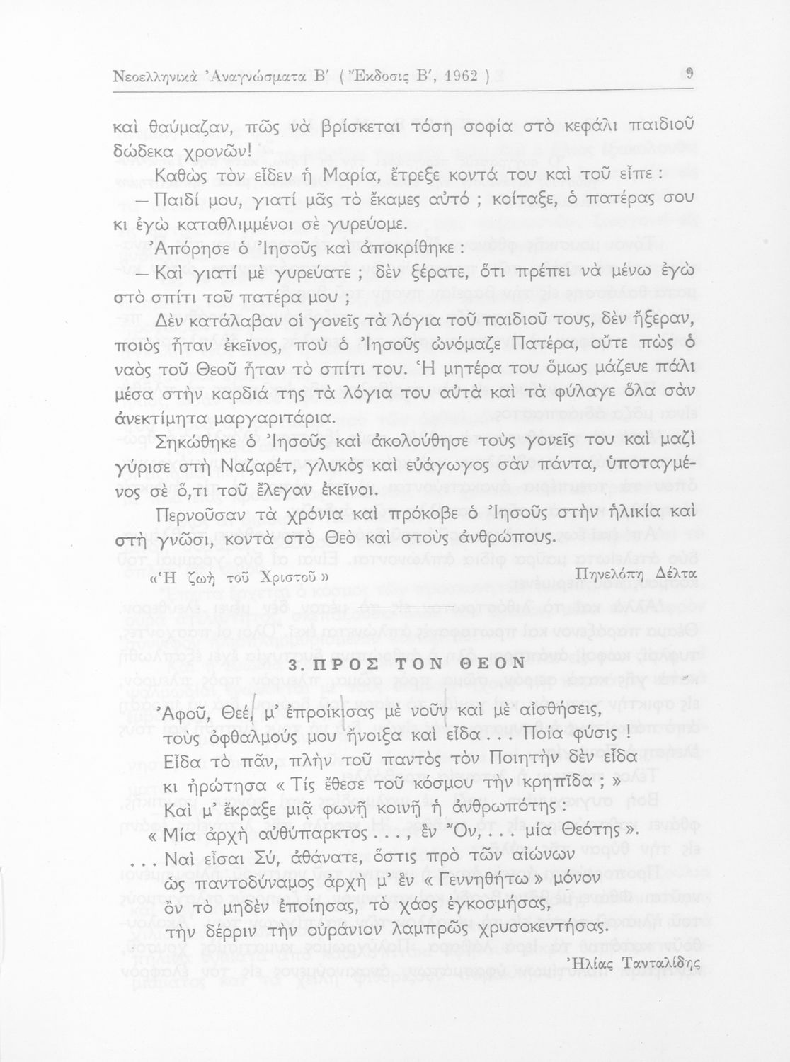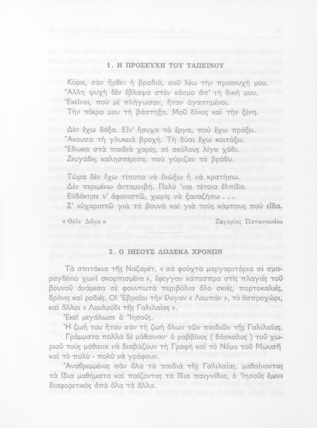 Σχολικό εγχειρίδιο Νέων Ελληνικών Δ΄ Γυμνασίου και Β΄ Αστικού Σχολείου που περιέχει πεζά και ποιήματα Ελλήνων συγγραφέων εμπνευσμένα από τη θρησκευτική και κοινωνική ζωή, την ελληνική μυθολογία, την αρχαία και
