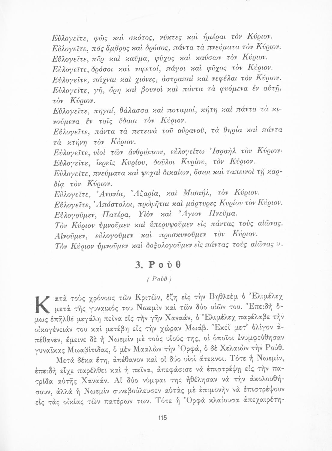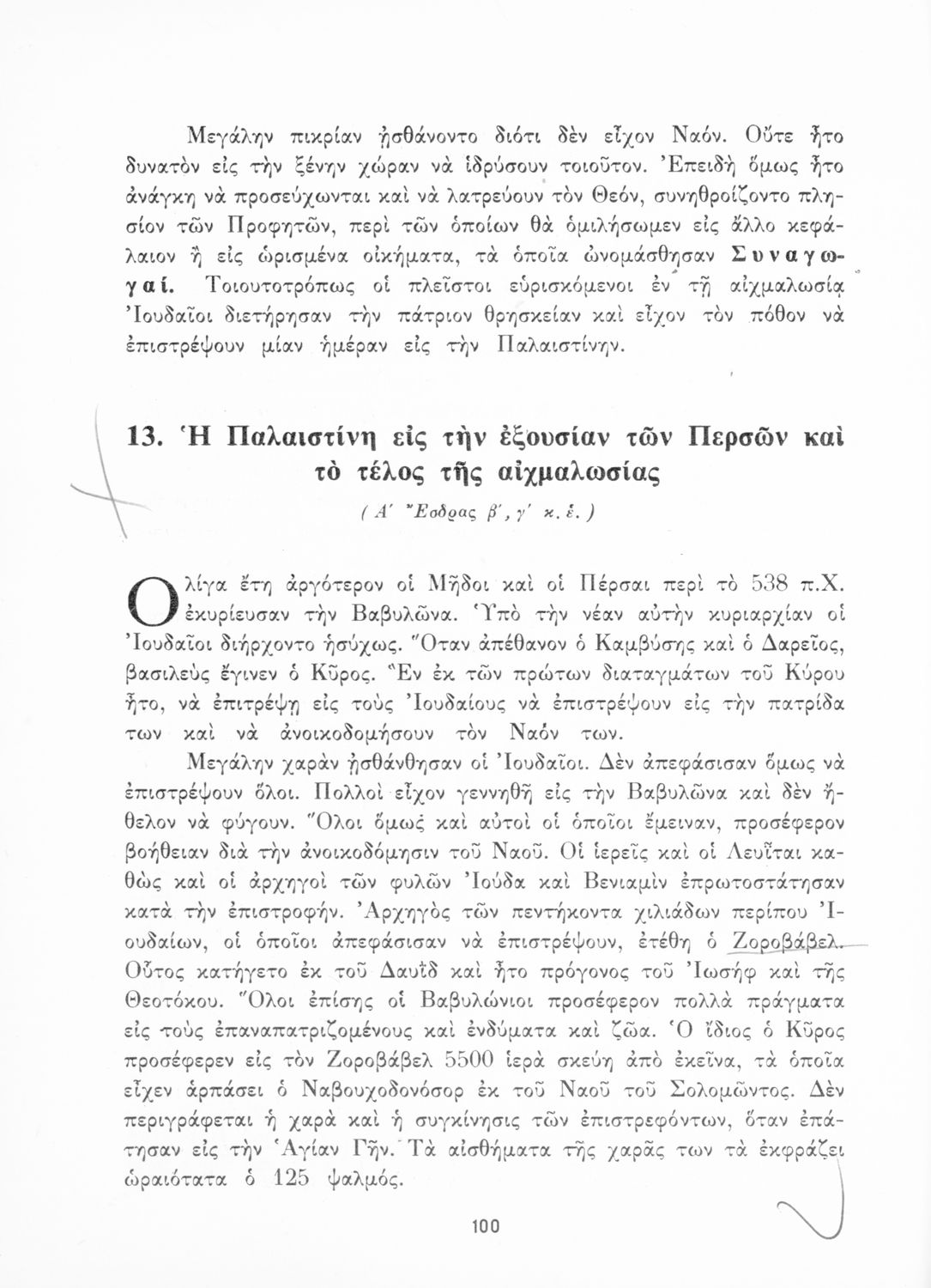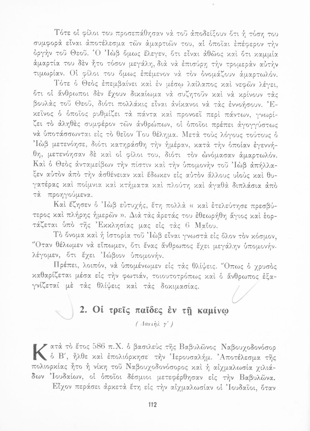 Σχολικό εγχειρίδιο Θρησκευτικών που συνιστά μία εξιστόρηση της Παλαιάς Διαθήκης από τη δημιουργία του κόσμου ως τους Προφήτες. Φέρει το σύμβολο της δικτατορίας.