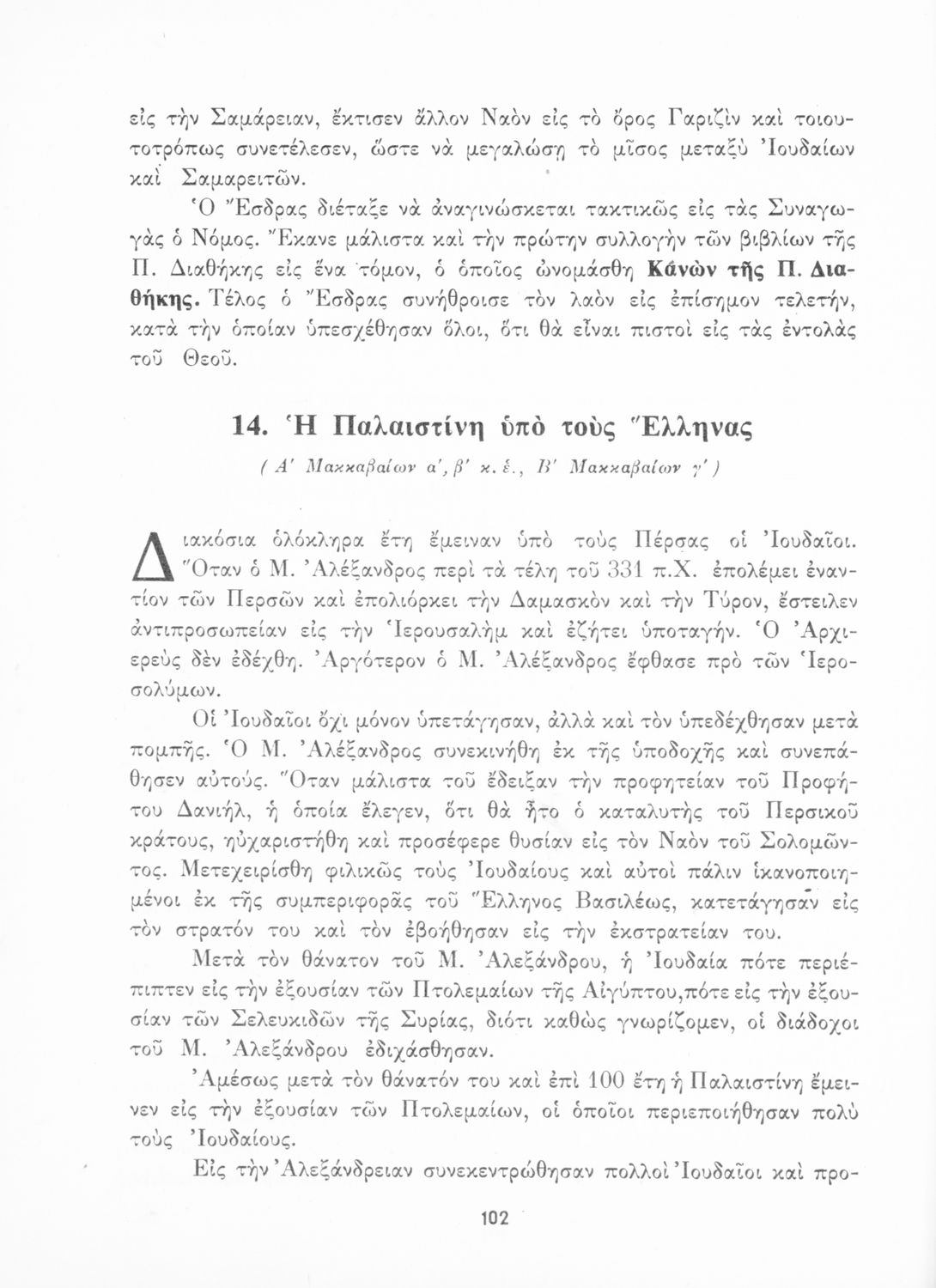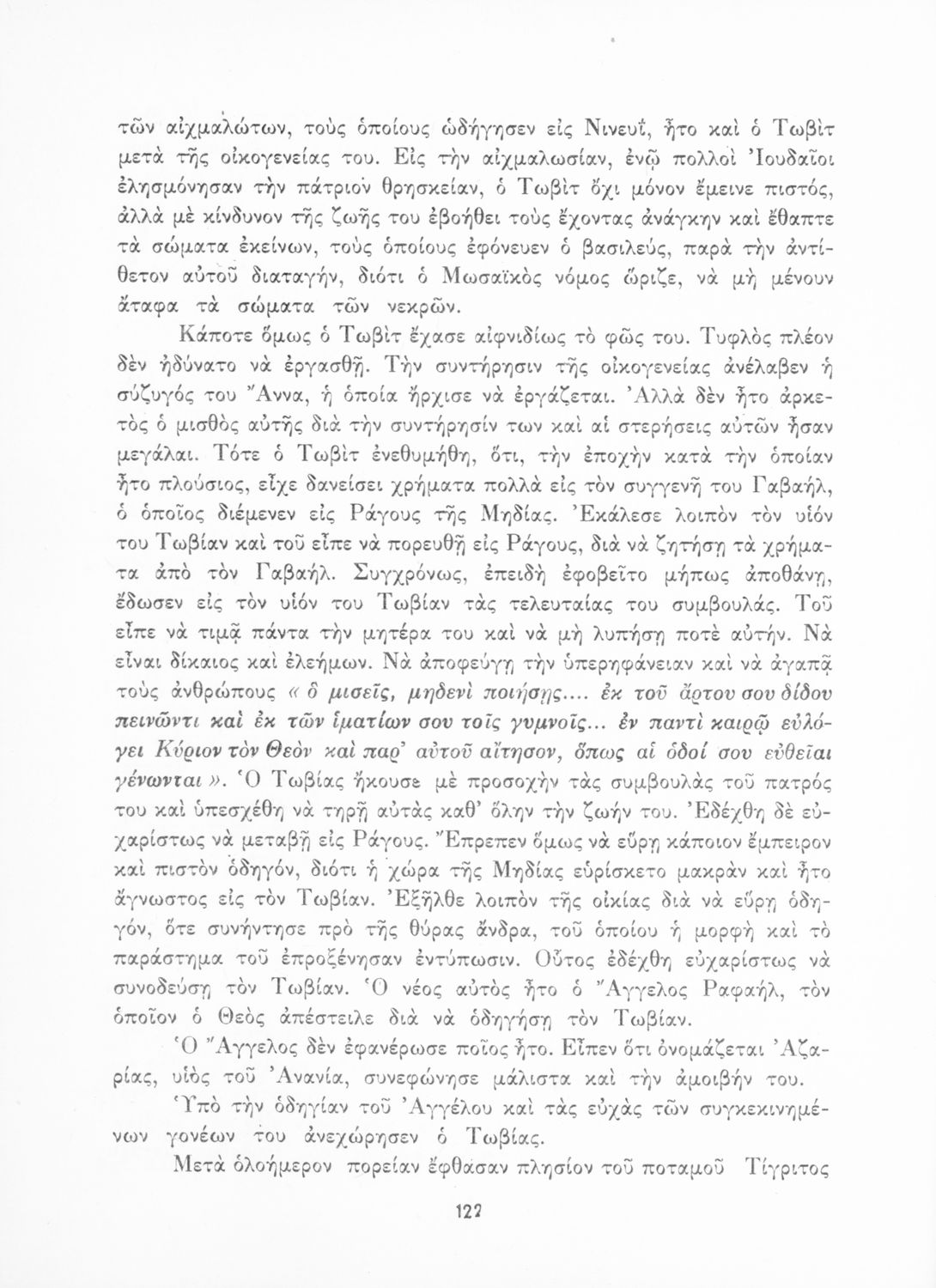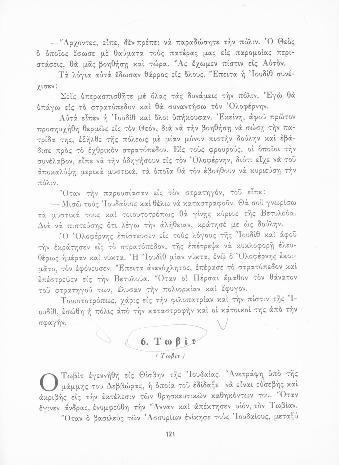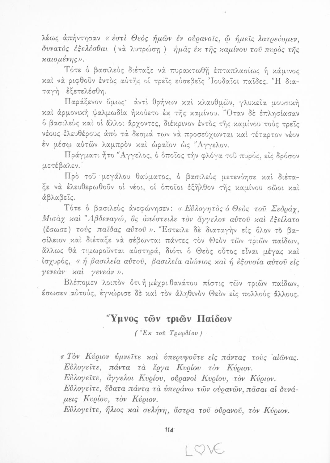 Σχολικό εγχειρίδιο Θρησκευτικών που συνιστά μία εξιστόρηση της Παλαιάς Διαθήκης από τη δημιουργία του κόσμου ως τους Προφήτες. Φέρει το σύμβολο της δικτατορίας.
