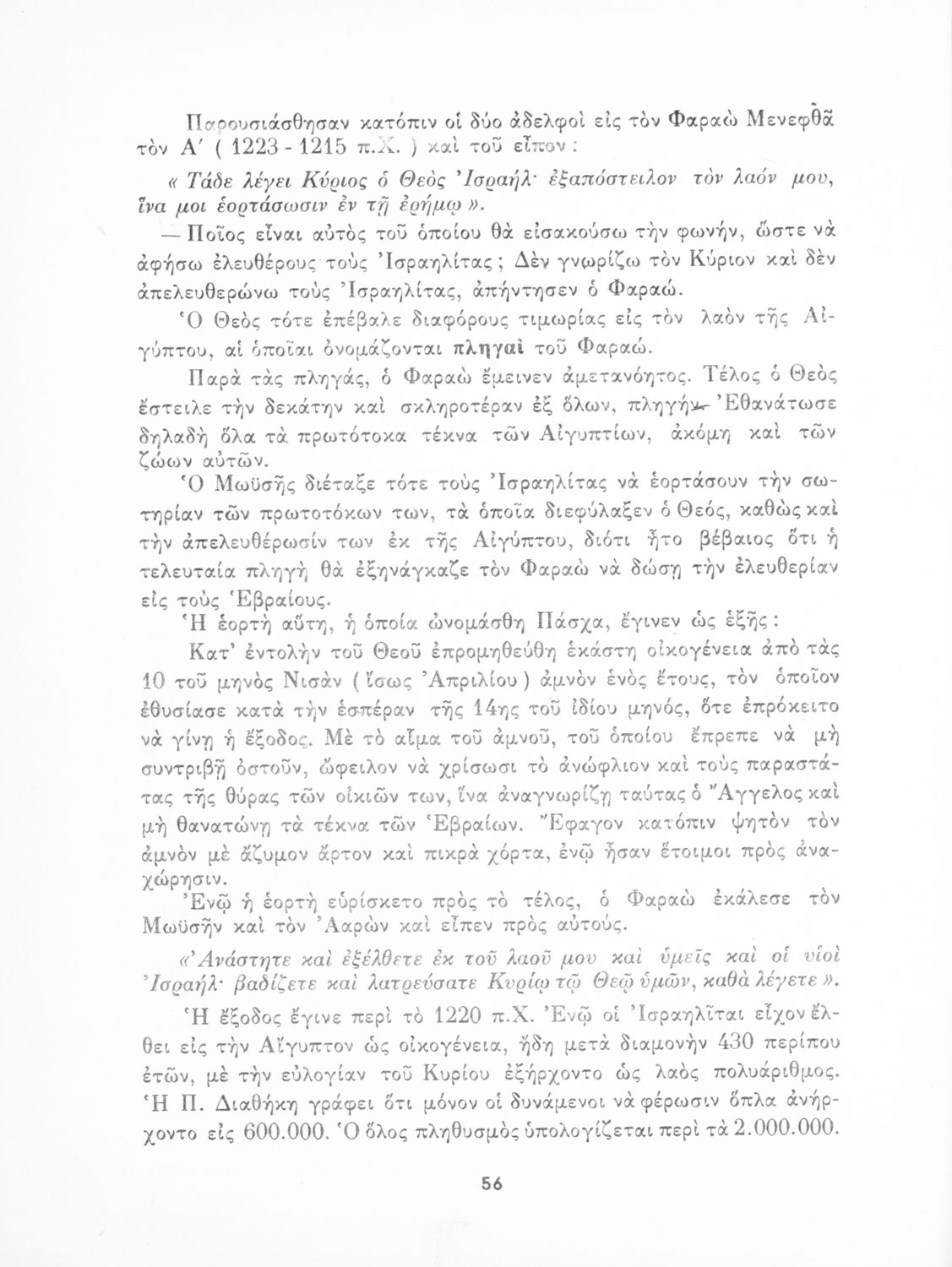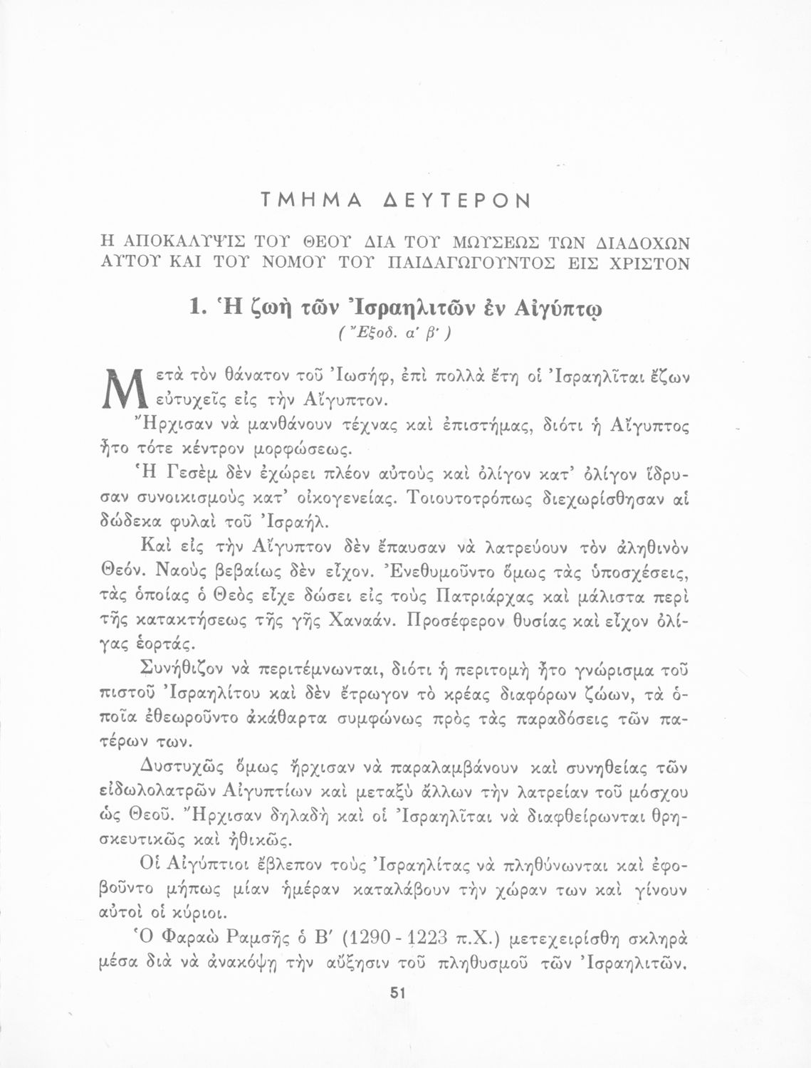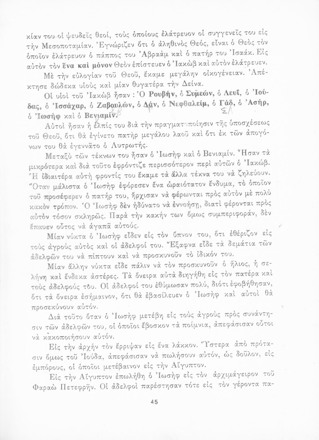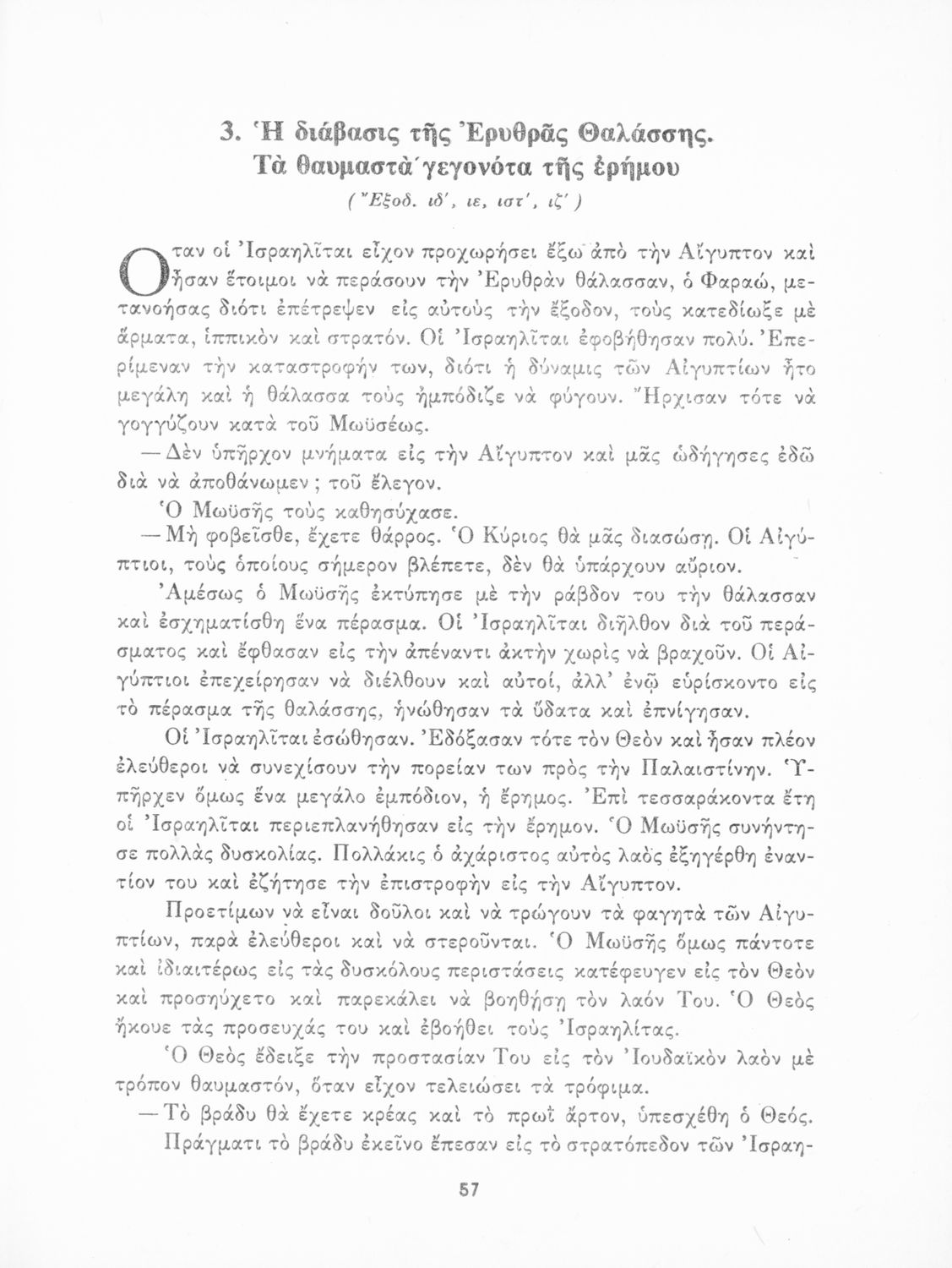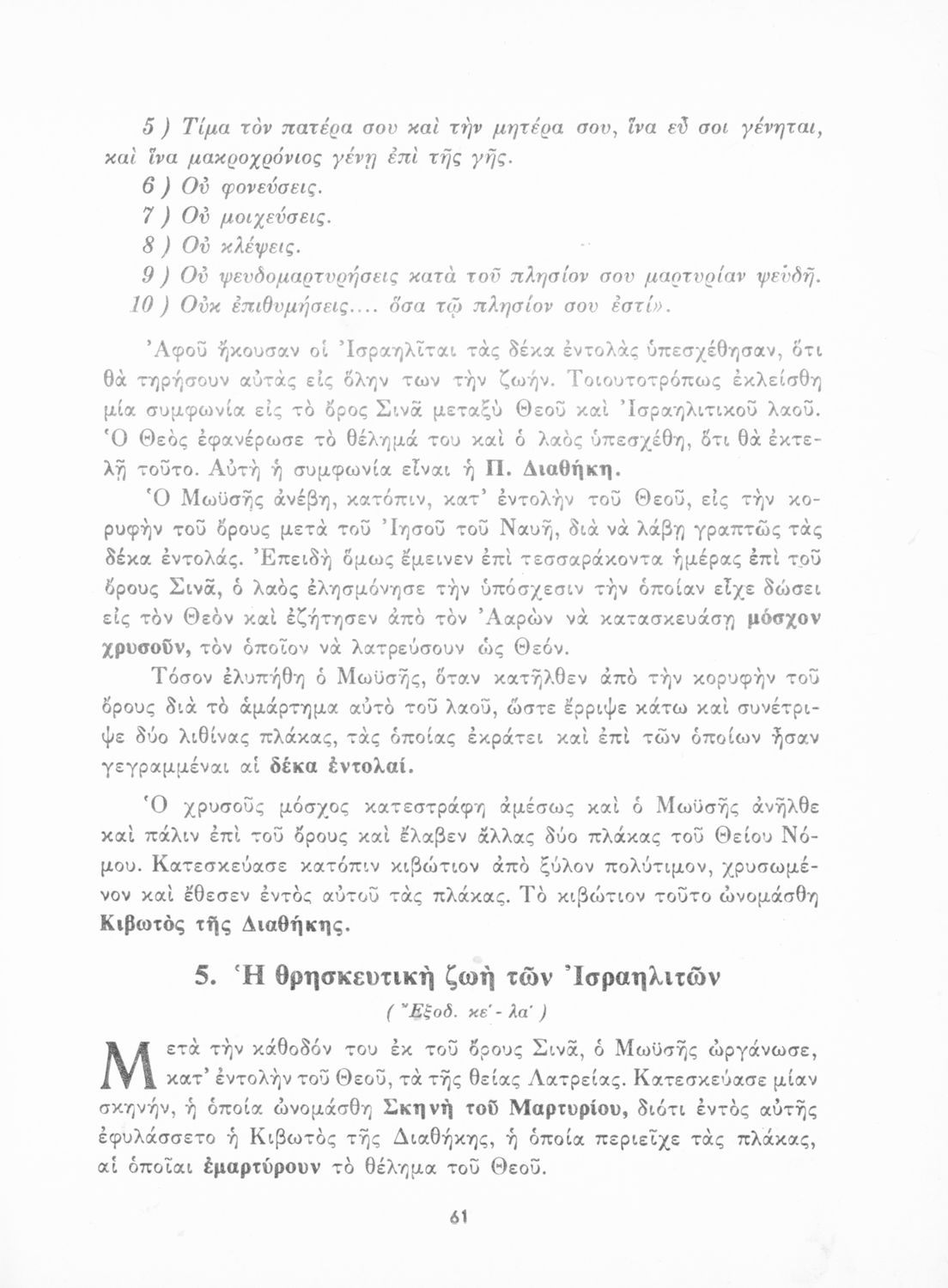 Σχολικό εγχειρίδιο Θρησκευτικών που συνιστά μία εξιστόρηση της Παλαιάς Διαθήκης από τη δημιουργία του κόσμου ως την υποταγή των Εβραίων στους Ρωμαίους. Περιέχει και στοιχεία γεωγραφίας της Παλαιστίνης.