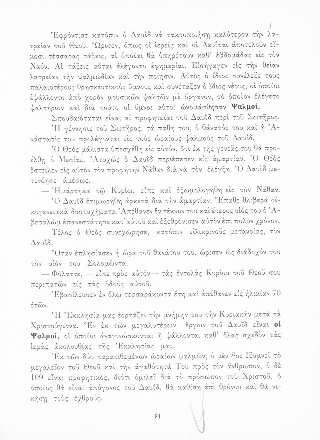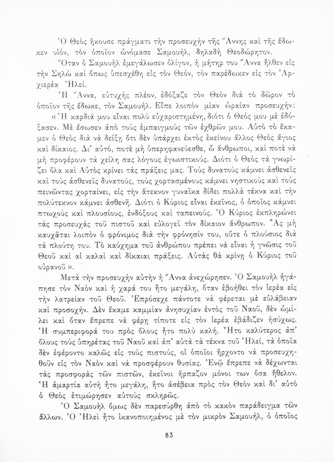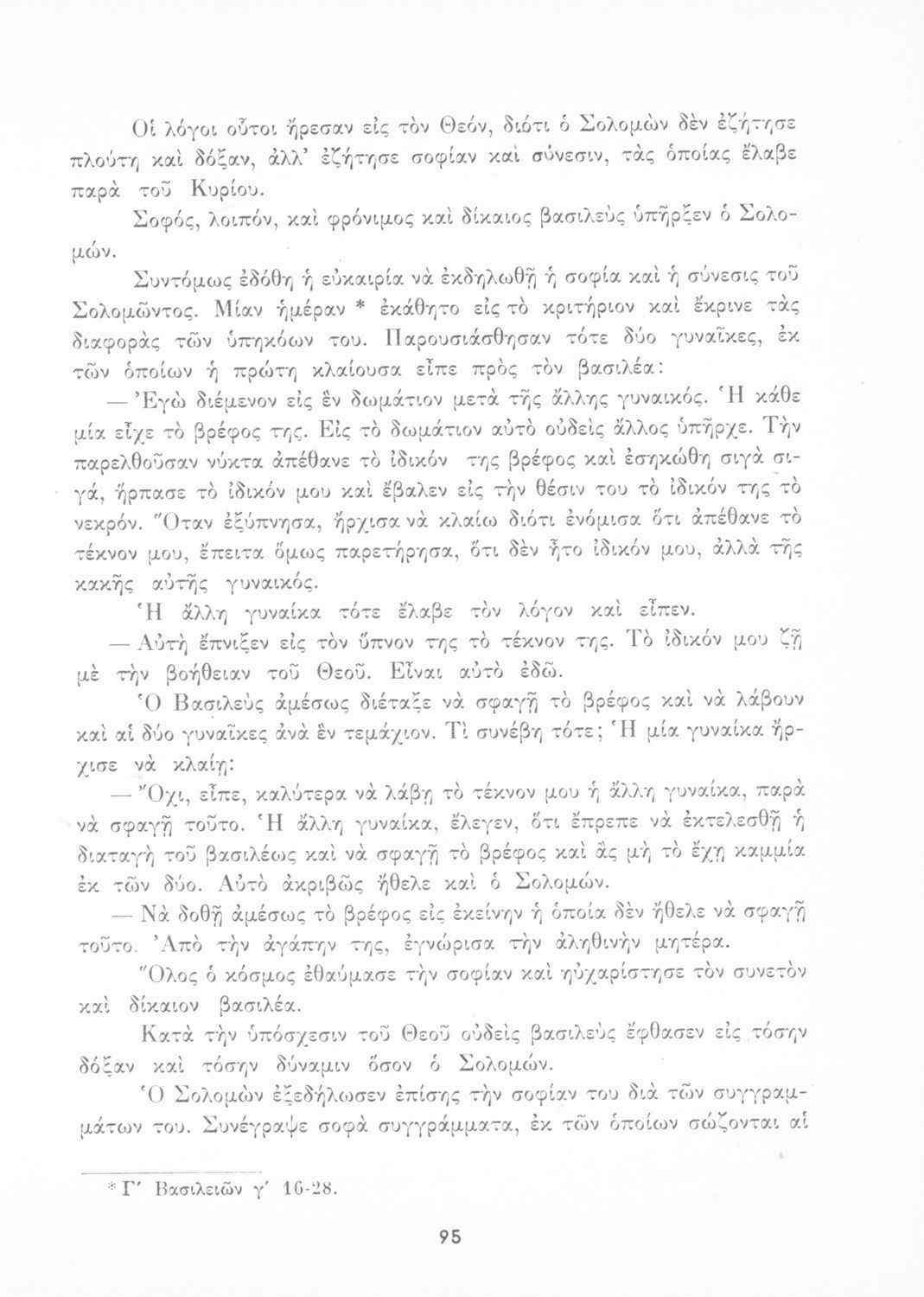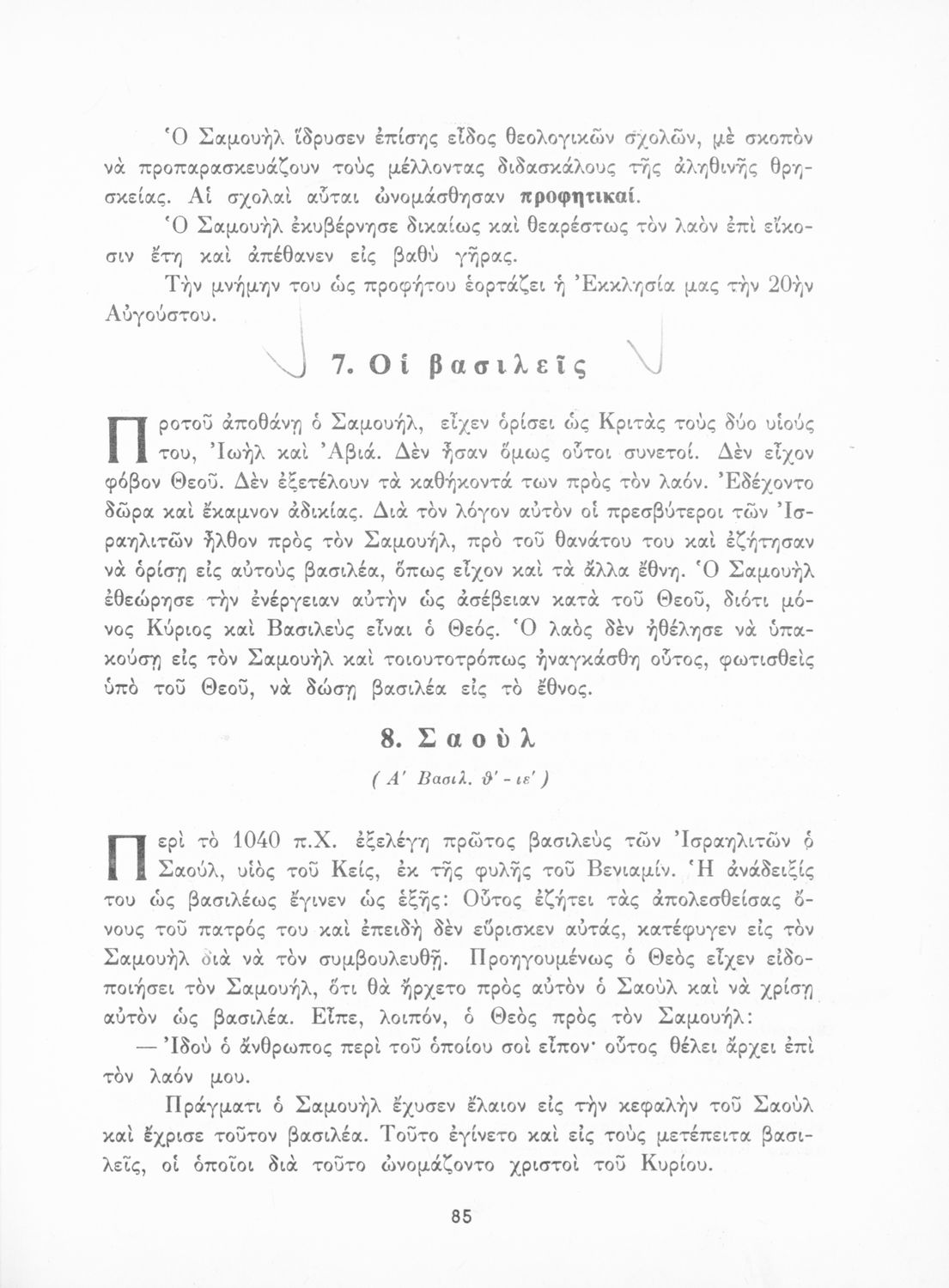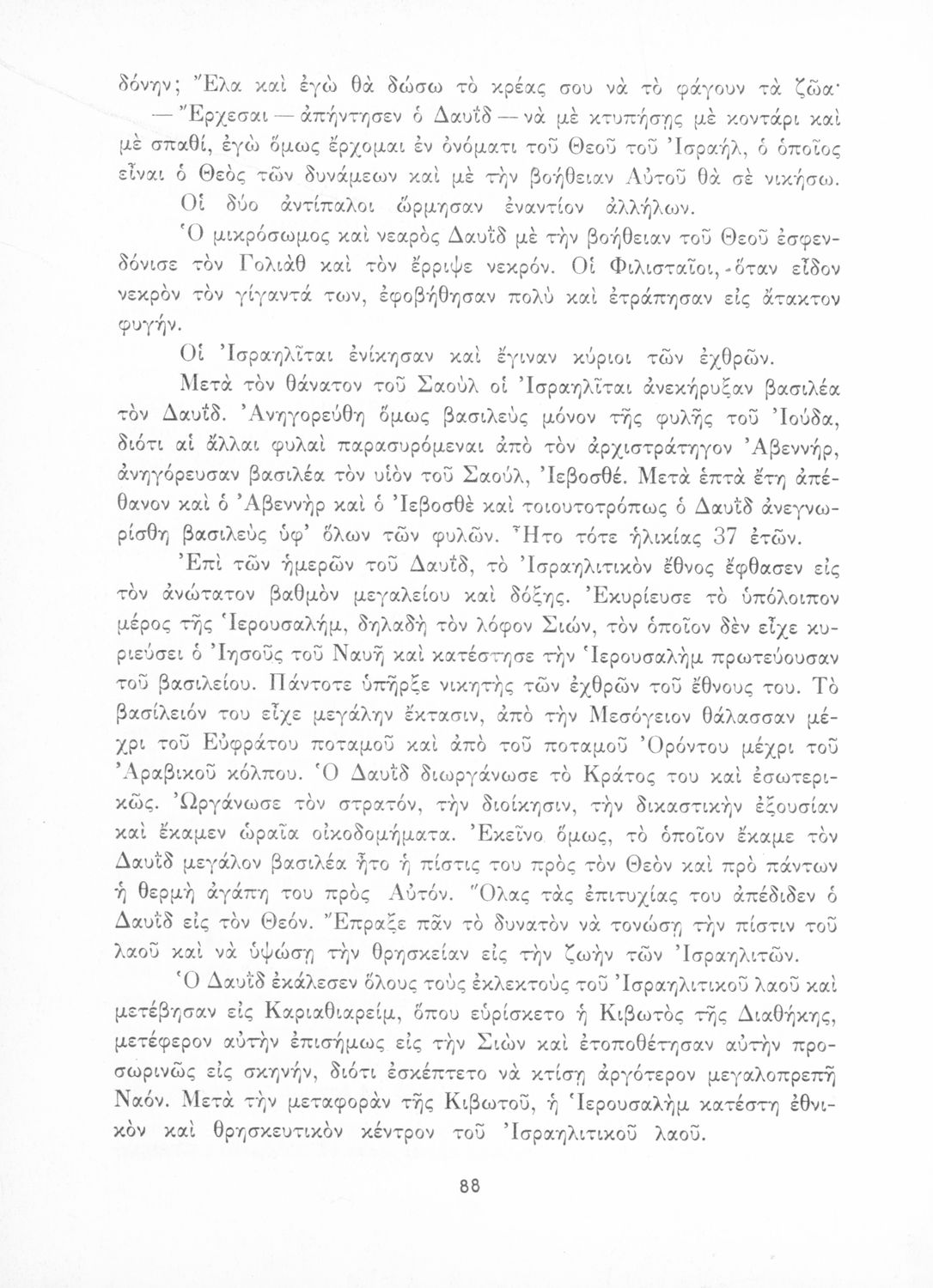 Σχολικό εγχειρίδιο Θρησκευτικών που συνιστά μία εξιστόρηση της Παλαιάς Διαθήκης από τη δημιουργία του κόσμου ως την υποταγή των Εβραίων στους Ρωμαίους. Περιέχει και στοιχεία γεωγραφίας της Παλαιστίνης.