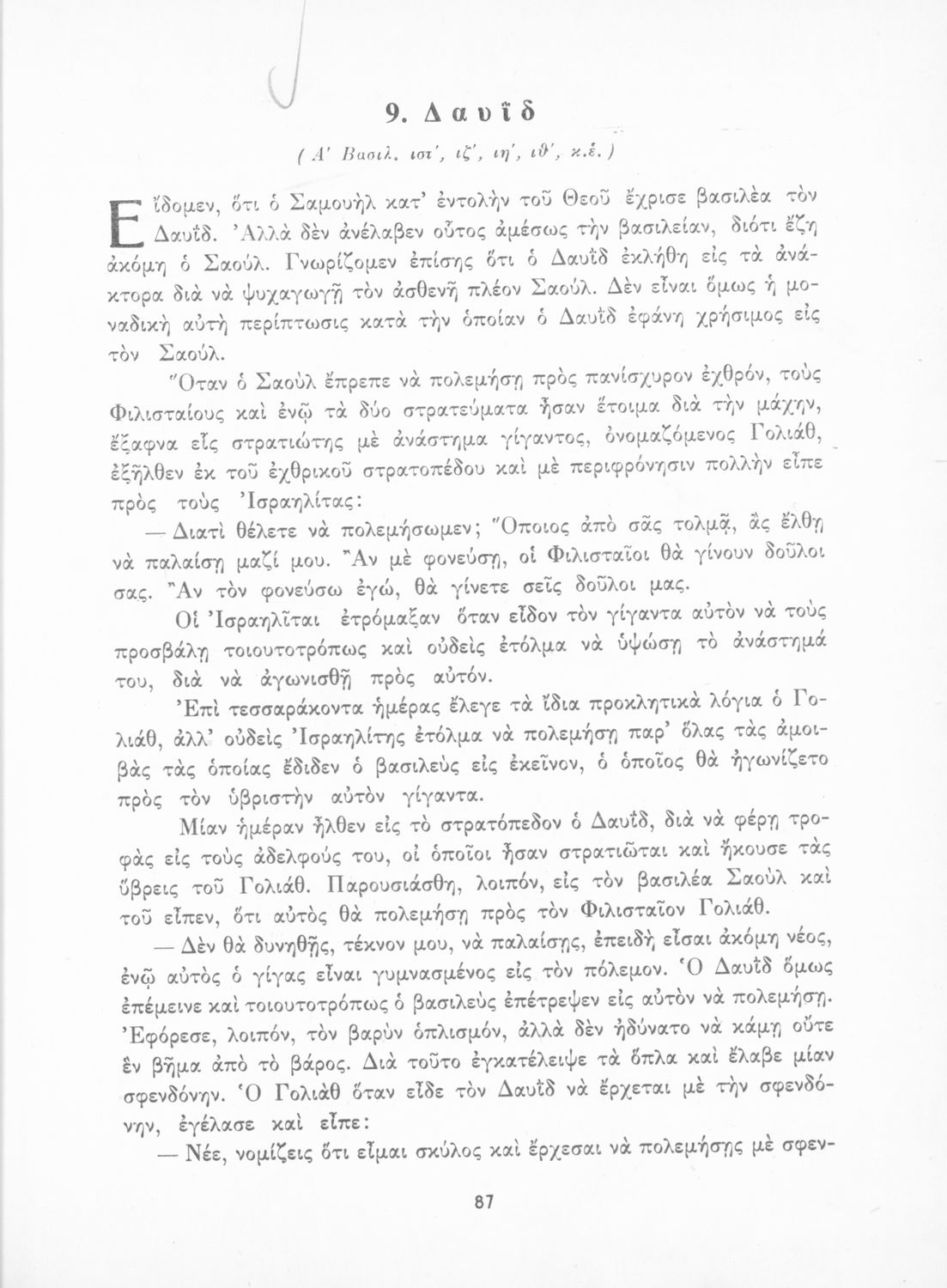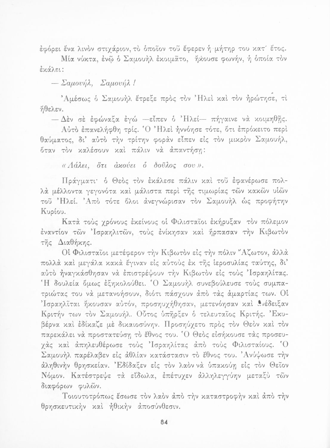 Σχολικό εγχειρίδιο Θρησκευτικών Δημοτικού που συνιστά μία εξιστόρηση της Παλαιάς Διαθήκης από τη δημιουργία του κόσμου ως τους Μακκαβαίους. Περιέχει και ποιήματα θρησκευτικού περιεχομένου.