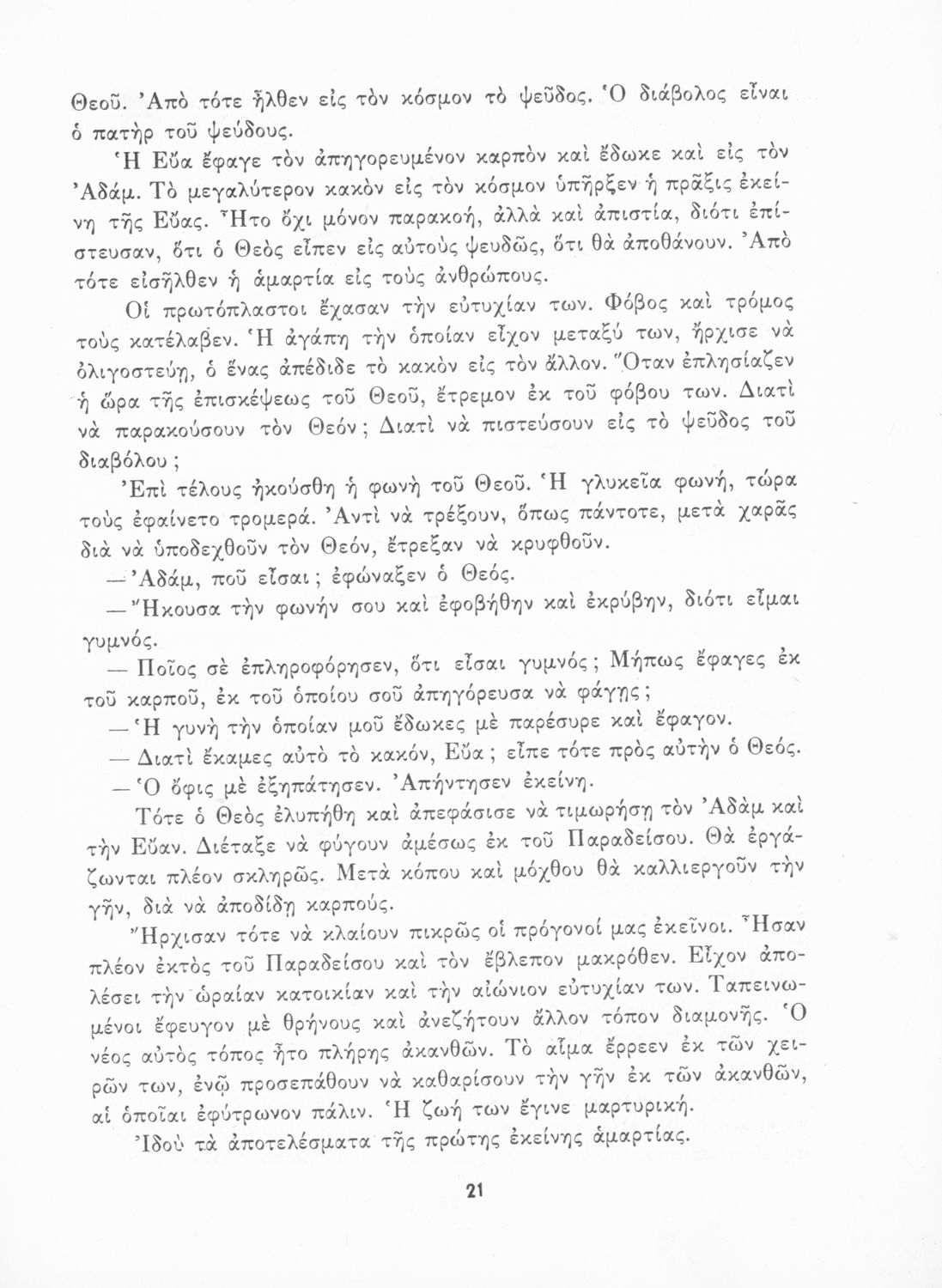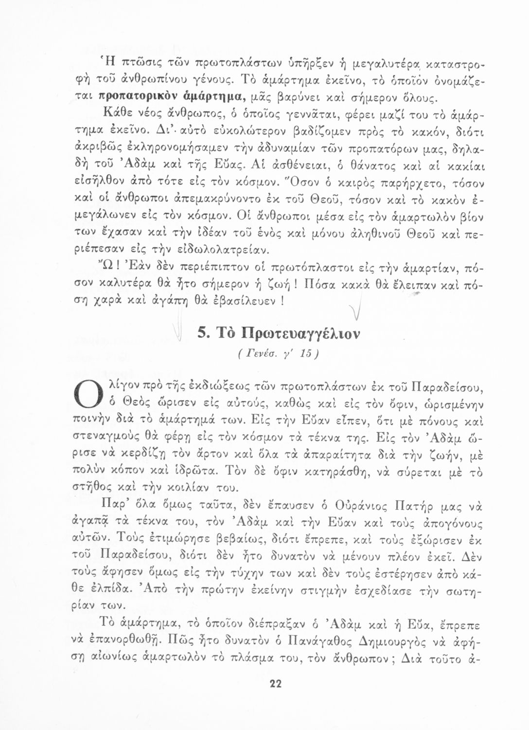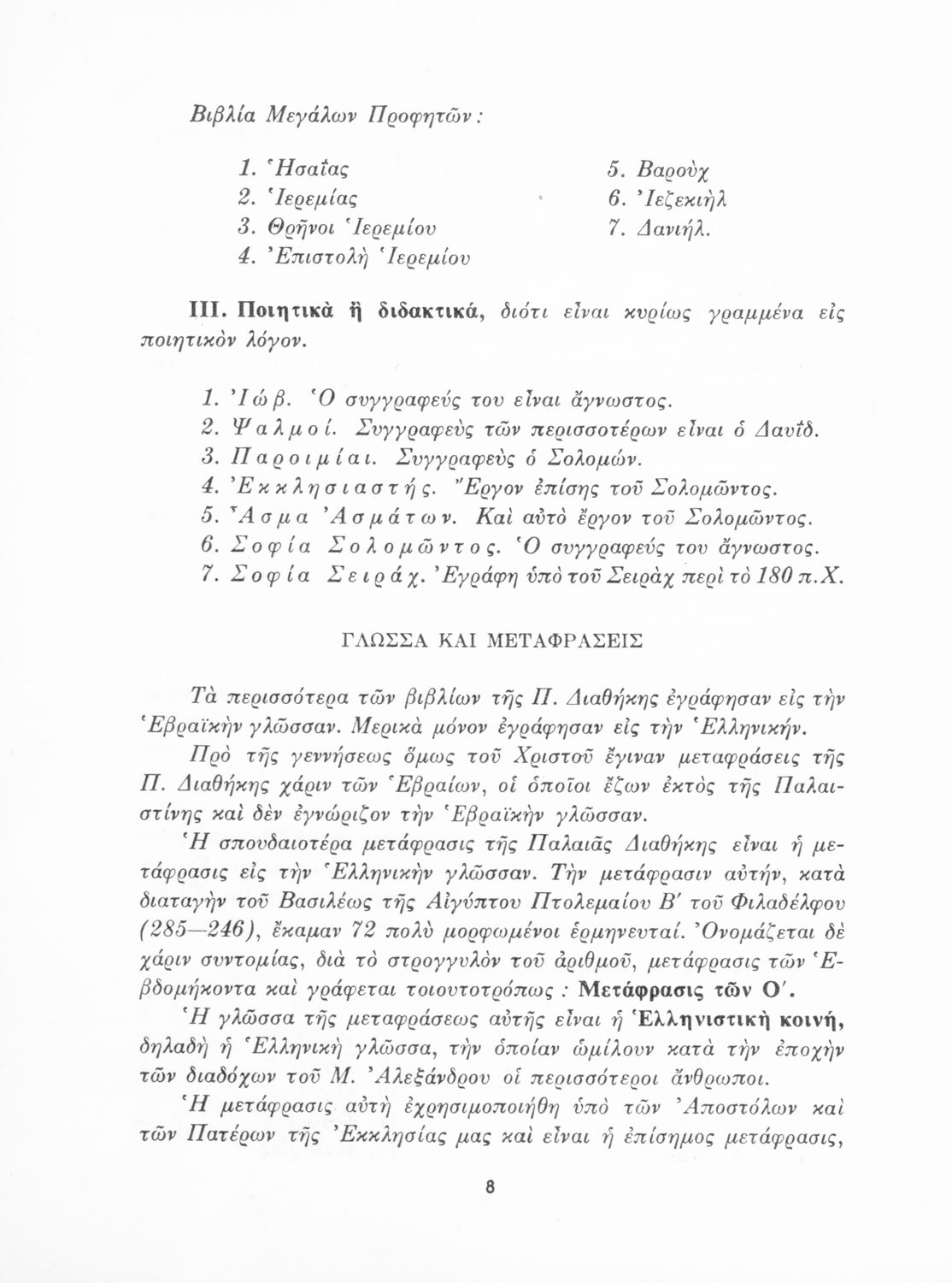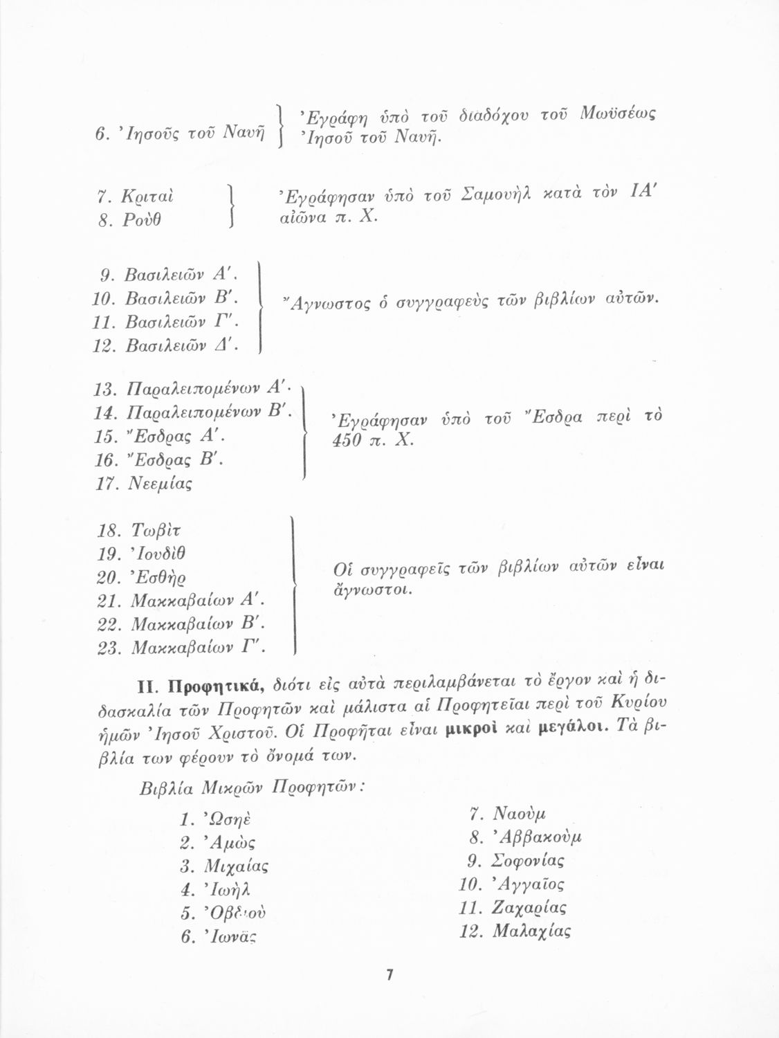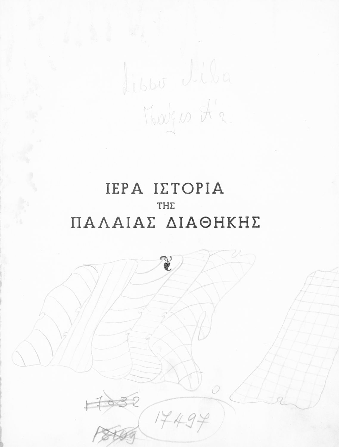 Σχολικό εγχειρίδιο Θρησκευτικών που συνιστά μία εξιστόρηση της Παλαιάς Διαθήκης από τη δημιουργία του κόσμου ως την υποταγή των Εβραίων στους Ρωμαίους. Περιέχει και στοιχεία γεωγραφίας της Παλαιστίνης.