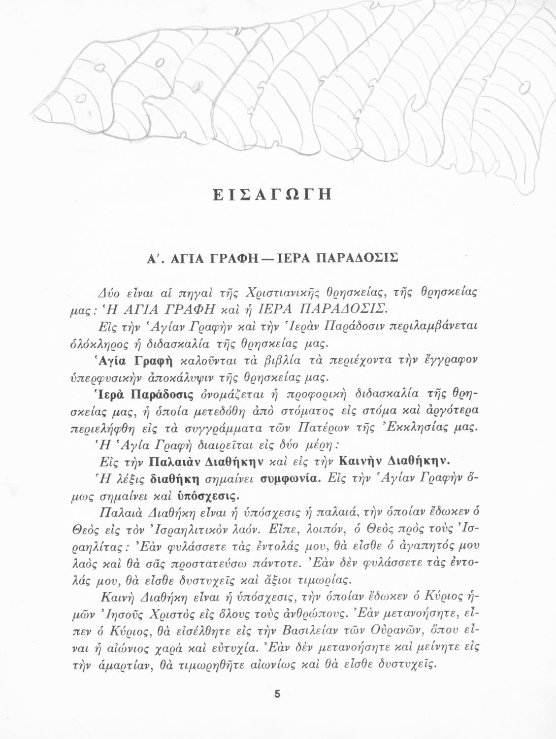 Σχολικό εγχειρίδιο Θρησκευτικών Α΄ Ελληνικού Σχολείου που συνιστά μία εξιστόρηση της Παλαιάς Διαθήκης από τη δημιουργία του κόσμου ως τους Μακκαβαίους.