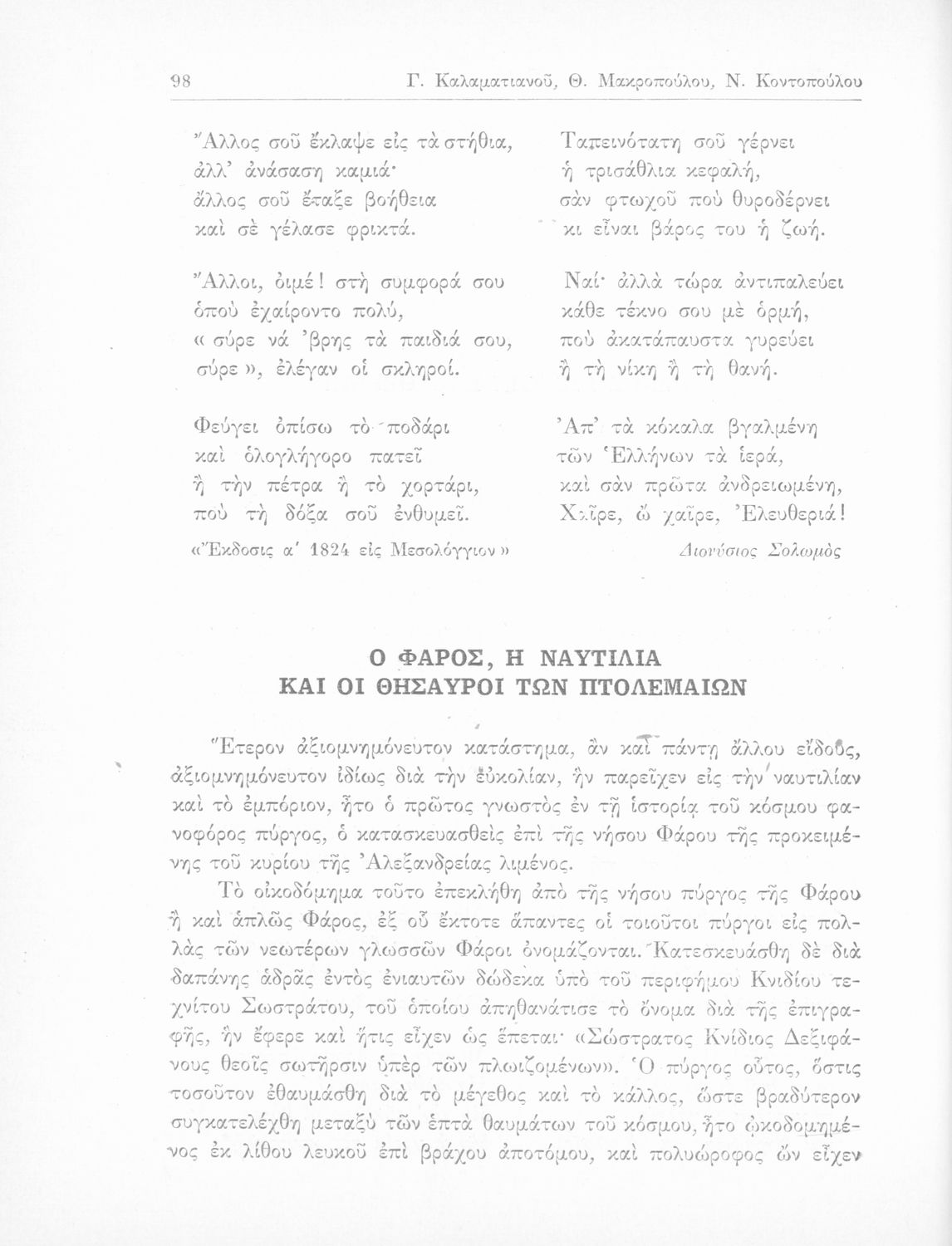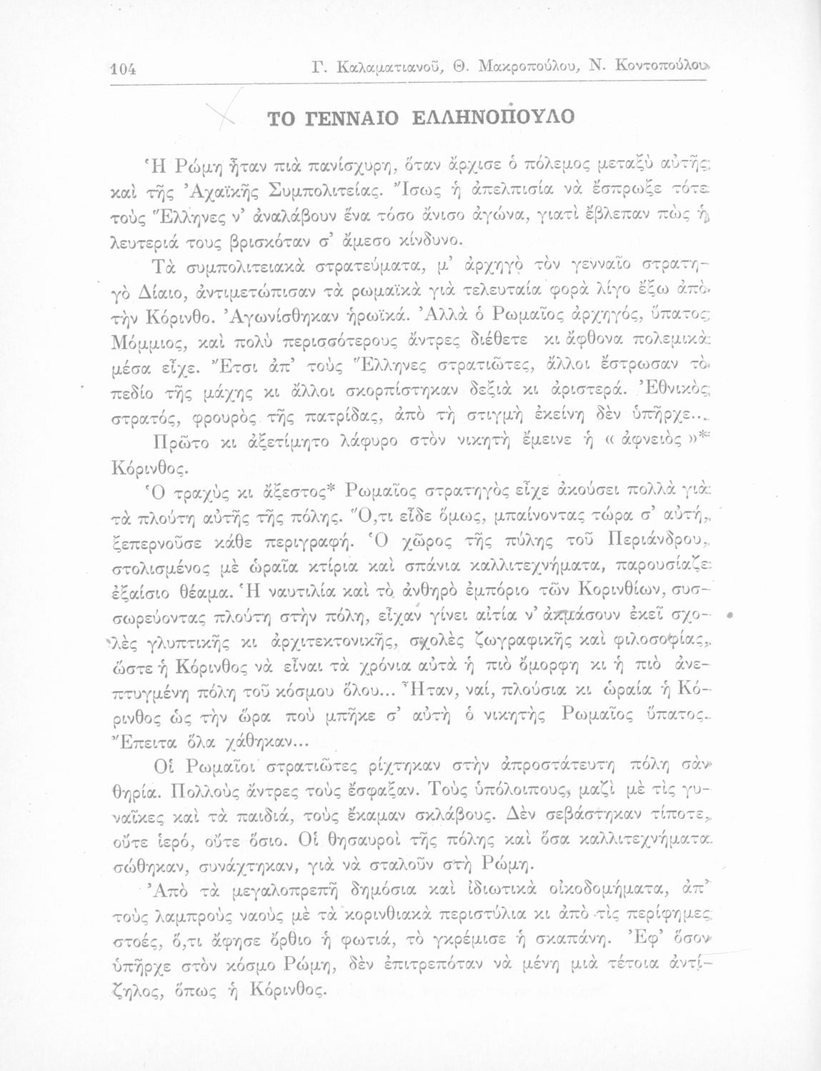 Συγγραφέας: Γ. Καλαματιανός, Θ. Μακρόπουλος, Ν. Κοντόπουλος