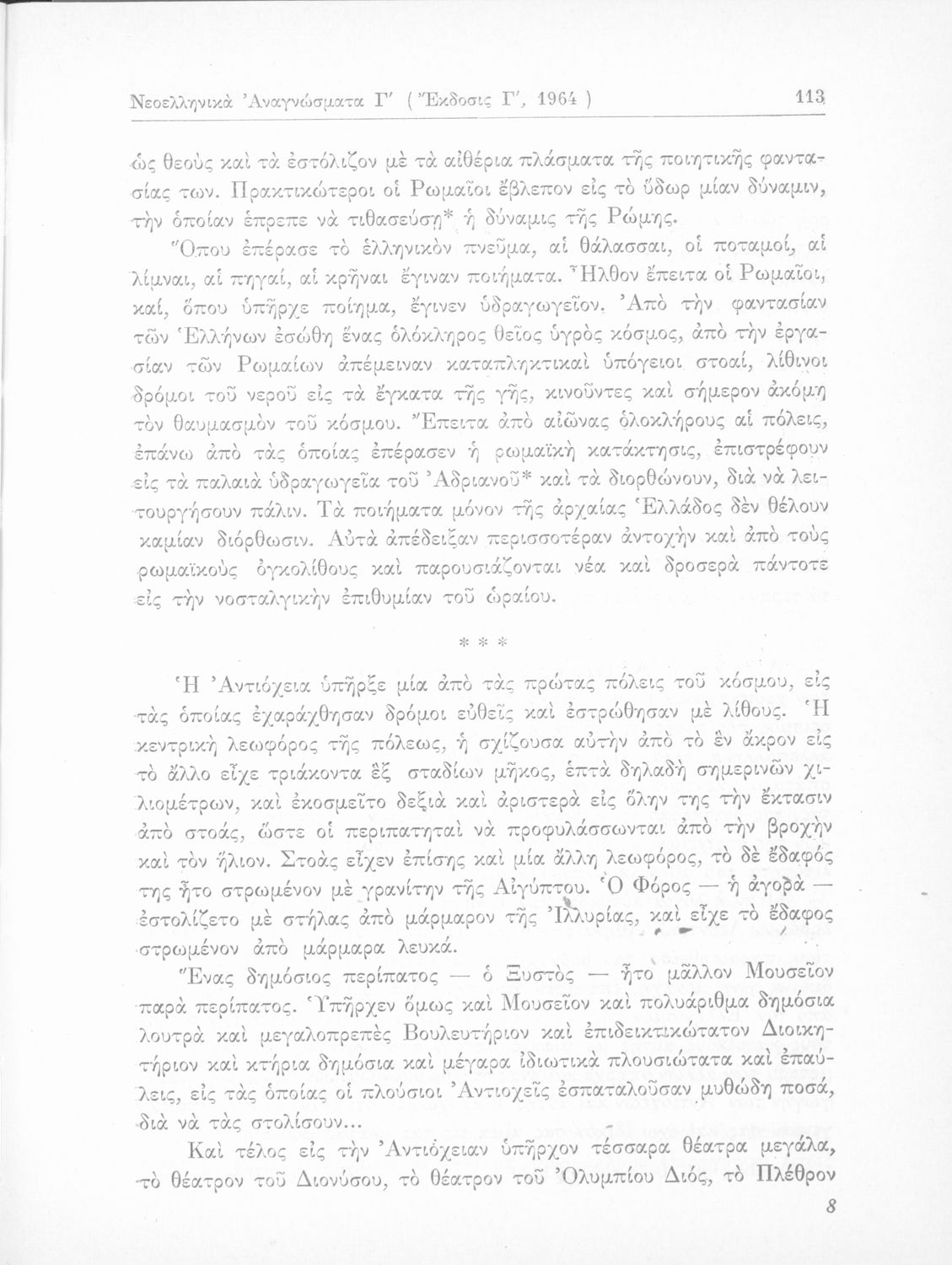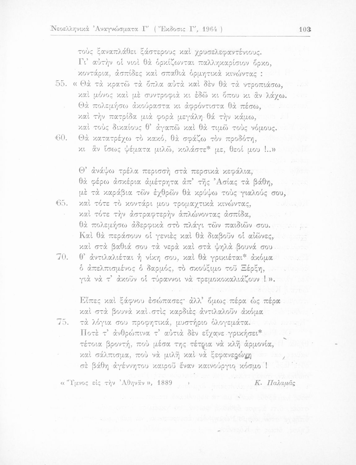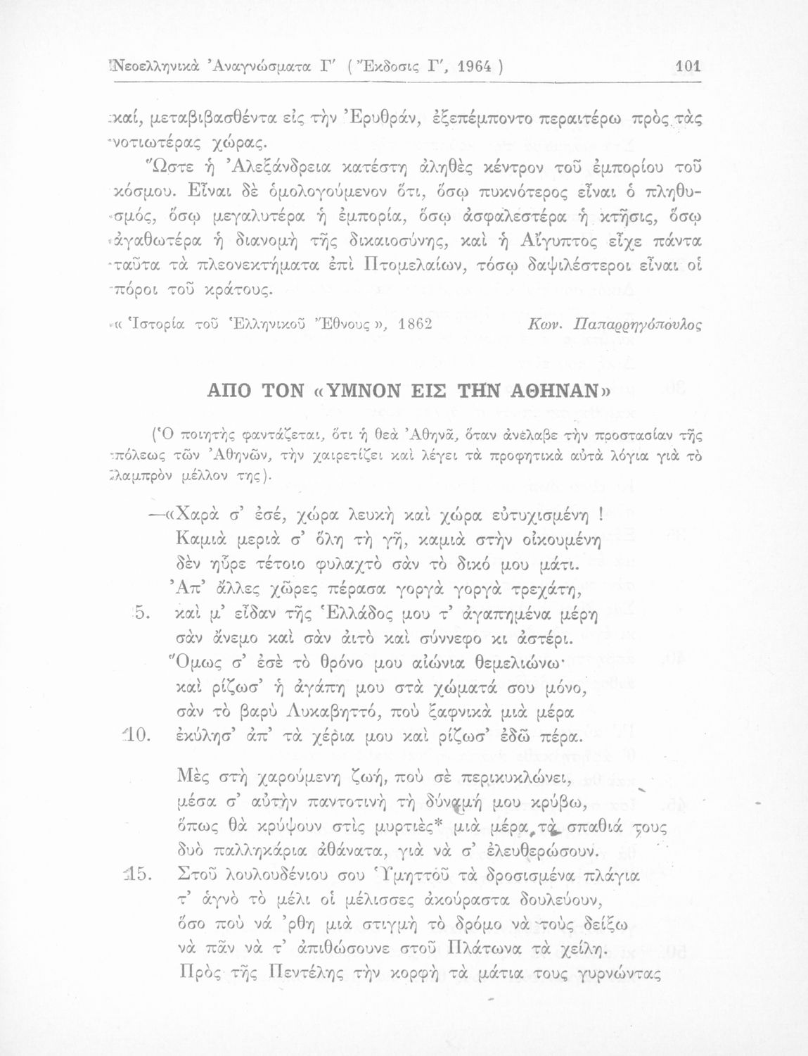 Σχολικό εγχειρίδιο Νέων Ελληνικών Γ΄ Γυμνασίου και Α' Αστικού Σχολείου που περιέχει πεζά και ποιήματα Ελλήνων συγγραφέων εμπνευσμένα από τη θρησκευτική και κοινωνική ζωή, την ελληνική μυθολογία, την αρχαία και