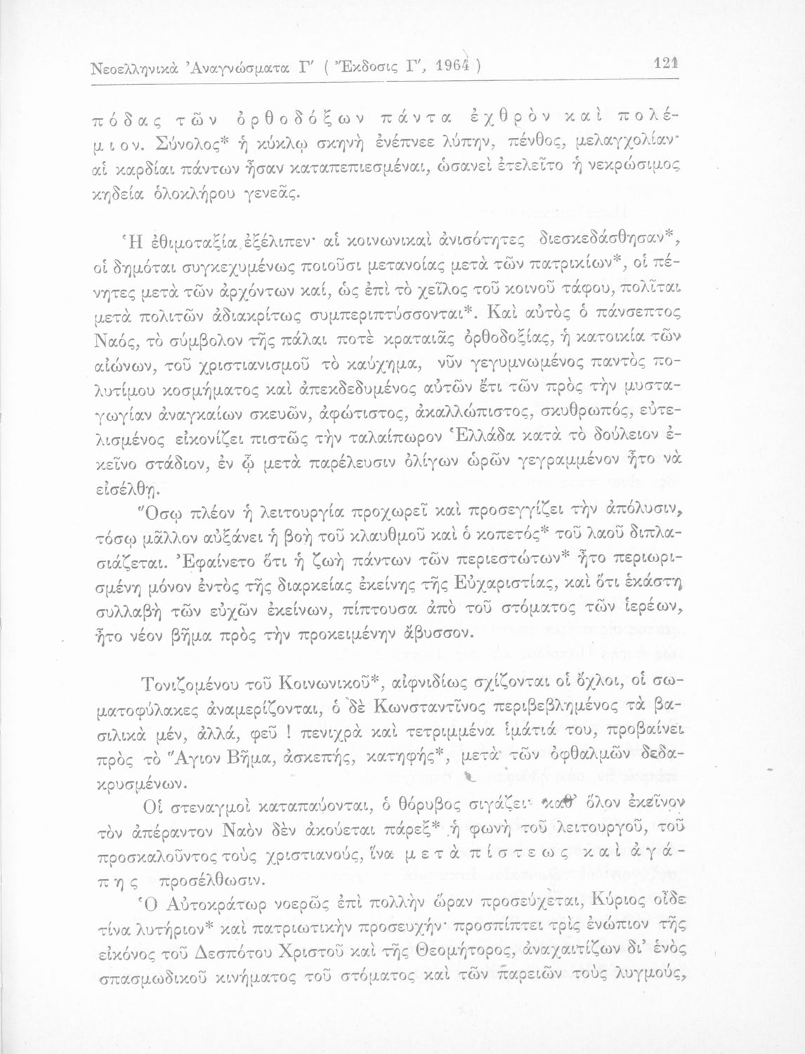 Σχολικό εγχειρίδιο Νέων Ελληνικών Γ΄ Γυμνασίου και Α' Αστικού Σχολείου που περιέχει πεζά και ποιήματα Ελλήνων συγγραφέων εμπνευσμένα από τη θρησκευτική και κοινωνική ζωή, την ελληνική μυθολογία, την αρχαία και