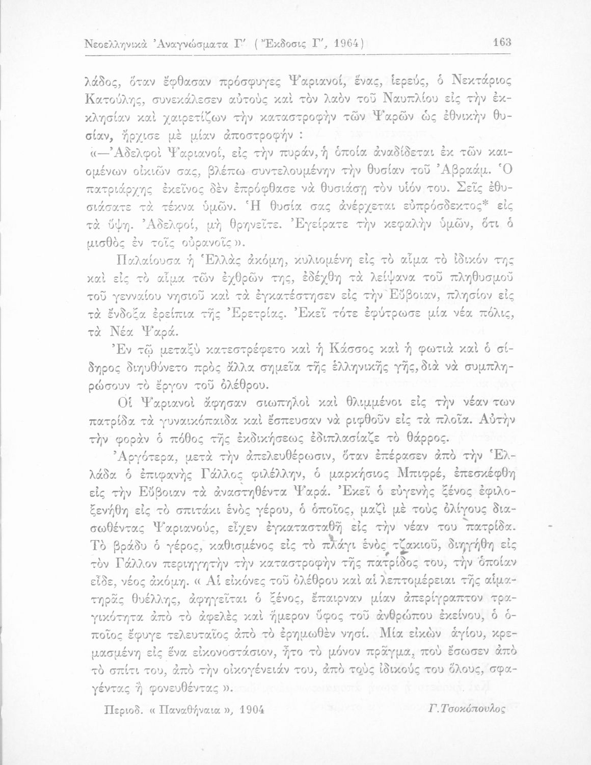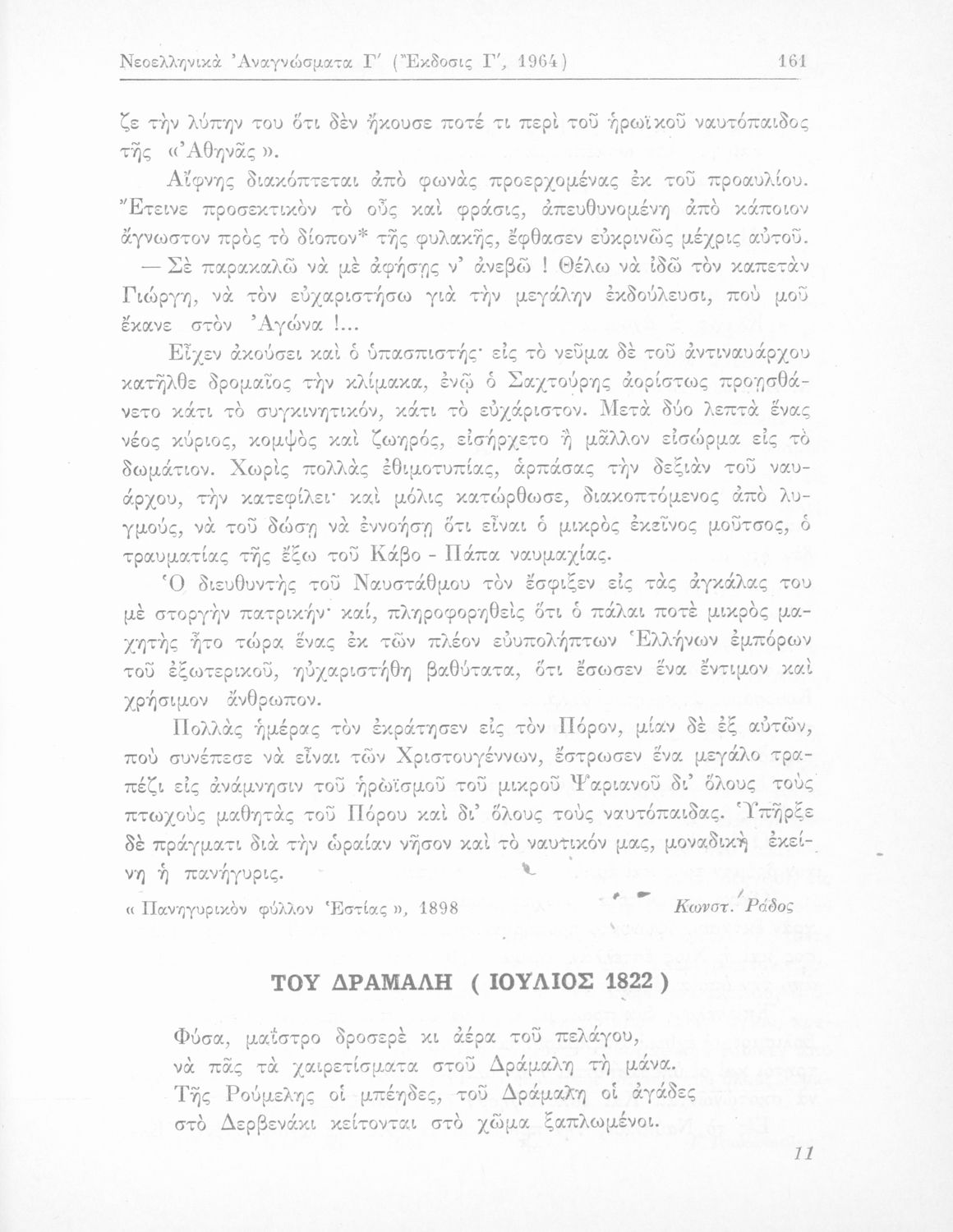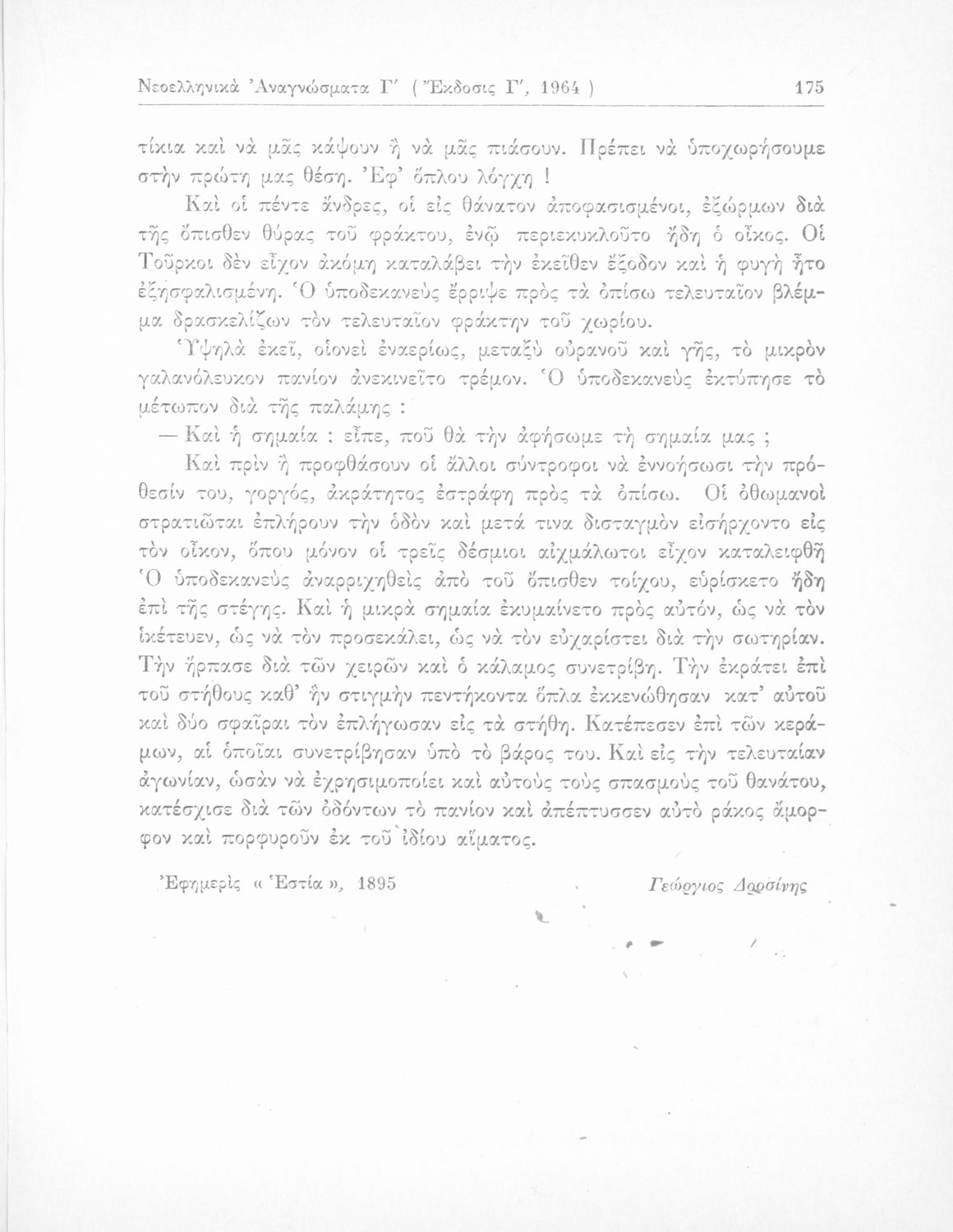 Βαθμίδα εκπαίδευσης: Δευτεροβάθμια Τάξη: Γ' Γυμνασίου Μάθημα: Νέα Ελληνικά Γλώσσα: Καθαρεύουσα / Δημοτική Παρουσίαση περιεχομένου: Σχολικό εγχειρίδιο Νέων Ελληνικών Γ΄ Γυμνασίου που περιέχει ποιήματα και πεζά Ελλήνων συγγραφέων εμπνευσμένα από τη θρησκευτική, οικογενειακή και κοινωνική ζωή, την σύγχρονή ελληνική ιστορία και την ελληνική φύση. Περιέχει παράρτημα με βιογραφίες των συγγραφέων και λεξιλόγιο. |