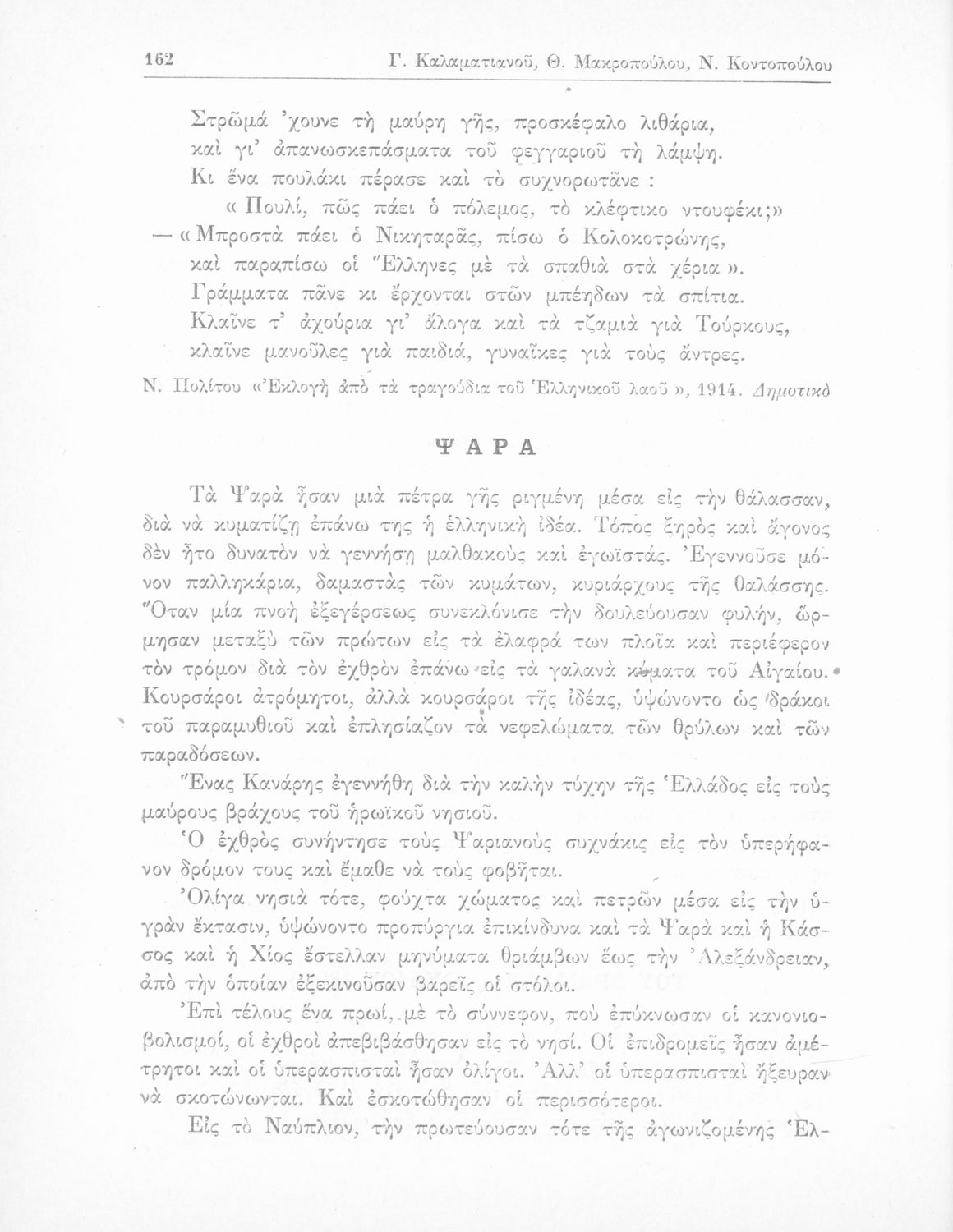 Σχολικό εγχειρίδιο Νέων Ελληνικών Γ΄ Γυμνασίου που περιέχει ποιήματα και πεζά Ελλήνων συγγραφέων εμπνευσμένα από τη θρησκευτική, οικογενειακή και κοινωνική ζωή, την σύγχρονή ελληνική ιστορία και την ελληνική φύση. Περιέχει παράρτημα με βιογραφίες των συγγραφέων και λεξιλόγιο.
