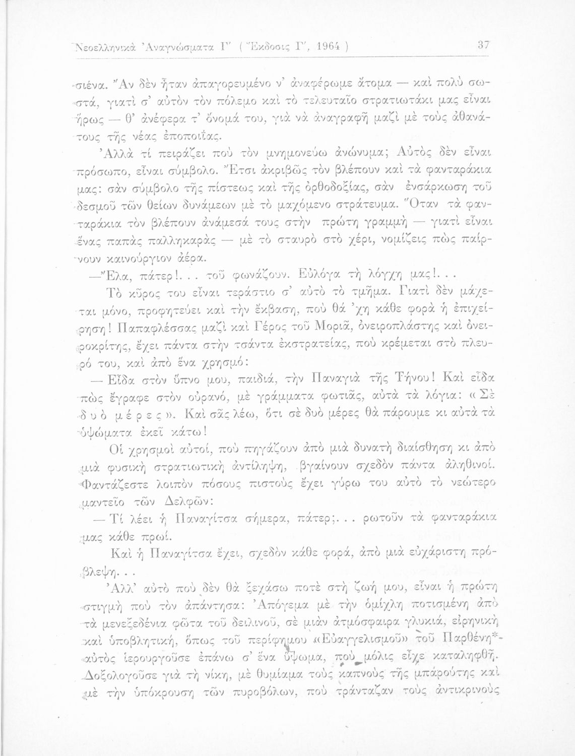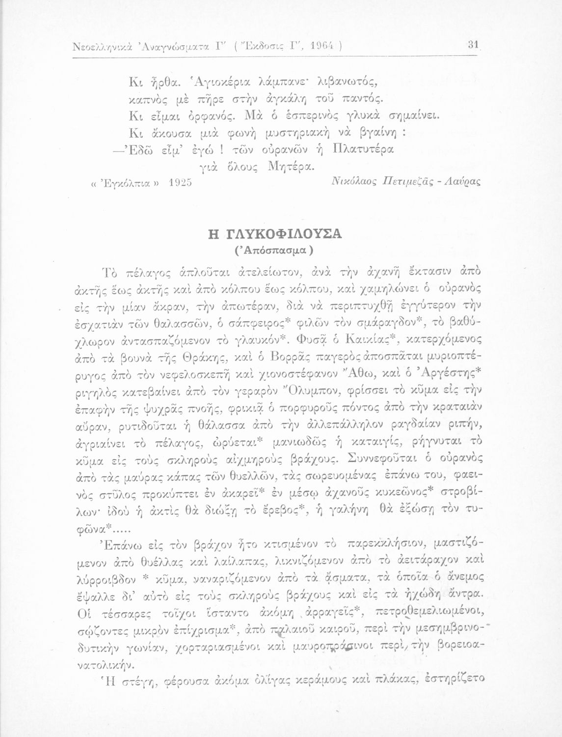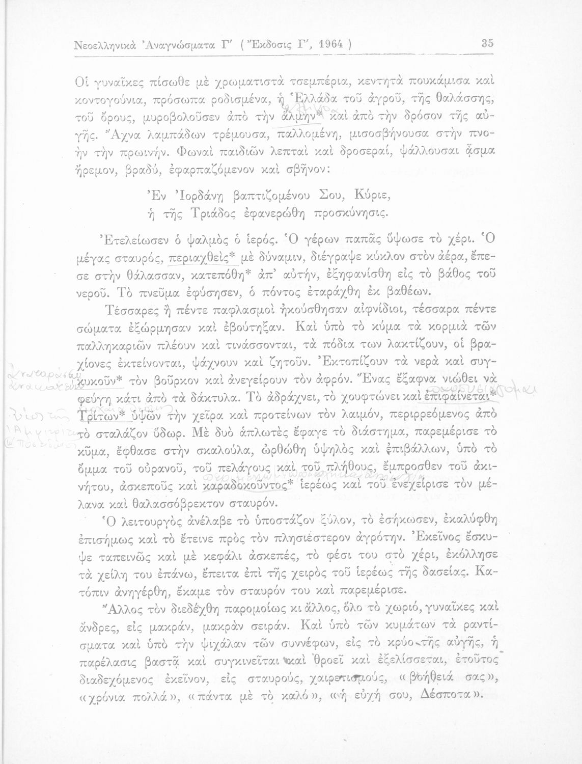 Σχολικό εγχειρίδιο Νέων Ελληνικών Γ΄ Γυμνασίου που περιέχει ποιήματα και πεζά Ελλήνων συγγραφέων εμπνευσμένα από τη θρησκευτική, οικογενειακή και κοινωνική ζωή, την σύγχρονή ελληνική ιστορία και την ελληνική φύση. Περιέχει παράρτημα με βιογραφίες των συγγραφέων και λεξιλόγιο.