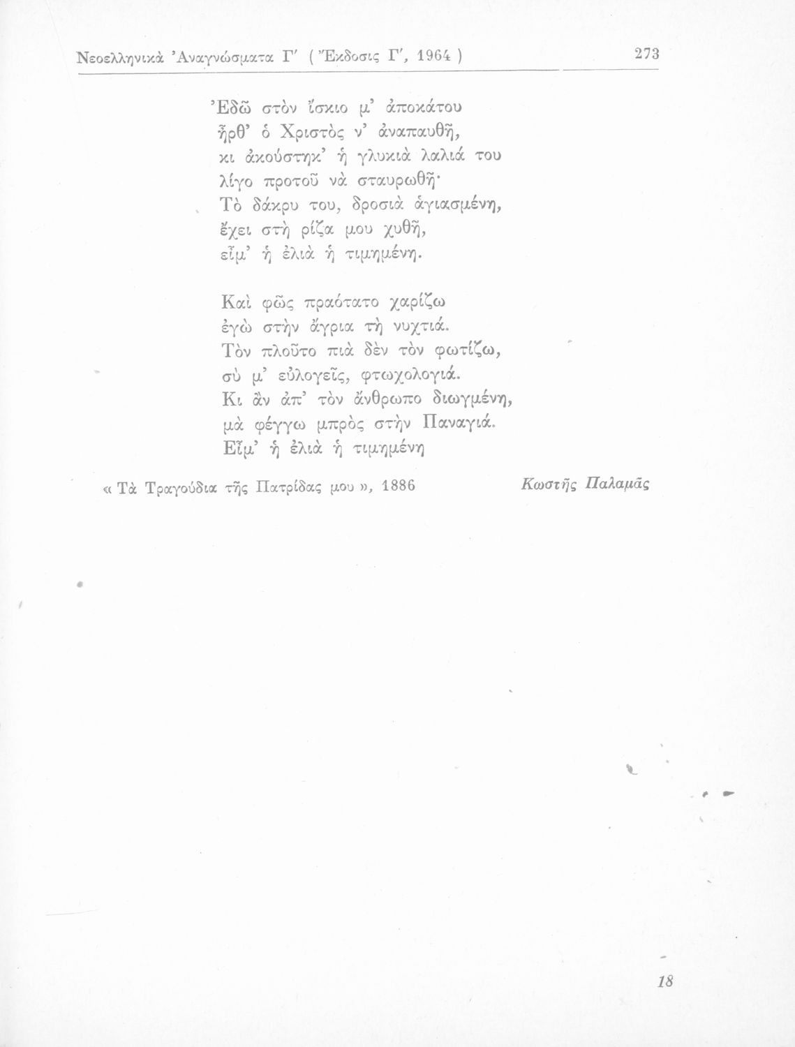 Σχολικό εγχειρίδιο Νέων Ελληνικών Γ΄ Γυμνασίου που περιέχει ποιήματα και πεζά Ελλήνων συγγραφέων εμπνευσμένα από τη θρησκευτική, οικογενειακή και κοινωνική ζωή, την σύγχρονή ελληνική ιστορία και την ελληνική ...