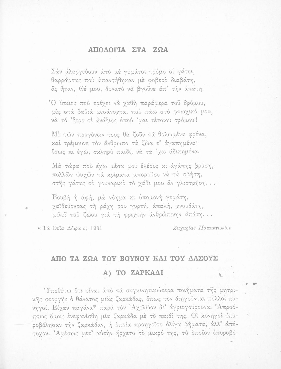 Σχολικό εγχειρίδιο Νέων Ελληνικών Γ΄ Γυμνασίου και Α' Αστικού Σχολείου που περιέχει πεζά και ποιήματα Ελλήνων συγγραφέων εμπνευσμένα από τη θρησκευτική και κοινωνική ζωή, την ελληνική μυθολογία, την αρχαία και