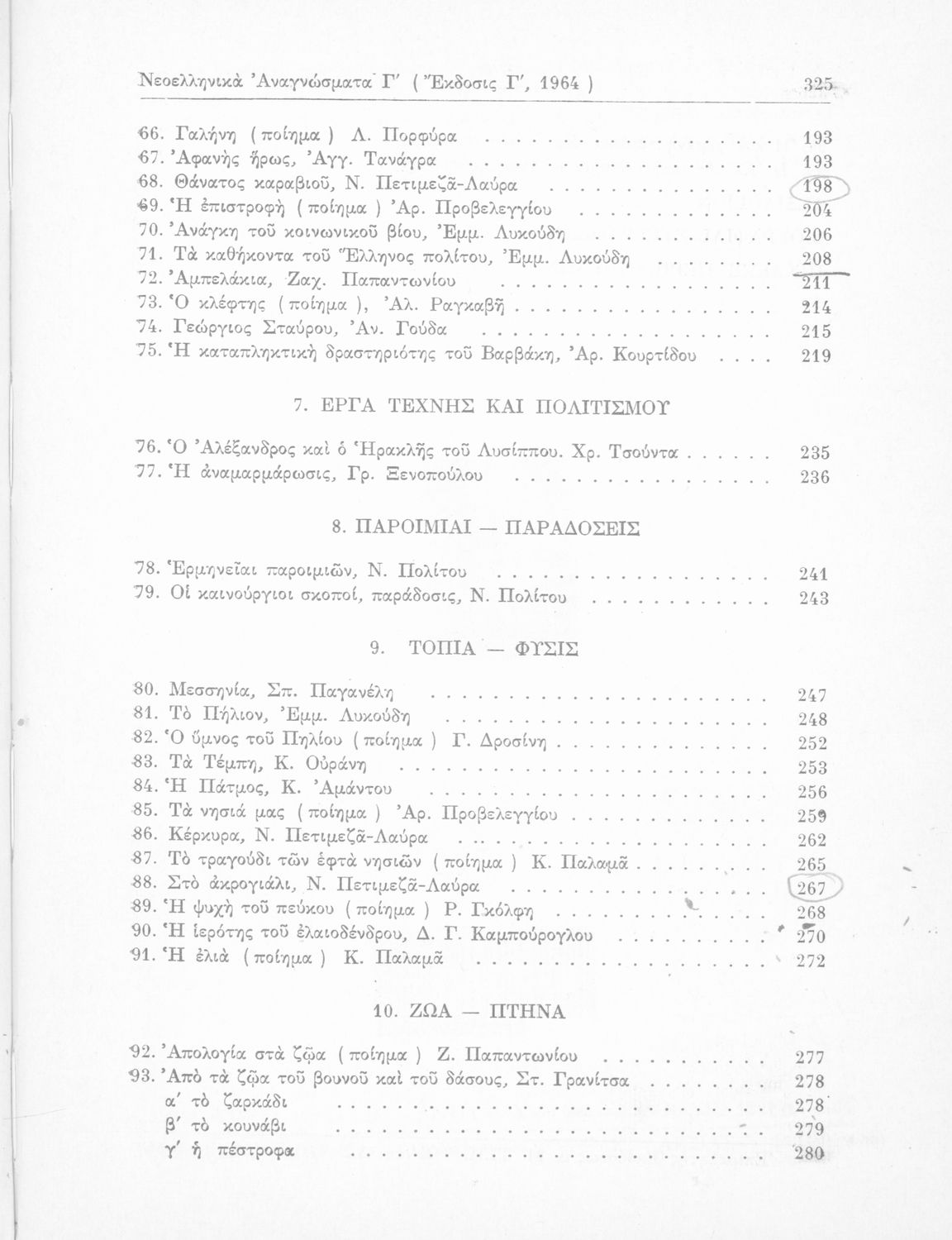 Σχολικό εγχειρίδιο Νέων Ελληνικών Γ΄ Γυμνασίου που περιέχει ποιήματα και πεζά Ελλήνων συγγραφέων εμπνευσμένα από τη θρησκευτική, οικογενειακή και κοινωνική ζωή, την σύγχρονή ελληνική ιστορία και την ελληνική φύση. Περιέχει παράρτημα με βιογραφίες των συγγραφέων και λεξιλόγιο.