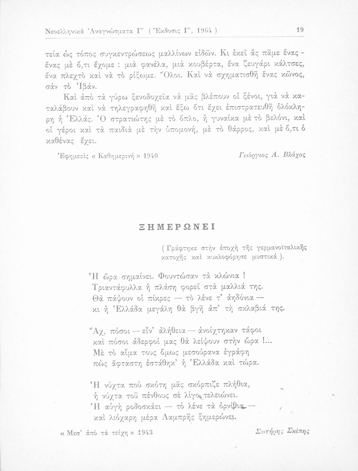 Σχολικό εγχειρίδιο Νέων Ελληνικών Γ΄ Γυμνασίου που περιέχει ποιήματα και πεζά Ελλήνων συγγραφέων εμπνευσμένα από τη θρησκευτική, οικογενειακή και κοινωνική ζωή, την σύγχρονή ελληνική ιστορία και την ελληνική ...