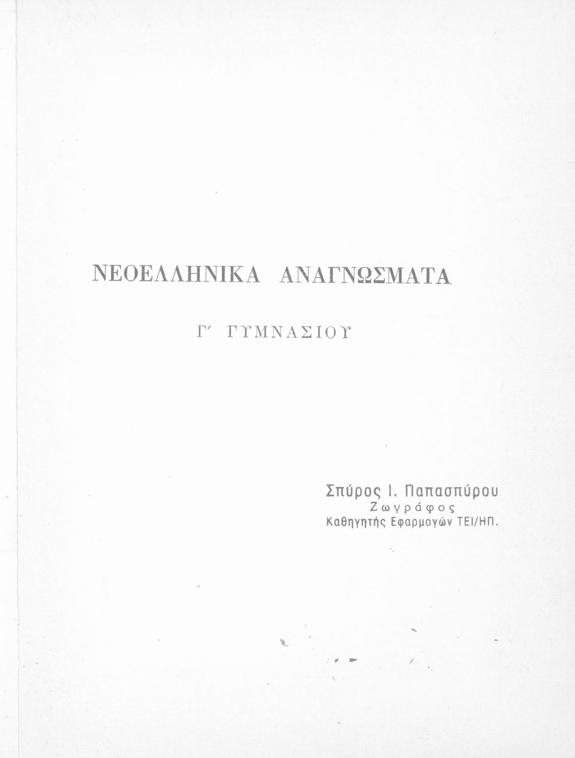 Τίτλος: Νεοελληνικά αναγνώσματα Γ΄ Γυμνασίου