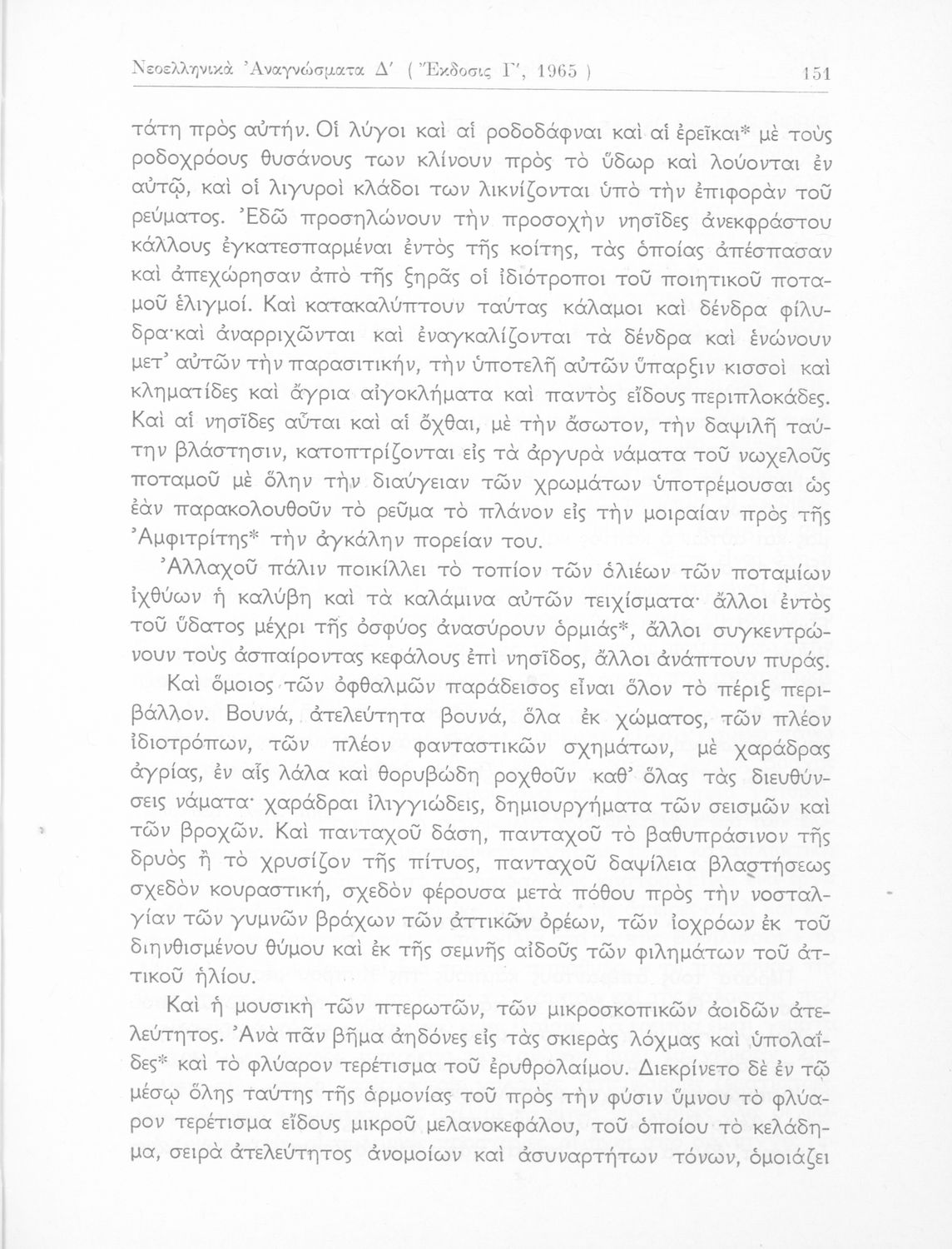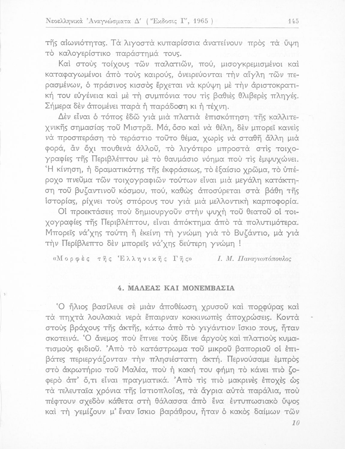 Σχολικό εγχειρίδιο Νέων Ελληνικών Δ' Γυμνασίου που περιλαμβάνει πεζά, ποιήματα και παροιμίες Ελλήνων συγγραφέων εμπνευσμένα από την θρησκευτική και κοινωνική ζωή, τη βυζαντινή ιστορία, την αρχαία και σύγχρονη ελληνική ιστορία, και την ελληνική φύση. Περιέχει παράρτημα με βιογραφίες των συγγραφέων και λεξιλόγιο.