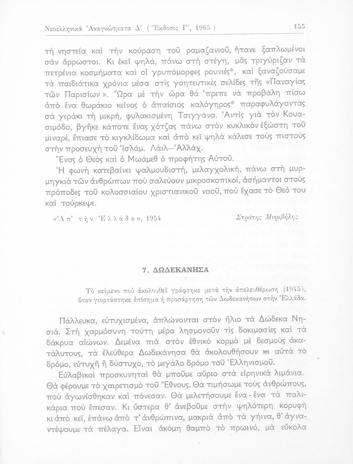 Σχολικό εγχειρίδιο Νέων Ελληνικών Δ΄ Γυμνασίου και Β΄ Αστικού Σχολείου που περιέχει πεζά και ποιήματα Ελλήνων συγγραφέων εμπνευσμένα από τη θρησκευτική και κοινωνική ζωή, την ελληνική μυθολογία, την αρχαία και