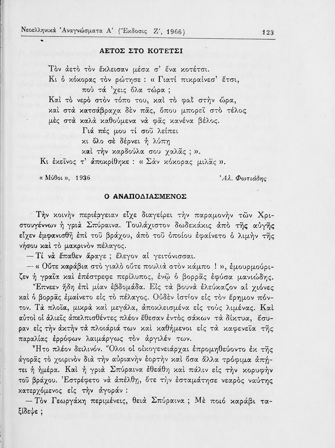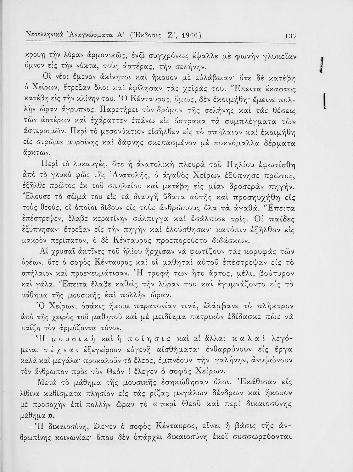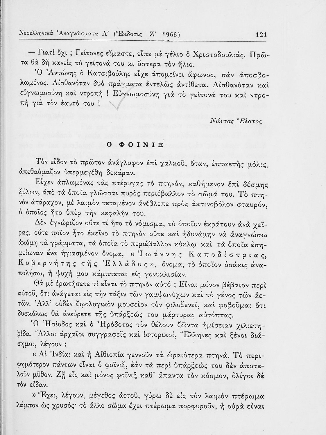 Σχολικό εγχειρίδιο Νέων Ελληνικών Γ΄ Γυμνασίου και Α' Αστικού Σχολείου που περιέχει πεζά και ποιήματα Ελλήνων συγγραφέων εμπνευσμένα από τη θρησκευτική και κοινωνική ζωή, την ελληνική μυθολογία, την αρχαία και