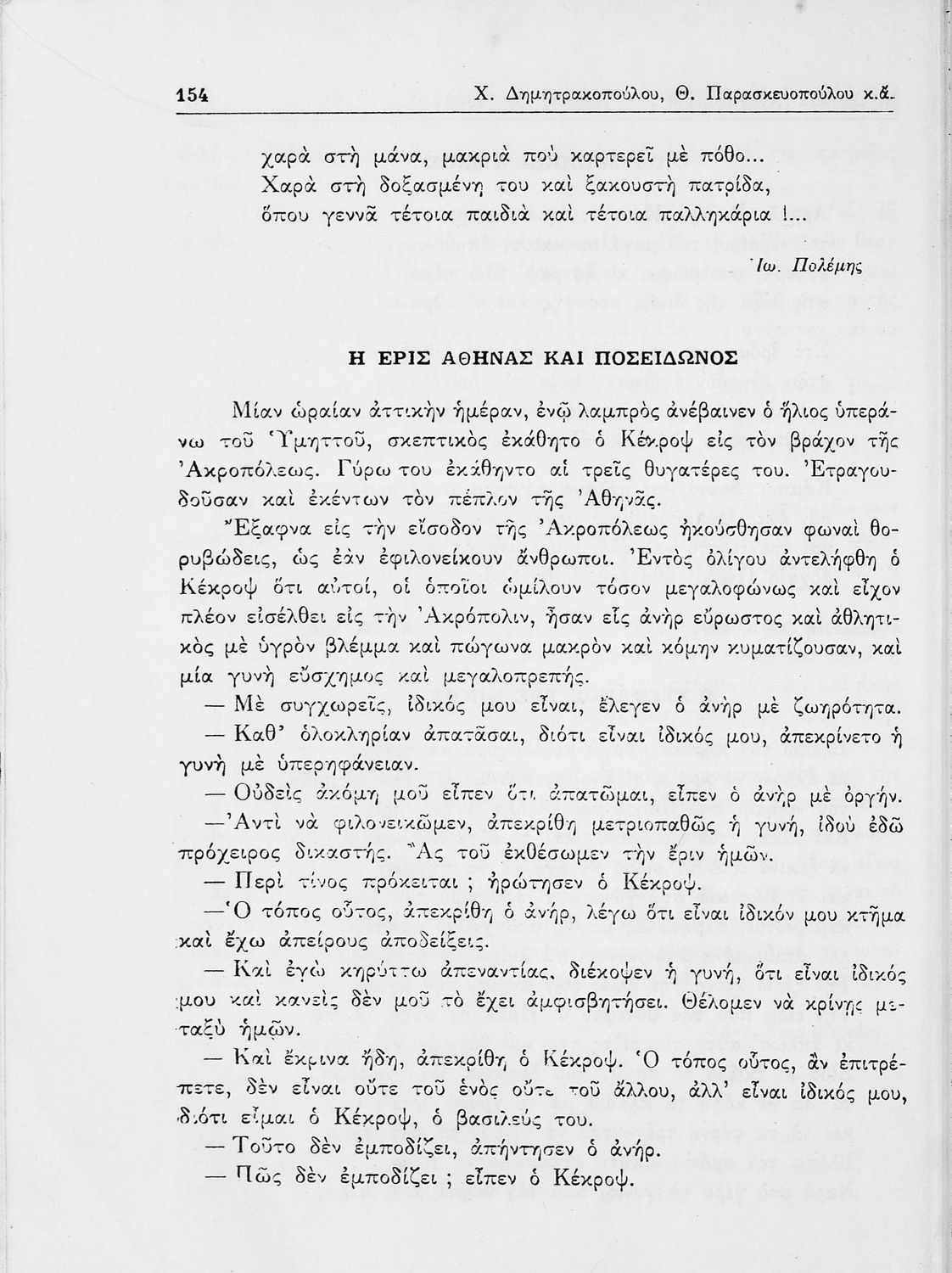 Σχολικό εγχειρίδιο Νέων Ελληνικών Γ΄ Γυμνασίου και Α' Αστικού Σχολείου που περιέχει πεζά και ποιήματα Ελλήνων συγγραφέων εμπνευσμένα από τη θρησκευτική και κοινωνική ζωή, την ελληνική μυθολογία, την αρχαία και